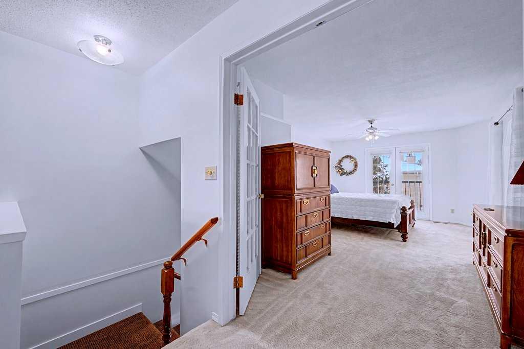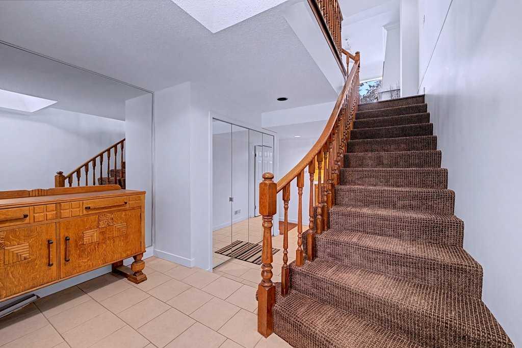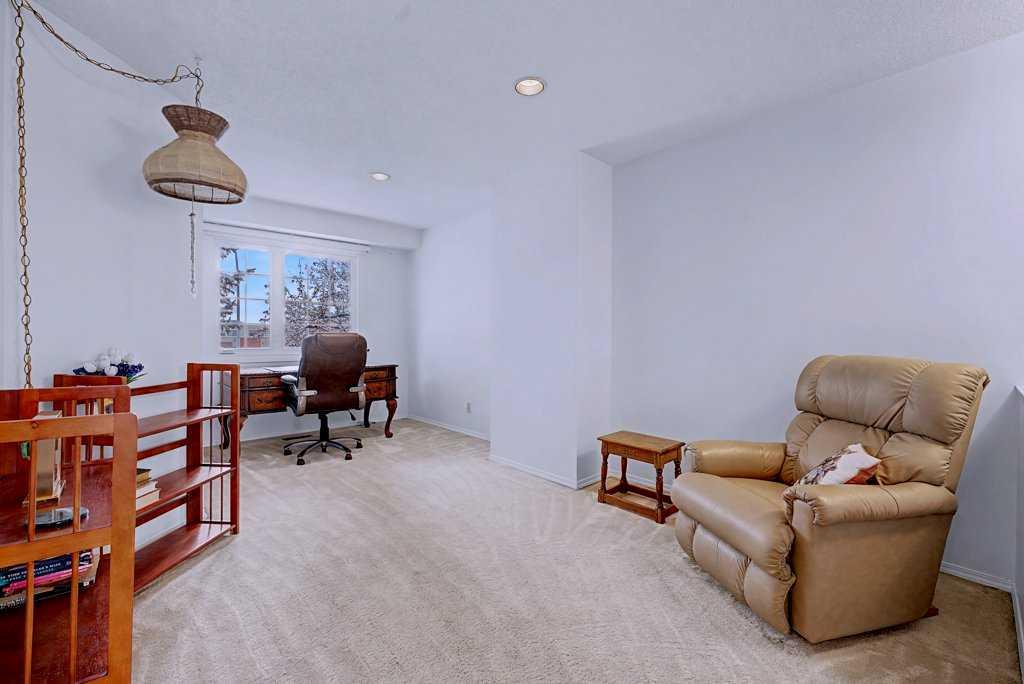Proudly presenting this bright, beautifully renovated townhome in the highly sought-after community of Varsity Village, offering over 2,100 sq ft of developed living space designed for comfortable, connected living. Step inside to a sun-filled main floor featuring rich hardwood flooring, a spacious living room with 9 foot ceilings and a cozy wood-burning fireplace, and a wall of windows that flood the home with natural light while providing seamless access to your private deck—perfect for enjoying Calgary’s sunny days. The expansive dining area easily hosts large gatherings, while the thoughtfully updated kitchen showcases stainless steel appliances, ample storage, pantry space, and a charming dining nook for everyday living. Upstairs, retreat to the generous primary bedroom with a 4-piece ensuite and walk-in closet, complemented by a spacious second bedroom and a versatile bonus room ideal for a home office, family room, or flex space. The lower level sets this home apart with a rare and highly functional additional bedroom/office, - perfect for guests, a private workspace, or multigenerational living, along with a welcoming entryway, laundry, and access to the oversized attached garage. Extensive upgrades including hardwood flooring, triple pane windows, patio door, furnace, electrical panel, refinished deck, and a new garage door provide peace of mind and true turn-key convenience. Additional parking is available directly in front of the unit. Located in the well-managed, pet-friendly Landmark Estates III, residents enjoy access to scenic ponds, parks, and pathways, all just minutes from the University of Calgary, Market Mall, University District, Foothills and Alberta Children’s Hospitals, and excellent schools—offering an exceptional lifestyle in one of Calgary’s most established communities.