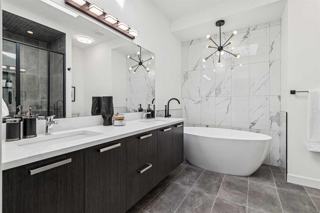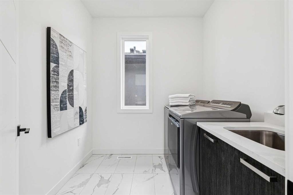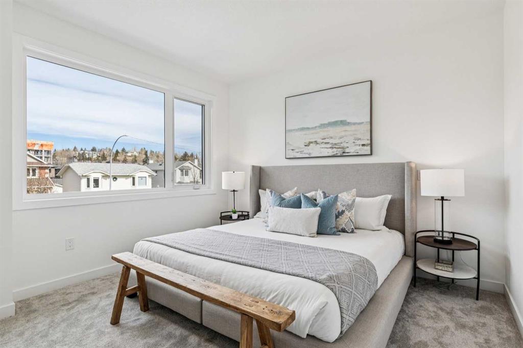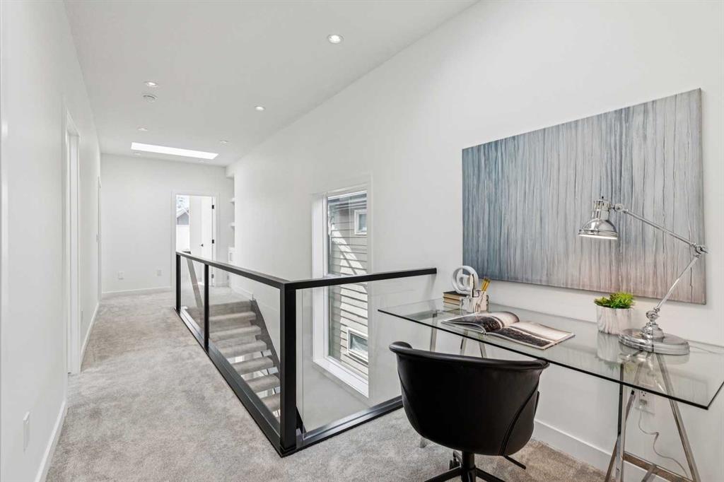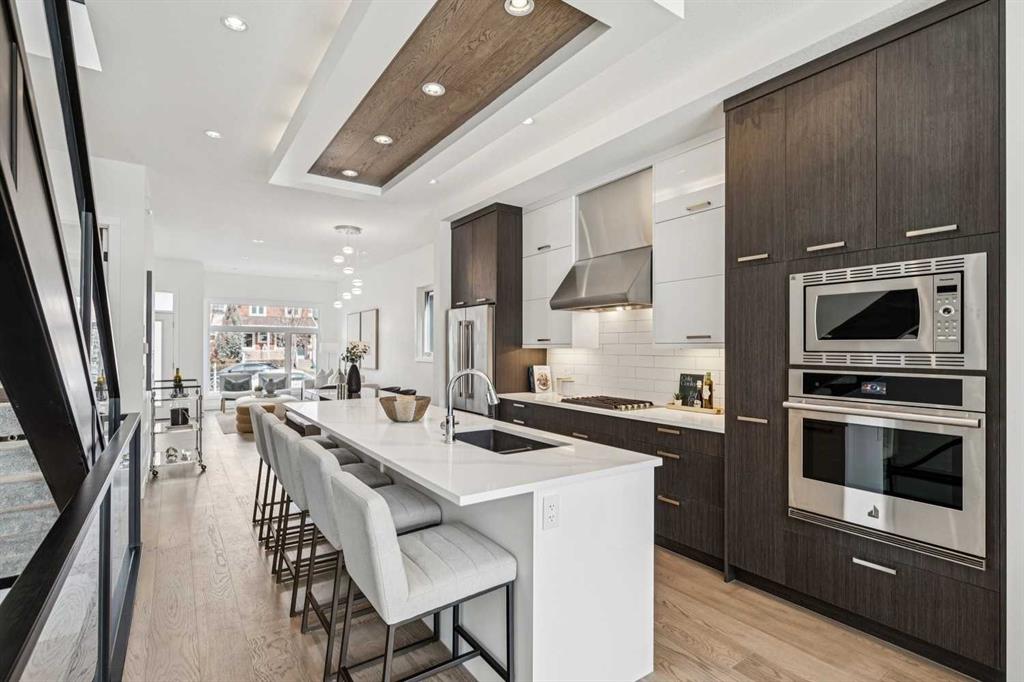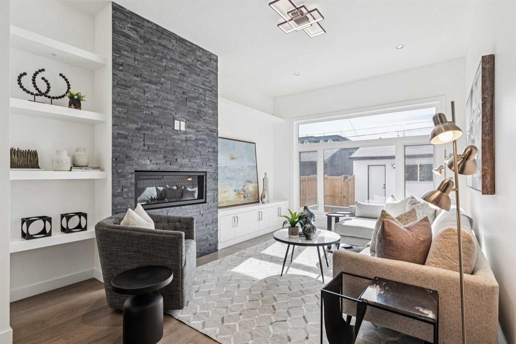 Situated on a 25' x 135' south-backing lot on a quiet, tree lined street in sought after Hillhurst! Located just five doors down from West Hillhurst Park (soccer field, baseball diamond, & playground), this newly constructed detached home offers over 2,800 sq ft of executive level living space. A bright & spacious front foyer opens into an expansive living area with large windows; gleaming hardwood floors throughout the main level beautifully accentuate the soaring 10ft ceilings. A centrally located dining area sits adjacent to the kitchen making it ideal for entertaining. The chef inspired kitchen features a commercial grade Jenn-Air package including gas cook top, wall oven,, & SS refrigerator; a large island offers ample seating & generous prep space. The commercial grade hood fan is a must have for serious chef's. An informal living area resides at the south end of the floor plan & is flooded with natural light through floor-to-ceiling South facing windows; the stone clad gas fireplace & custom millwork adds warmth & ambience. The South backyard is made even more impressive by the rare 135-foot lot depth which offers ample room for seating areas & green space/kids play space. A beautiful powder room & a spacious mudroom (with both open & closed storage) completes the main level. Open riser stairs lead you to the upper level where you will find three generously sized bedrooms, a convenient laundry room & a quiet study/office space (ideal for homework/working from home). The primary bedroom is a true sanctuary: large enough to accommodate a sitting area it features a custom walk-in closet & a luxurious 5-piece ensuite with heated floors, dual vanity, a deep soaker tub & standalone shower. Multiple skylights flood the upper level with natural light. The second & third bedrooms are spacious & include built-in closet organizers. The 4pc main bath also enjoys in-floor heat. The fully developed lower level features a large media area - perfect for movie nights - & is complemented by a nearby wet bar. A fourth bedroom & full bathroom provide an ideal setup for guests &/or extended family. The Hydronic in-floor Heating System is hooked up & operational & Central Air Conditioning has been already installed; working together they ensure comfort throughout all seasons. The double garage (built with 2x6 construction) provides room for vehicles & all of your gear. This home presents a great opportunity to live in one of the city’s most desirable inner city communities & is located just one block from Queen Elizabeth School (K–12), a few blocks to the shops & restaurants of Kensington, & just four blocks to Riley Park. The location offers an exceptional inner-city lifestyle with unmatched walkability & is ideal for active families & professionals alike, call today for more information!