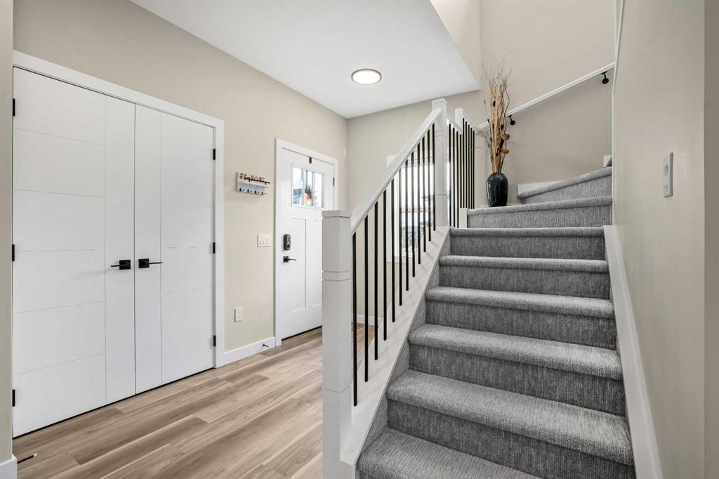 Welcome to this beautiful home in the new Waterford community of Chestermere, perfectly situated on a spacious corner lot with a double attached front garage. Thoughtfully designed and well maintained, this property offers a seamless blend of style, comfort, and functionality. Step inside to a bright, open-concept main floor featuring 9-foot ceilings and a versatile den—ideal for a home office or flex space. The stunning white kitchen is the heart of the home, complete with quartz countertops, premium cabinetry, a walk-through pantry, and a full stainless steel appliance package—perfect for both everyday living and entertaining. A separate side entrance leads to the basement, offering excellent potential for future development. The lower level is already thoughtfully planned with a layout in place and rough-ins for a bathroom. Upstairs, you’ll find a spacious bonus room along with three generously sized bedrooms. The primary suite features vaulted ceilings, a walk-in closet, and a luxurious 5-piece ensuite with dual sinks. Each of the additional bedrooms also includes its own walk-in closet, offering ample storage for the whole family. The backyard is fully landscapred and fenced with a deck, gazebo and BBQ gas line. Located just steps from shopping, amenities, and the scenic Chestermere Lake, this home delivers an ideal lifestyle for families and multi-generational living alike.