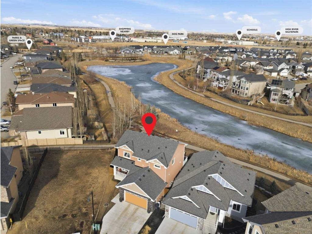 ***OPEN HOUSE Sunday March 22 from 2pm-4pm***Come view this High River detached 2200 sq ft home, with a fully developed Walk Out basement adding an additional 1000 sq ft of living space. Beautifully appointed 5-bedroom, 4-bath home is in like-new condition and perfectly situated at the end of a quiet cul-de-sac, backing onto a tranquil pond and park in the community of Montrose. Designed to maximize natural light and picturesque views, the kitchen, living room, dining room, primary suite, and walkout level all overlook the water. High-quality finishes are showcased throughout, including durable laminate floors, granite countertops, custom tile, 9' ceilings, a striking 40" wide staircase, and premium cabinetry and woodwork throughout. The chef’s kitchen features a large island, walk-through pantry, and built-in high-end stainless-steel appliances with a gas cooktop. The thoughtful layout includes a private main-floor office, bright bonus room, second-floor laundry, and a well-designed mudroom. Outdoor living is exceptional with an oversized 22' deck and a poured patio on the walkout level. Set on a large pie-shaped, fully fenced lot, this home offers luxury, privacy, and an unbeatable location. Close to schools and shopping, come check out your new home today.