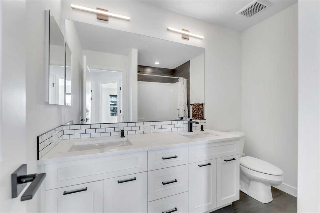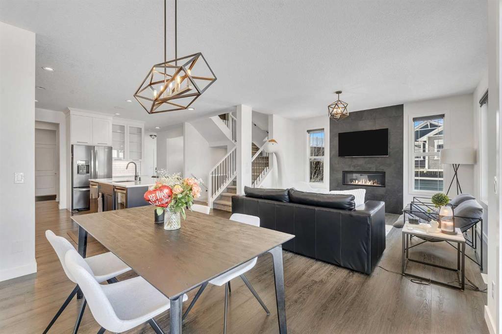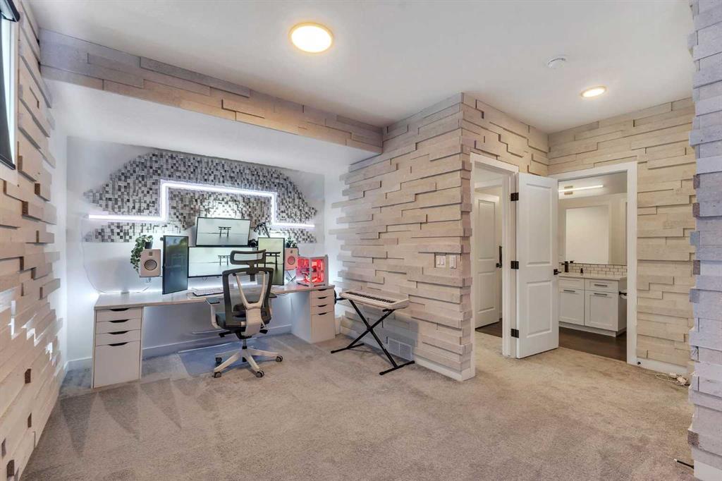 FRONT ATTACHED TRIPLE CAR GARAGE | FINISHED WALK OUT BASEMENT | GREEN SPACE BEHIND | EXTENSIVE LANDSCAPING | CORNER LOT | Welcome to this stunning executive home in Crestmont—one of SW Calgary’s most sought-after, family-friendly communities. Situated on a beautifully landscaped corner lot backing onto green space, this triple-car garage residence boasts luxury at every turn with smart blinds featuring phone & scheduling control, built-in speakers throughout, and approximately $50,000+ in professional landscaping that truly shows. Step inside to a grand foyer complete with a generous closet, with a dedicated office and window adjacent—perfect for working from home. The kitchen is a chef’s dream, featuring a spacious island, built-in stainless steel appliances, a five-burner built-in gas range, a bar fridge, and an abundance of cabinet and counter space, all finished with luxurious upgrades. The dining room is flooded with natural light from patio doors that open onto a spacious balcony overlooking green space—the ideal setting for meals with family and friends. The living room showcases a gorgeous fireplace feature wall and large windows that fill the space with sunlight, while a large pantry connects to a conveniently designed mudroom with built-in shelving and a bench, and a two-piece powder room completes the main level. Upstairs, three generously sized bedrooms await, including the primary suite with a large walk-in closet and gorgeous four-piece ensuite. The second bedroom also includes a spacious walk-in closet. A five-piece bathroom, a dedicated laundry room with cabinetry, and a versatile bonus room ideal for entertaining or relaxing round out the upper level. The fully finished walkout basement is designed for entertainment and comfort, anchored by a stylish bar and large recreation room, plus a unique bedroom featuring $7,000+ worth of acoustic panels with built-in lighting—the perfect personal getaway. A full bathroom, utility room with a second set of laundry machines, and ample storage complete the lower level. The triple car attached garage is equipped with high quality pro slat walls, epoxy flooring, and custom lighting. This space is any CAR ENTHUSIASTS DREAM! Step outside and enjoy the professionally landscaped patio with built-in seating, privacy screens, and a gas fire pit, creating an ideal space for outdoor entertaining. Located with quick access to the Trans-Canada Highway for easy mountain getaways, and with shopping plazas, schools, and everyday amenities just moments away, this is the home where luxury meets lifestyle. Book your private showing today—this home will not last!