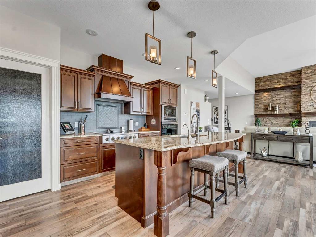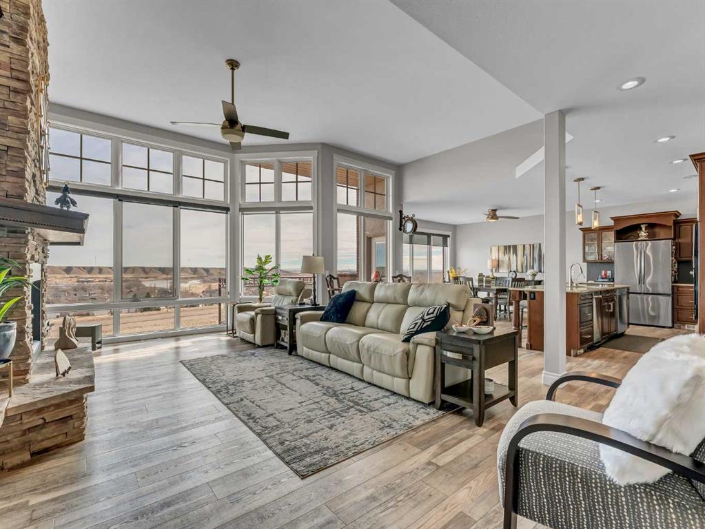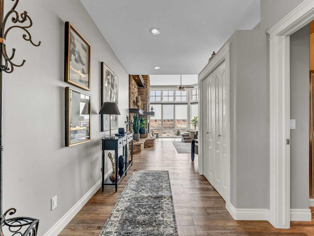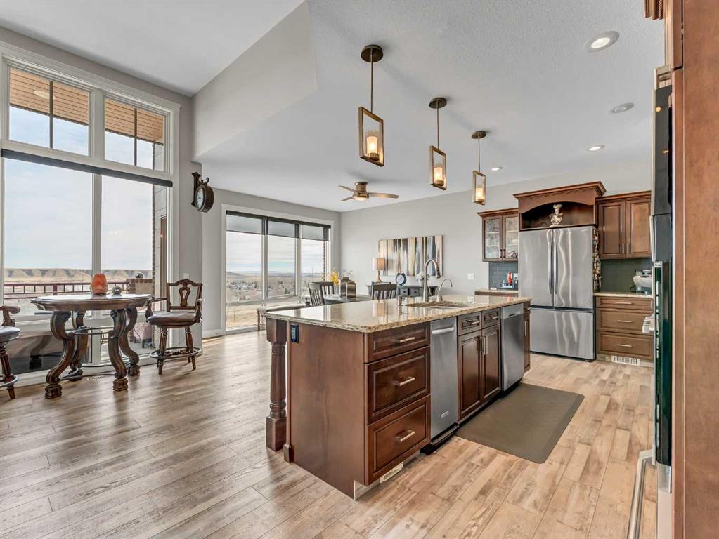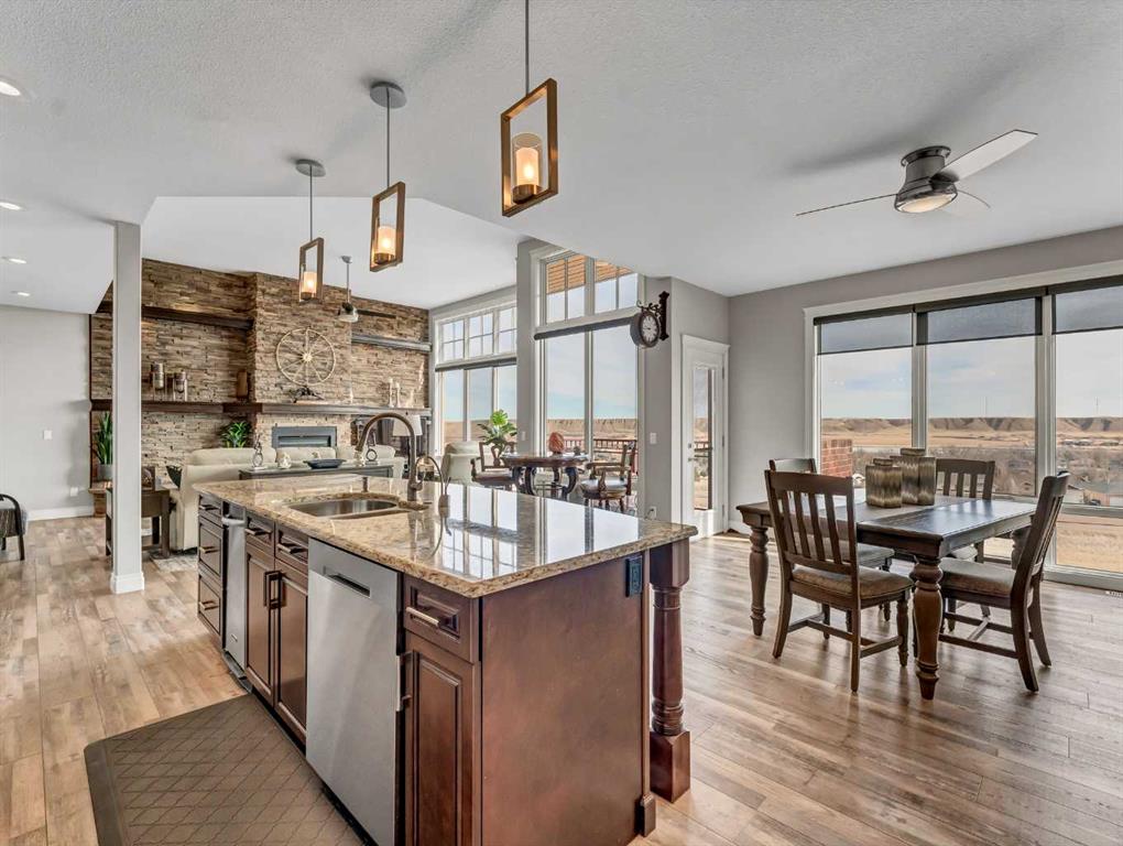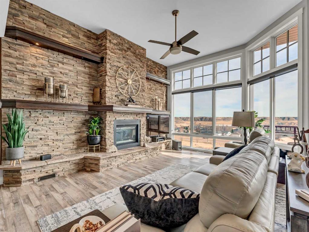 This stunning executive-style walkout bungalow offers unobstructed views of the river valley and breathtaking eastern sunrises—paired with extensive, high-end upgrades throughout. The main floor features soaring ceilings, a tiled entry, and a striking floor-to-ceiling stone fireplace feature wall. The beautifully updated kitchen showcases custom cabinetry, granite countertops, a walk-in pantry with additional counter space, and thoughtful design that blends function with style. A spacious bedroom and 3-piece bathroom complete the main level. The fully upgraded lower level is designed for comfort and retreat, featuring a large primary suite with a spa-like ensuite including a soaking tub, marble shower, makeup vanity with sink, and a massive walk-in closet with built-in shelving and drawers. Additional highlights include a wet bar, office nook, in-floor heating, and a second family room with walkout access to a private patio with sunshade. Luxury vinyl plank flooring, updated lighting, and fresh paint further enhance the home’s appeal. A heated double garage with epoxy-coated floors adds both function and style. Enjoy both upper and lower outdoor spaces with a top balcony and walkout patio, offering a private setting to take in the incredible views. The seamless indoor-outdoor flow makes this home ideal for both everyday living and entertaining, all within a quiet and private setting.
