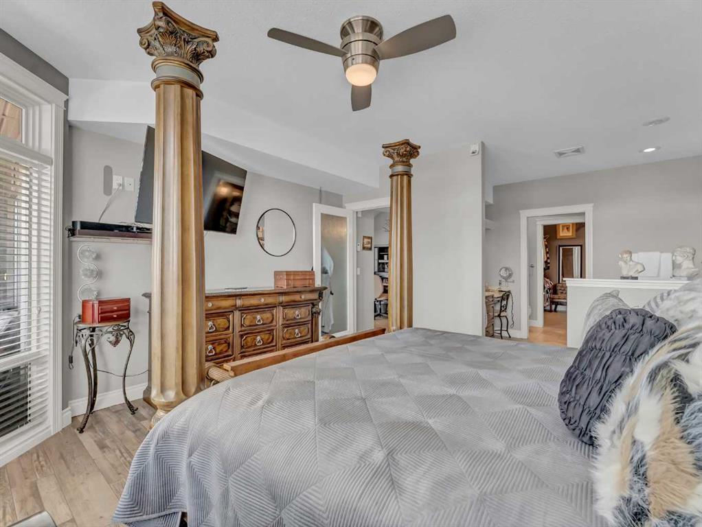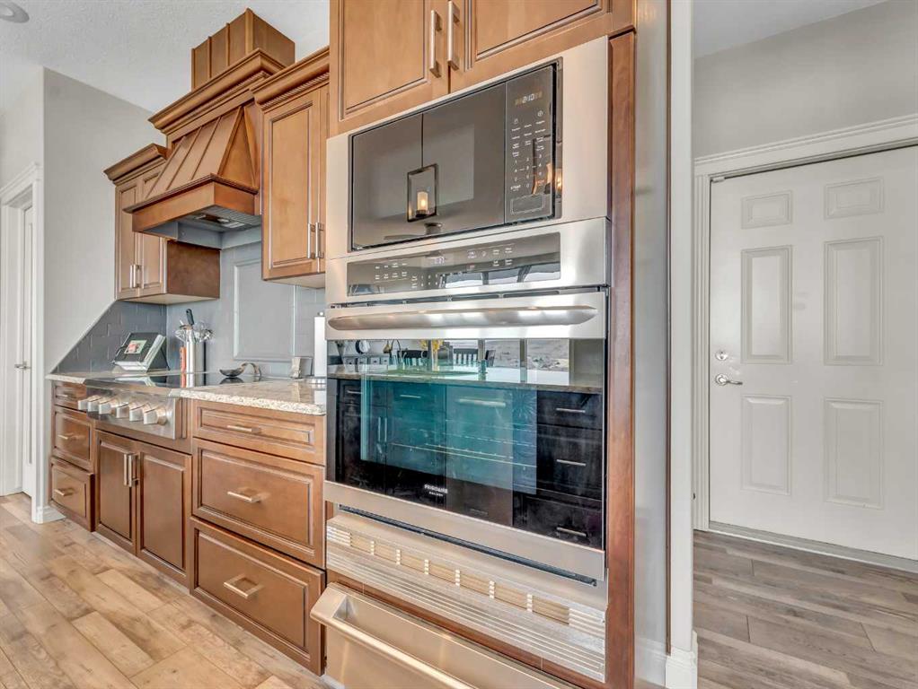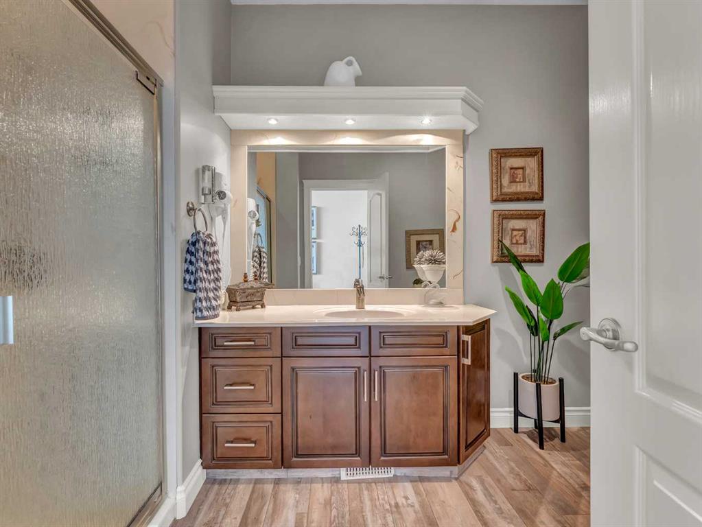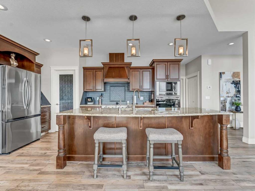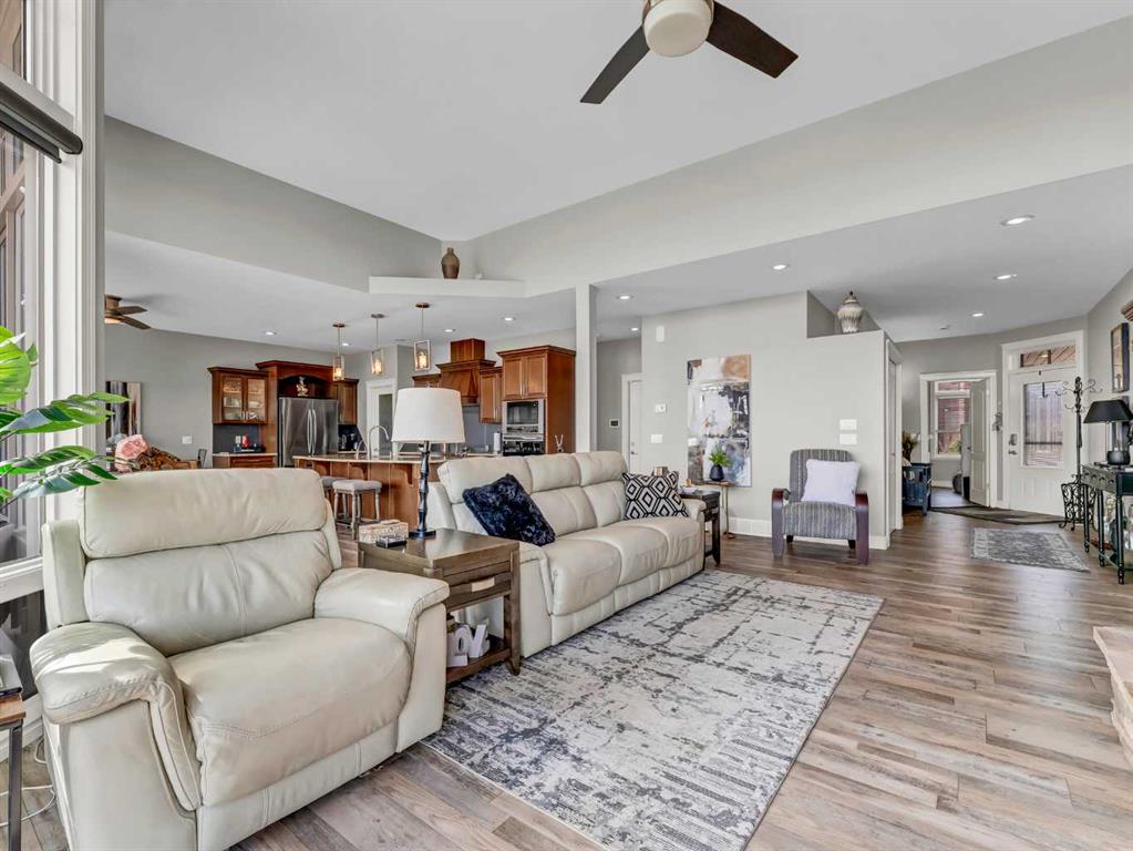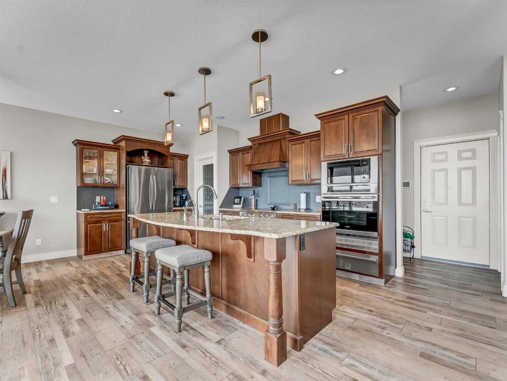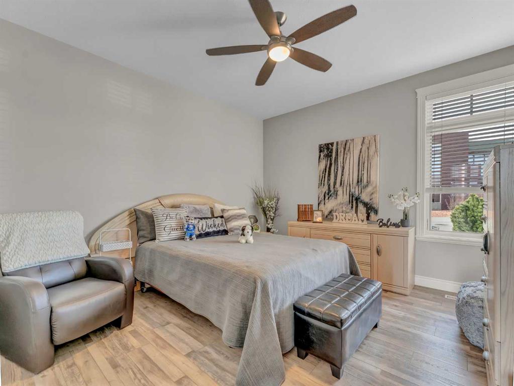 This stunning executive-style walkout bungalow offers unobstructed views of the river valley and breathtaking eastern sunrises—paired with extensive, high-end upgrades throughout. The main floor features soaring ceilings, a tiled entry, and a striking floor-to-ceiling stone fireplace feature wall. The beautifully updated kitchen showcases custom cabinetry, granite countertops, a walk-in pantry with additional counter space, and thoughtful design that blends function with style. A spacious bedroom and 3-piece bathroom complete the main level. The fully upgraded lower level is designed for comfort and retreat, featuring a large primary suite with a spa-like ensuite including a soaking tub, marble shower, makeup vanity with sink, and a massive walk-in closet with built-in shelving and drawers. Additional highlights include a wet bar, office nook, in-floor heating, and a second family room with walkout access to a private patio with sunshade. Luxury vinyl plank flooring, updated lighting, and fresh paint further enhance the home’s appeal. A heated double garage with epoxy-coated floors adds both function and style. Enjoy both upper and lower outdoor spaces with a top balcony and walkout patio, offering a private setting to take in the incredible views. The seamless indoor-outdoor flow makes this home ideal for both everyday living and entertaining, all within a quiet and private setting.