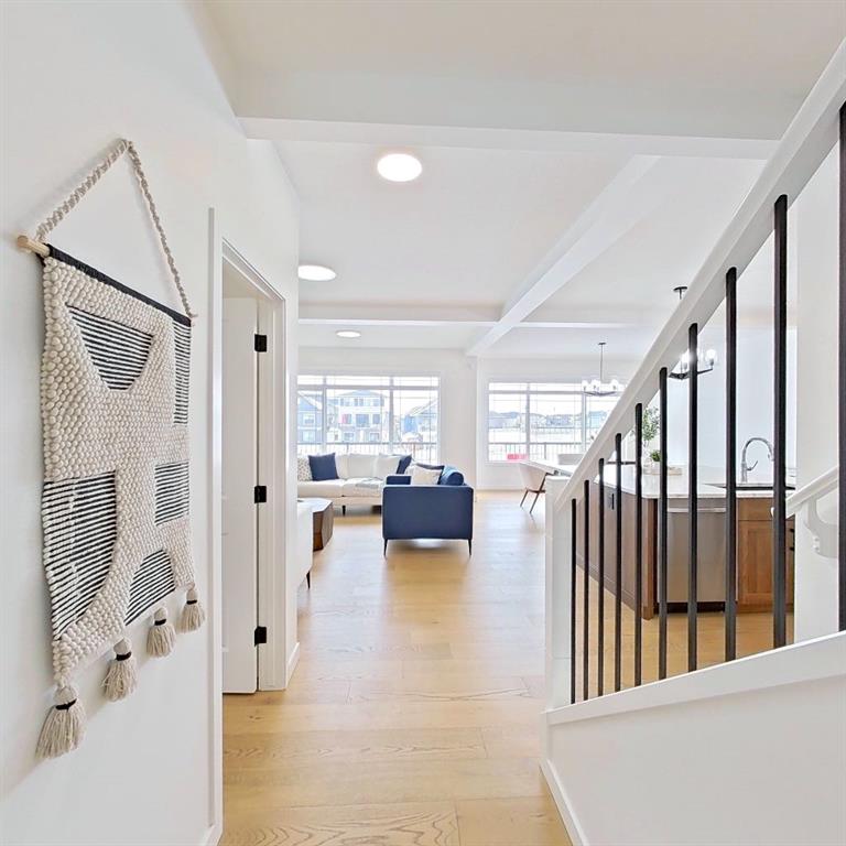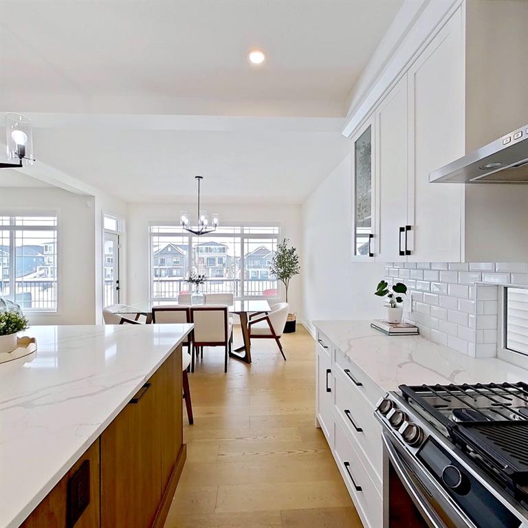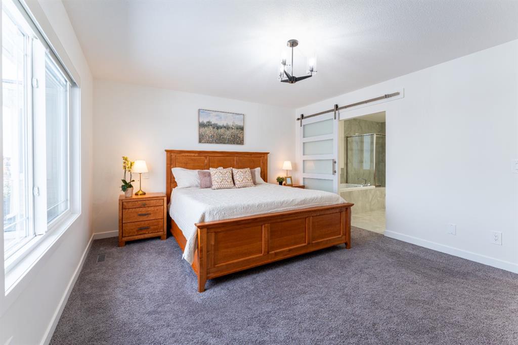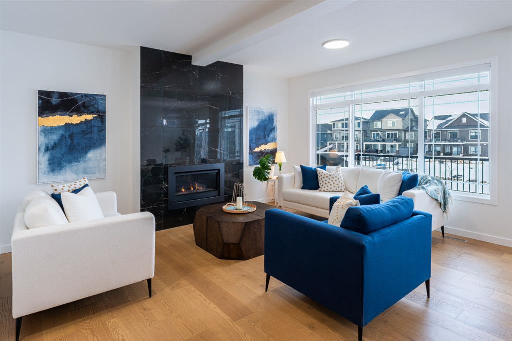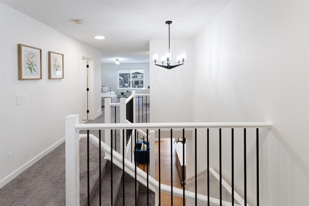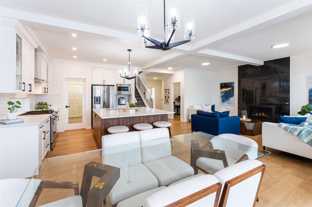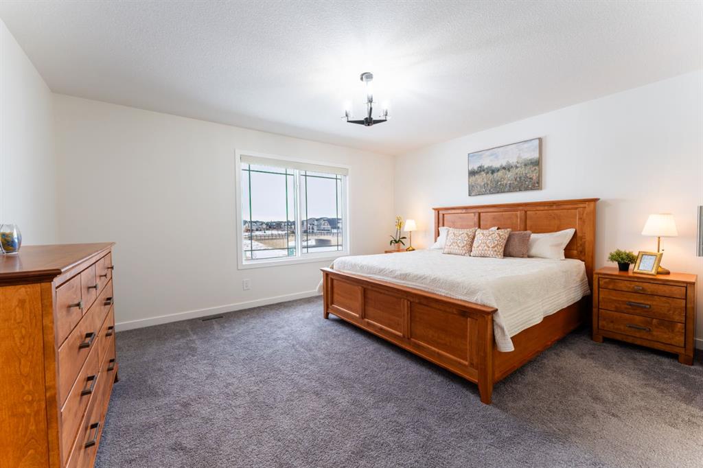 Welcome to this beautifully upgraded 2-Storey WALKOUT MCKEE built home in the desirable community of BAYSIDE. Close to 2400 SQFT it is perfectly suited for those who love to spend time outdoors. Just a short walk to Nose Creek Elementary, this home is surrounded by an abundance of parks, scenic walking paths, and the much loved canal system—perfect for year-round enjoyment, from skating in the winter to kayaking or boating in the summer. Backing onto the canal and walking paths, the home offers incredible water views through oversized rear windows and an extended FULL WIDTH DECK with matching concrete patio below. The lower level has an upgraded QUAD Slider door and a convenient gas line for your BBQ—ideal for entertaining or simply relaxing while taking in the view. The kitchen is thoughtfully designed, featuring a SILGRANITE undermount sink, GAS stove, built-in microwave, chimney hood fan, 2 TONE cabinetry and elegant GLASS upper cabinets. You’ll love the abundance of storage, including pot and pan drawers and a large recycling pullout integrated into the island. Inside, the home is finished with upgraded window coverings, including remote-controlled blinds in the dining and living rooms. TRENDY HARDWOOD flooring extends throughout the main floor (with tile in the mudroom) and into the den, replacing standard carpet for a more elevated feel. Check out the floor to ceiling TILED Fireplace as well as the black METAL SPINDLE railings on your way upstairs. The primary suite is like none other, we dare you to find a LARGER bathroom. Complete with a stylish BARN DOOR, a large tiled shower with a built-in bench, a relaxing soaker tub, and upgraded 12 x 24 tile throughout. A bank of three drawers adds both convenience and extra storage as well as a large walk-in closet. Additional thoughtful features include rough-ins in the basement for a future wet bar, making it easy to customize the space to suit your needs. The laundry room is equally impressive, offering ample storage, a quartz folding counter over the washer and dryer, and a convenient sink. This home truly offers the perfect blend of luxury, functionality, and an unbeatable location in one of Airdrie’s most sought-after communities.