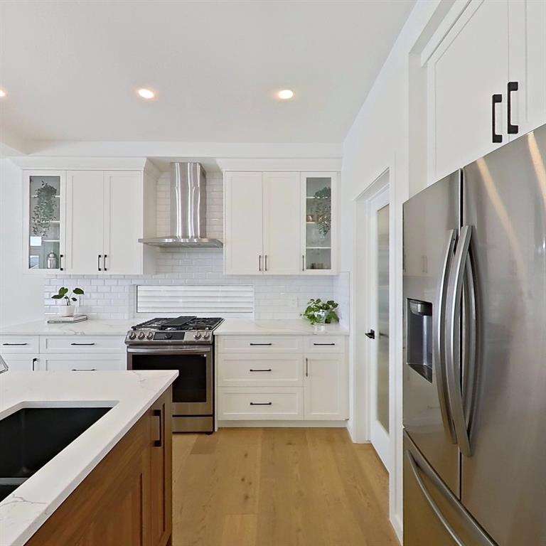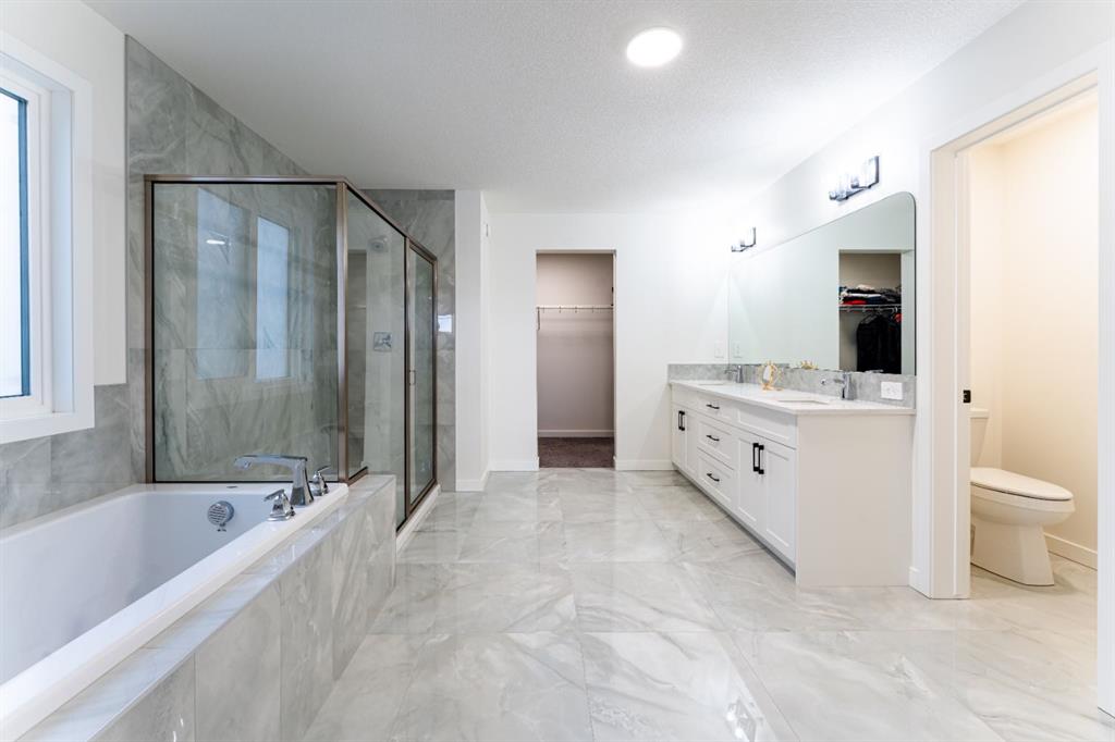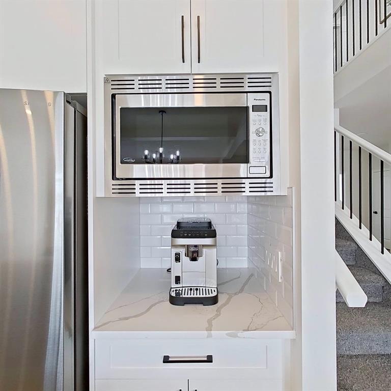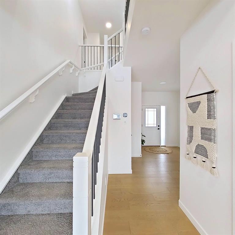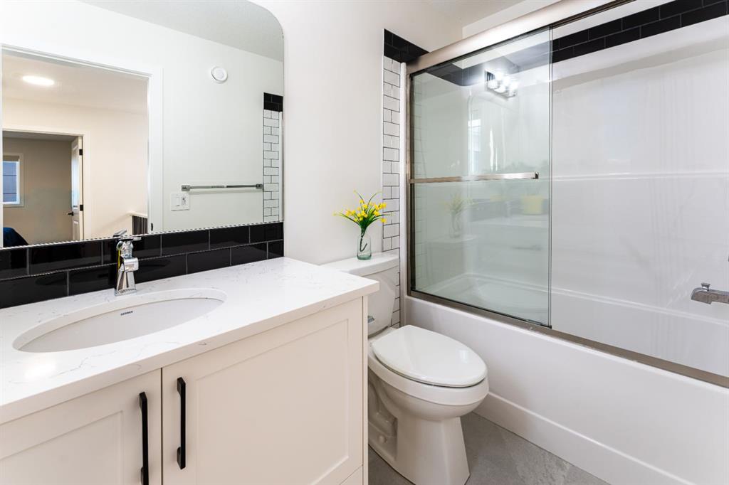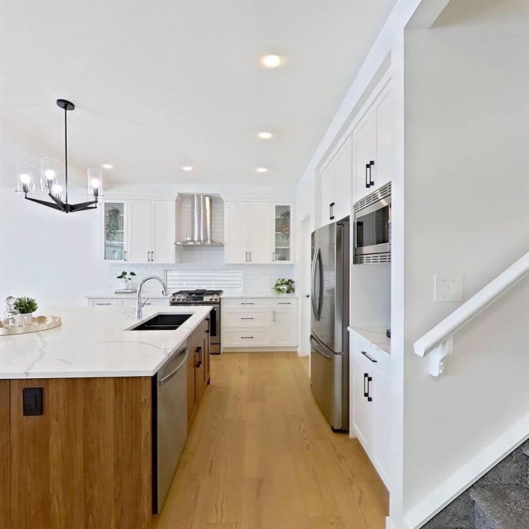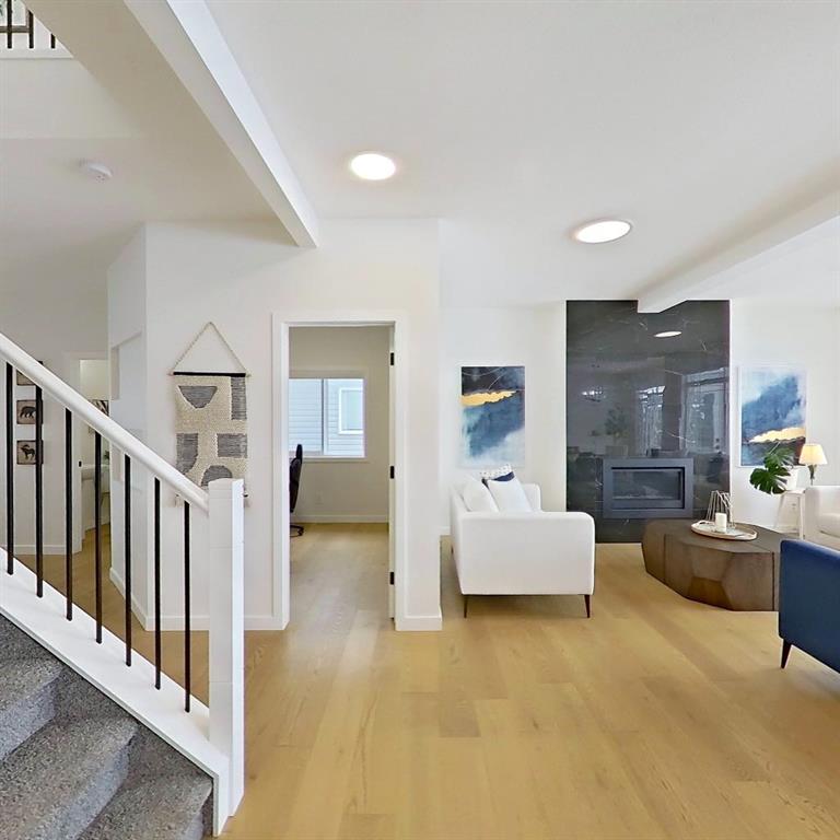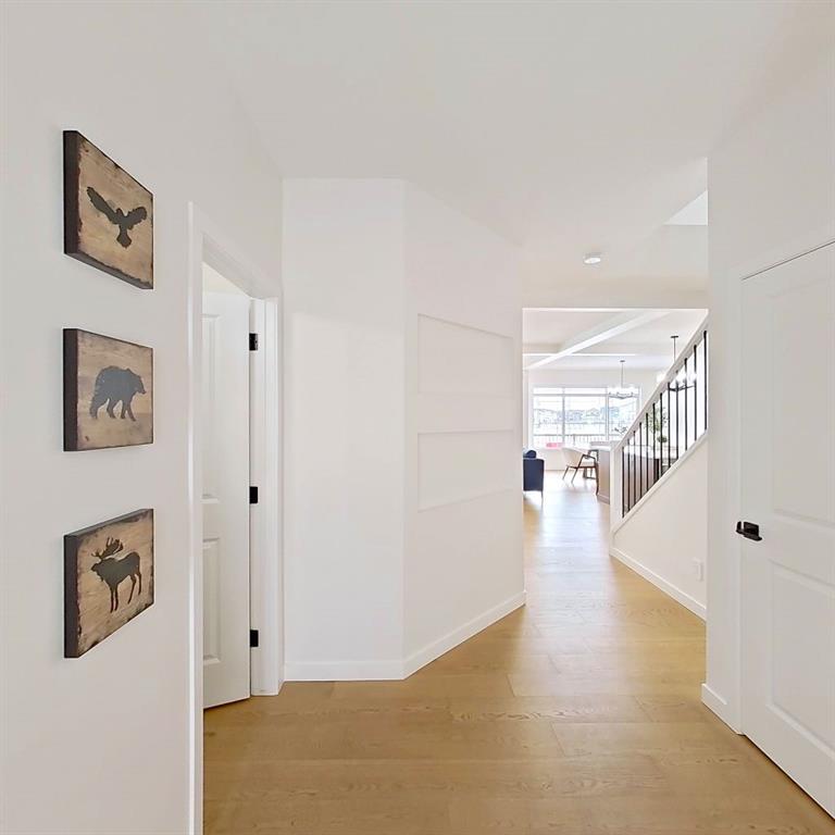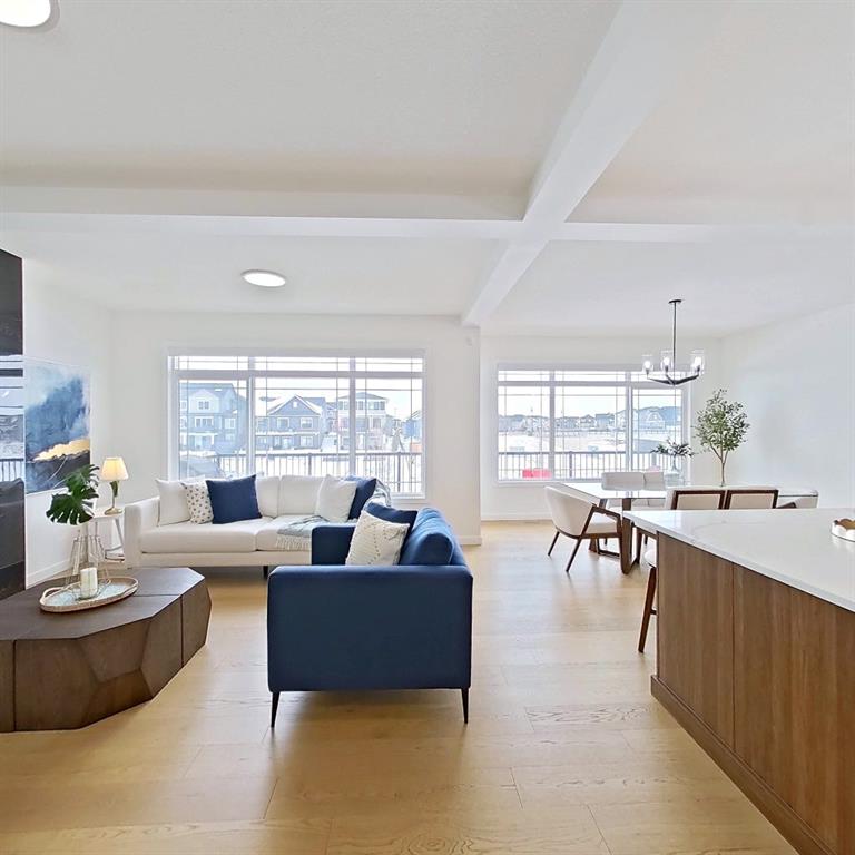 Welcome to this beautifully upgraded 2-Storey WALKOUT MCKEE built home in the desirable community of BAYSIDE. Close to 2400 SQFT it is perfectly suited for those who love to spend time outdoors. Just a short walk to Nose Creek Elementary, this home is surrounded by an abundance of parks, scenic walking paths, and the much loved canal system—perfect for year-round enjoyment, from skating in the winter to kayaking or boating in the summer. Backing onto the canal and walking paths, the home offers incredible water views through oversized rear windows and an extended FULL WIDTH DECK with matching concrete patio below. The lower level has an upgraded QUAD Slider door and a convenient gas line for your BBQ—ideal for entertaining or simply relaxing while taking in the view. The kitchen is thoughtfully designed, featuring a SILGRANITE undermount sink, GAS stove, built-in microwave, chimney hood fan, 2 TONE cabinetry and elegant GLASS upper cabinets. You’ll love the abundance of storage, including pot and pan drawers and a large recycling pullout integrated into the island. Inside, the home is finished with upgraded window coverings, including remote-controlled blinds in the dining and living rooms. TRENDY HARDWOOD flooring extends throughout the main floor (with tile in the mudroom) and into the den, replacing standard carpet for a more elevated feel. Check out the floor to ceiling TILED Fireplace as well as the black METAL SPINDLE railings on your way upstairs. The primary suite is like none other, we dare you to find a LARGER bathroom. Complete with a stylish BARN DOOR, a large tiled shower with a built-in bench, a relaxing soaker tub, and upgraded 12 x 24 tile throughout. A bank of three drawers adds both convenience and extra storage as well as a large walk-in closet. Additional thoughtful features include rough-ins in the basement for a future wet bar, making it easy to customize the space to suit your needs. The laundry room is equally impressive, offering ample storage, a quartz folding counter over the washer and dryer, and a convenient sink. This home truly offers the perfect blend of luxury, functionality, and an unbeatable location in one of Airdrie’s most sought-after communities.