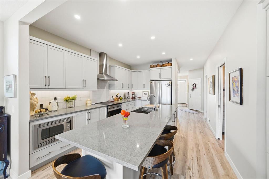 Welcome to 31 Riviera Court, a walkout home backing directly onto the Bow River with unobstructed upstream views, mountain backdrops, and unforgettable sunsets. Perfectly positioned on a quiet court in Riviera, this property delivers the kind of lifestyle buyers are searching for but rarely find. Step out your back door to the river pathways, take in the views from your balcony, and experience a level of privacy and natural beauty that sets this home apart from anything else in the area. Inside, the pride of ownership is immediately clear. This home has been meticulously maintained with no pets and high-end detailing throughout, creating a clean, elevated feel from the moment you walk in. The painted front door and custom built-ins in the front entry set the tone, blending style with thoughtful functionality. The main floor is bright, open, and designed to bring the outdoors in, with seamless flow between the kitchen, dining, and living areas, all positioned to capture natural light and those incredible views. Upstairs offers comfortable, well-sized bedrooms including a primary retreat designed for unwinding at the end of the day. Step outside and you’ll understand what makes this home truly special. The fully landscaped backyard is intentionally designed with no grass for low-maintenance living, allowing you to spend more time enjoying the setting rather than maintaining it. The main level balcony is equipped with an electric awning, creating the perfect space to relax and take in the river, mountains, and sunsets in comfort. The walkout basement provides additional living space and future flexibility. For added convenience, there is also an additional laundry hookup on the main level, giving you the option to relocate the washer and dryer to suit your preference when you move in. The garage has been elevated with professionally upgraded flooring and custom built-in cabinetry, making it as functional as it is impressive. Located in one of Cochrane’s most desirable communities, Riviera offers a unique blend of nature, pathways, and quick access to Calgary while maintaining that small-town feel. This is more than a home, it’s a rare opportunity to own one of the best-located properties in Riviera.