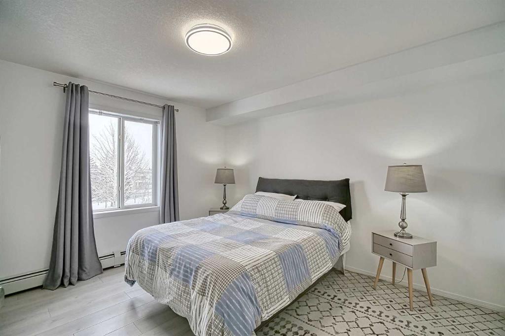 2 HEATED PARKING TOP FLOOR UNIT Welcome to bright, updated living in a highly desirable well managed building. This open-concept condo is perched on the top floor, offering privacy and views from expansive balcony. The thoughtfully laid-out interior boasts large living room, a generous dining area, two spacious bedrooms as well as in-unit laundry. The unit comes with 2 titled HEATED underground parking and a PRIVATE storage unit. The Condo Fee includes HEAT, ELECTRICITY & WATER. The building provides peace of mind with key-fob access and security cameras, plus a beautiful community Gazebo and green space for residents. Situated in a prime location, you are within easy walking distance of parks, schools, shopping and public transit. Commuting is a breeze with effortless access to Hwy 1 (16th Ave) and Stoney Trail. A truly exceptional opportunity to secure a spacious, well-maintained home in a vibrant community.
