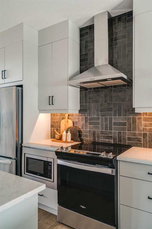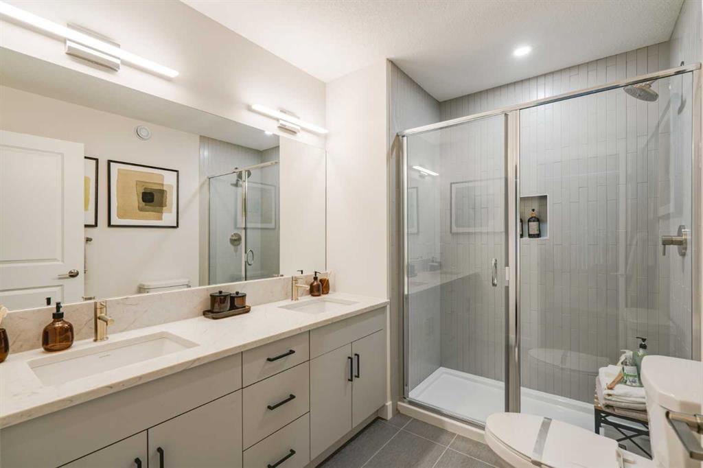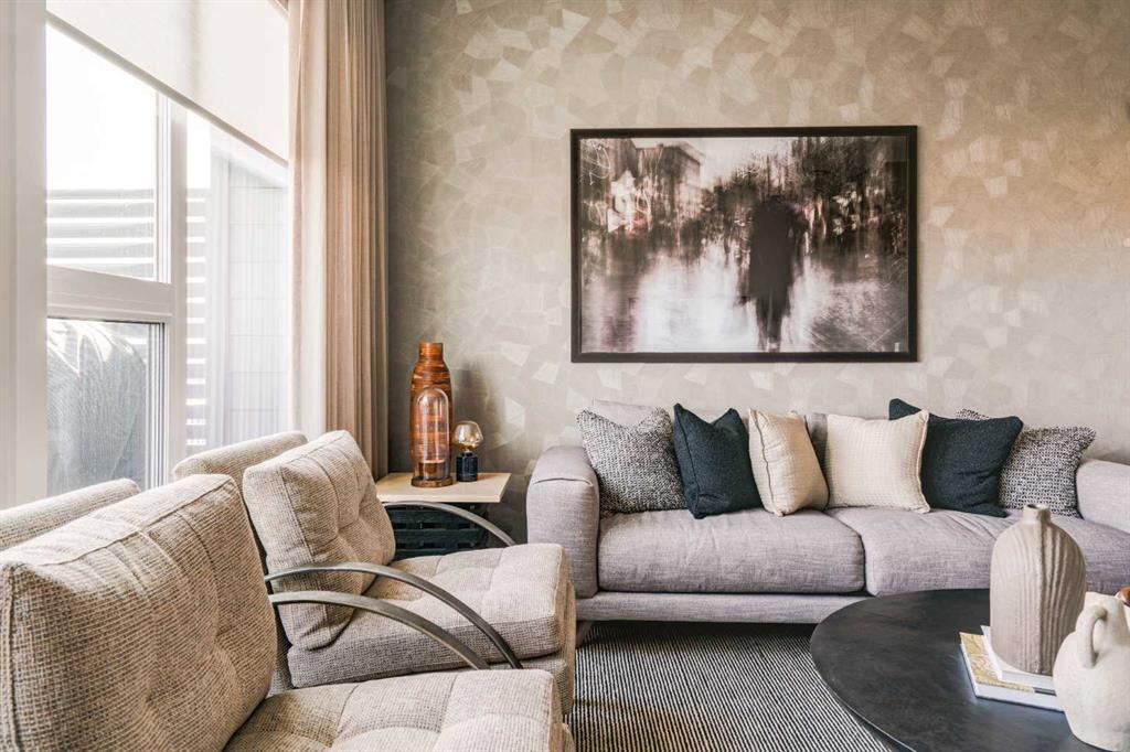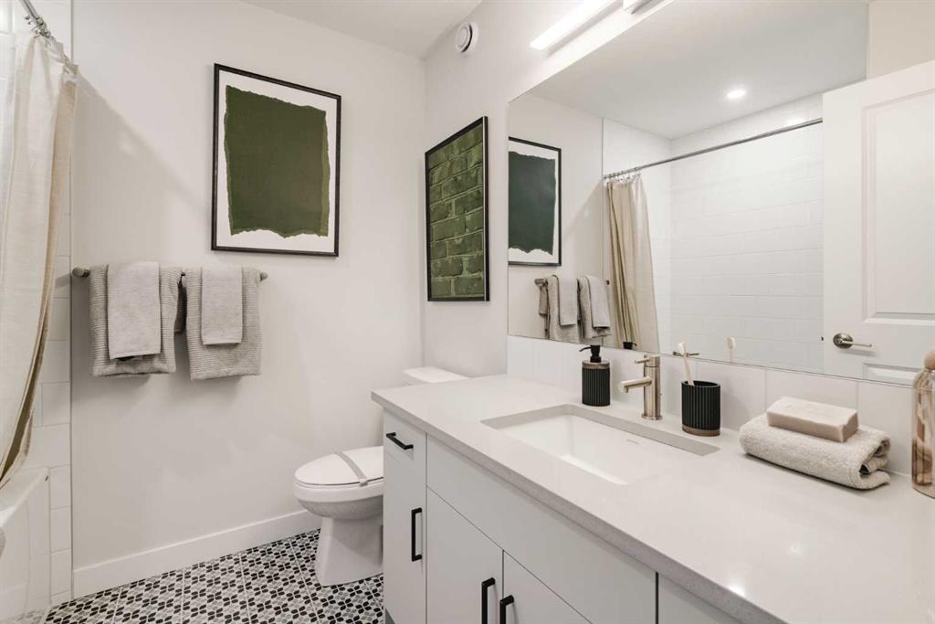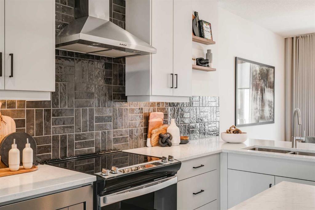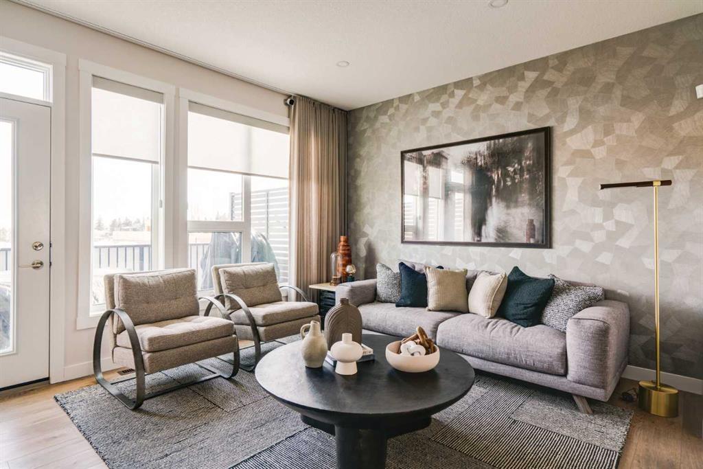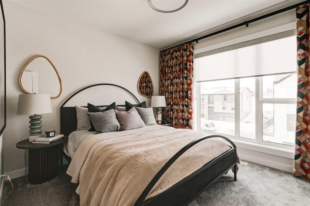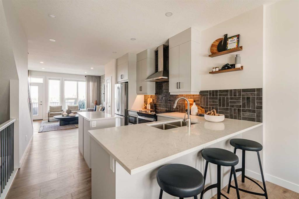 Limited-Time Promotion: Pick 2 of 3 – FREE A/C, 2 YEARS of FREE Condo Fees, or $7,500 Toward Options! Welcome to Rhythm townhomes at Taza Park by Brookfield Residential, offering a low-maintenance lifestyle perfect for first-time buyers, downsizers, or those seeking a convenient lock-and-leave home. This bright and modern ‘Arnica’ model features an intelligently designed open-concept layout with 2 bedrooms, 2.5 bathrooms, a main-level den/flex room, and a single attached garage, providing over 1,500 sq. ft. of beautifully appointed living space, plus a large rooftop patio. The main living level is filled with natural light from oversized windows and offers a seamless layout ideal for both everyday living and entertaining. The upgraded kitchen features full-height cabinetry, stainless steel appliances (including a range hood and built-in microwave), a French-door refrigerator, a large peninsula with seating, and a corner pantry. The kitchen flows into the dining area and spacious living room, with direct access to a private balcony. A convenient 2-piece powder room completes this level. Upstairs, you’ll find dual primary bedrooms, each with generous closet space and private ensuites, an ideal setup for guests, roommates, or added flexibility. A centrally located laundry area adds everyday convenience. The entry level features a versatile den/flex space, perfect for a home office, media room, or play area. The single attached garage provides secure parking along with additional storage. Additional highlights include upgraded spindle railings, a natural gas BBQ line, and a 3-year extended workmanship warranty for added peace of mind. Legal fees are included, and a complimentary Virtuo move-in concierge service ensures a smooth transition. Ideally located just minutes from Weaselhead Park, the Glenmore Reservoir, and major commuter routes, Rhythm at Taza Park offers the perfect blend of nature and urban convenience. This is a rare opportunity to own a brand-new contemporary townhome in a highly desirable location, book your showing today. **Please note: Photos are of a show home and finishes may vary.