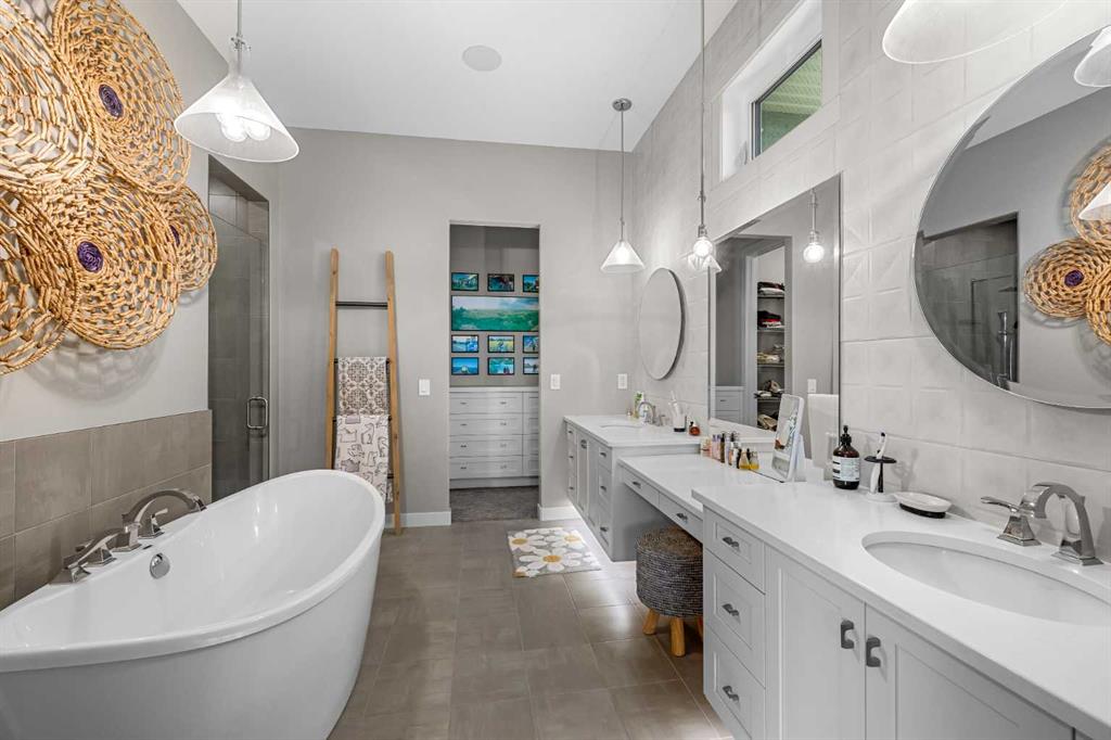 Set within a serene landscape of water and winding pathways, this luxury walkout bungalow offers architectural sophistication and natural tranquility. Designed on the sought-after Carrara 2 floor plan, the home captures a sense of openness and grandeur from the moment you arrive, with its expansive triple car garage and striking exterior. Inside, soaring 10-foot and 13-foot ceilings create an immediate feeling of volume and light, elevating every space with an airy, refined atmosphere. The main living area showcases comfort and grandeur with oversized windows framing uninterrupted views of the pond and pathway system beyond. Natural light floods the interior throughout the day, reflecting off carefully selected finishes and enhancing the home’s warm, modern palette. The heart of the home is an expansive and beautifully appointed kitchen. A massive island, custom cabinetry, upgraded appliances, storage galore with a functional yet elegant butlers pantry, a separate walk in pantry and short and convenient close entrance through the oversized mudroom to the garage entrance perfect for bringing in grocery's. The open concept connects the dining and great room, forming an ideal setting for both everyday living and upscale entertaining. Clean architectural lines, generous proportions, and an effortless flow between spaces define the layout, with elevated ceiling heights adding drama and distinction without sacrificing intimacy. The dining area flows onto the expansive upper terrace, where a glass-railing system ensures your view of the pond remains uninterrupted while you enjoy an evening cocktail. Or seat your guests in this well appointed living room with a floor to ceiling stone fireplace both great options. Work from home in the private office away from the hustle and bustle of family activities. The primary suite is a sanctuary of its own, generous in size and enhanced by the home’s signature high ceilings, offering a quiet escape with serene views and a spa-inspired ensuite and a massive closet that won’t disappoint. The walkout lower level extends the living space in a way that feels fully integrated with the outdoors. Large glass doors open directly onto a private patio, where the gentle presence of the pond and landscaped pathways creates a peaceful retreat just steps from your living room. This level is perfectly suited for hosting guests, relaxing with family, or creating a personalized entertainment space, all while maintaining the same high-end feel as the main floor. Private bedrooms, a wet bar, a large family room, games area, yoga/ exercise room and finished storage room complete the level. Throughout the home, the combination of architectural height, thoughtful layout, and premium craftsmanship results in a residence that feels both expansive and welcoming. The triple car garage adds ample space for vehicles, storage, and lifestyle needs. This home embodies a rare balance of luxury, comfort, and natural beauty.