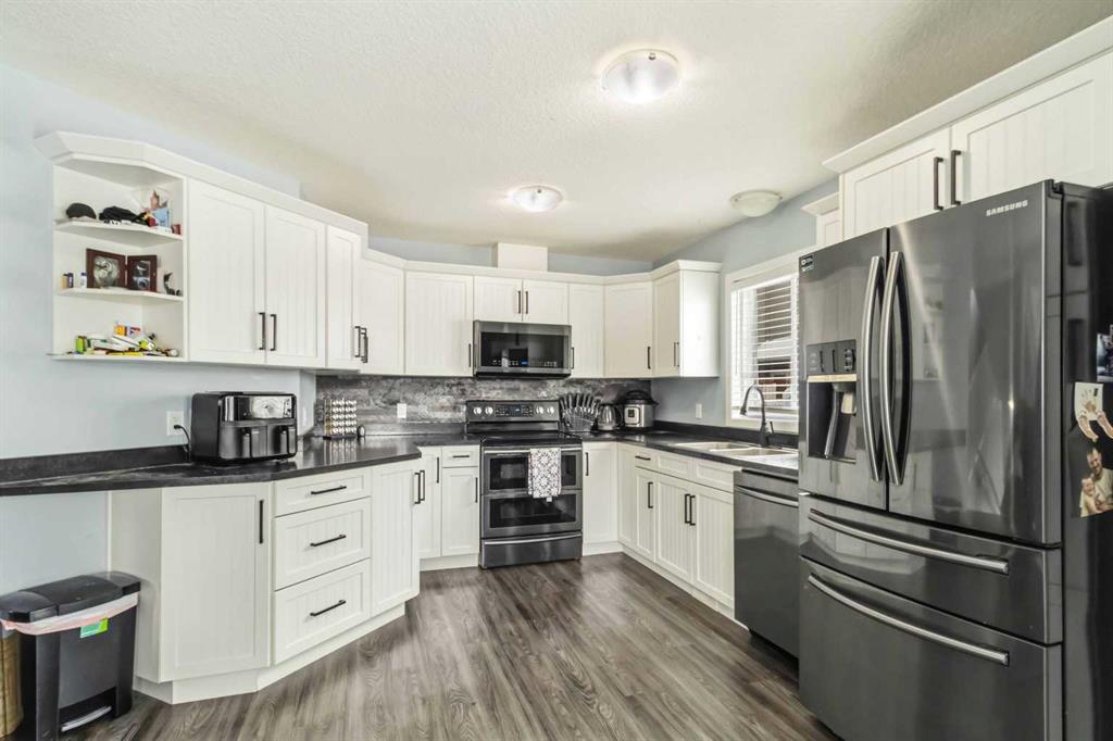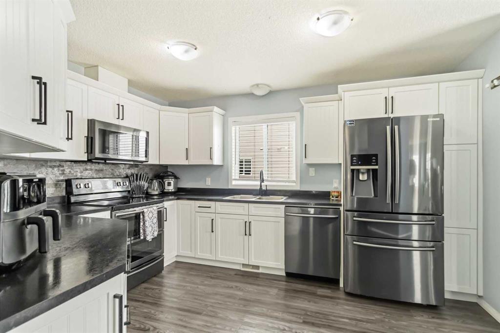 Welcome to 104 Loutit Road Unit 407 in the sought-after Lakewood Townhomes—an exceptional corner unit offering space, style, and versatility in the heart of Timberlea. This beautifully designed home features 2 bedrooms, 2.5 bathrooms, and a functional layout that appeals to both homeowners and investors alike. Coming up from the foyer, you’re welcomed by a bright, open concept main floor with durable vinyl flooring throughout. The spacious living room is filled with natural light from a charming bay window and anchored by a cozy gas fireplace, making it perfect for entertaining. The adjoining dining area offers lovely views and direct access to the balcony, creating a seamless indoor-outdoor flow. The kitchen is both stylish and practical, with ample counter space and crisp white cabinetry complemented well by elegant black stainless steel appliances. The double-oven stove and 4-door fridge are such a great plus for those who love to cook and host. A convenient 2-piece powder room completes this level. Upstairs, you’ll find two generously sized bedrooms, each featuring its own private 4-piece ensuite, which is a rare and highly desirable feature for comfort and privacy. A dedicated upper-level laundry area adds to the home’s functionality. The fully developed basement with a separate entrance provides even more flexibility, offering a spacious recreation room and an additional area perfect for a home office, gym, or playroom, making the whole space ideal for modern living or potential for added financial flexibility. Additional highlights include central air conditioning, a single attached garage, and driveway parking. Located close to parks, playgrounds, schools, shopping, and walking trails, this property offers convenience, comfort, and strong investment potential in one of Fort McMurray’s most desirable communities. Whether you’re looking for your next home or a smart investment, 104 Loutit Road Unit 407 is a rare opportunity you won’t want to miss. Check out the photos. floor plans and 3D tour, and call today to book your personal viewing.