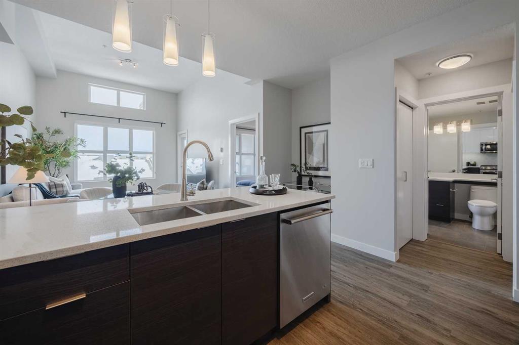 Live TOP FLOOR LUXURY in the heart of trend-setting Currie Barracks. This immaculate, open-concept 1 bedroom, 1 bathroom condo features soaring ceilings & oversized windows that only the rarely available top floor units provide. A contemporary color palette is accentuated by modern cabinetry, quartz counters & upgraded stainless steel appliances. Enjoyment also comes from the west facing balcony with BBQ gas line, in-suite laundry, heated underground parking for you AND your Guests, a private storage unit, secured bike storage, and the convenient on-site car wash. Live steps from trendy pubs, parks, and Mount Royal University, with only a 5 minute drive to Downtown. Don't miss your chance to live a life elevated to the top floor!