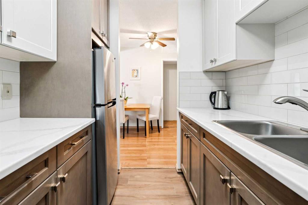Like Living in a Park! Mature Trees grace the grounds of this well-maintained complex in the Heart of Amenity-rich Acadia. Sunny 2 Bedroom END Unit Townhome with Stunning NEW Custom Kitchen Renovation - OVER $35,000 - Knockdown Ceilings, Quartz Counters, STAINLESS STEEL Appliances & Gorgeous HIGH QUALITY Soft Close Cabinetry with X-TRA Height Upper Cabinets & Dovetailed drawers. Two Spacious Upper Bedrooms with TREED Views, a large Bathroom with newer toilet, shower head & flooring, a Private Fenced Yard, lots of extra storage space in the basement & 1 nearby Parking stall with Plug-in. Updated Vinyl Windows, Newer Hot Water Tank (2 years), Professionally Managed with Affordable Condo Fees ($312.36) that Include Water & Sewer, & it's PET-FRIENDLY too! Let’s talk Location - a Short Walk to Schools, Area Shops & Restaurants, the Tennis Academy, Acadia Recreation Complex, Aquatic & Fitness Centre, Transit & More!