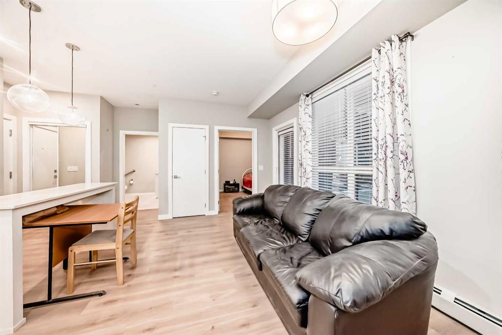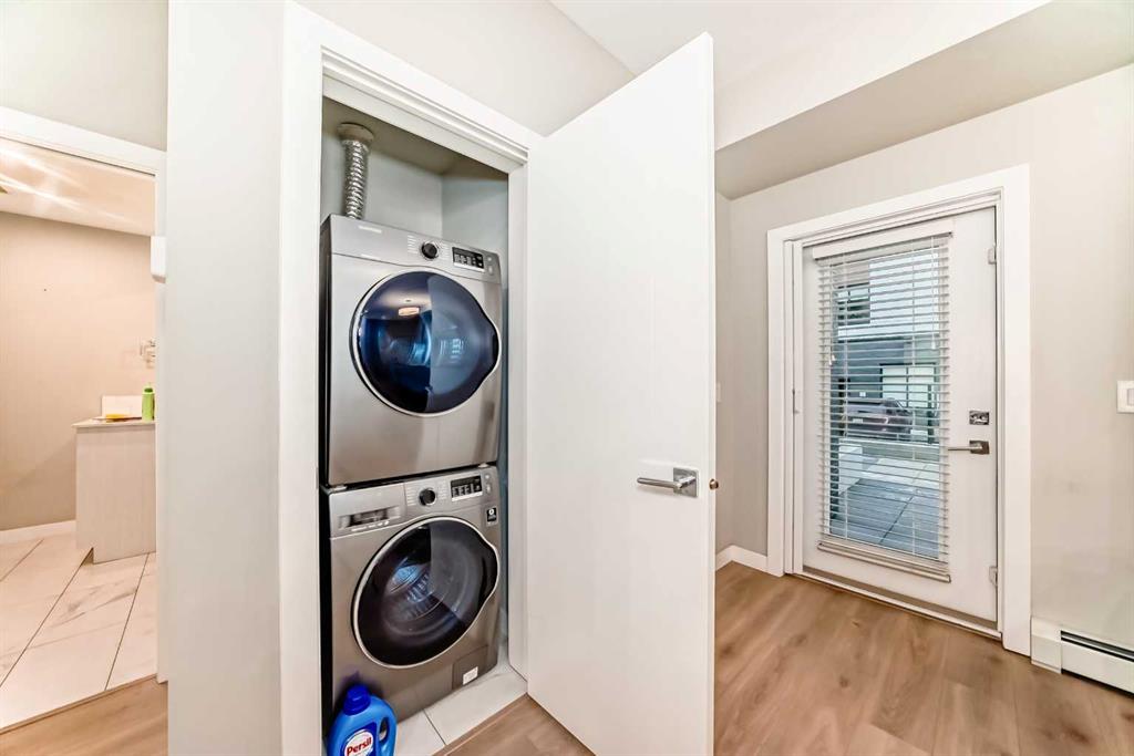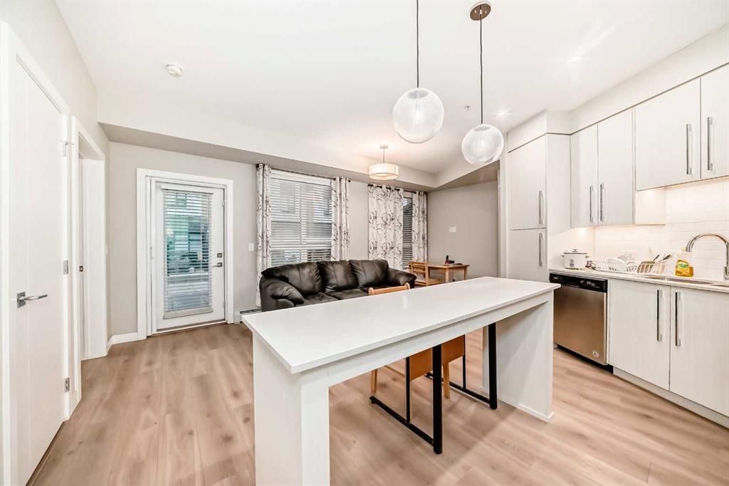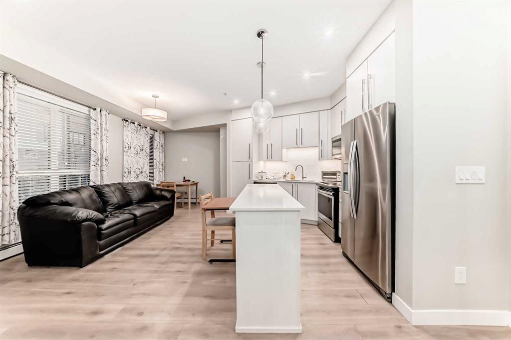 Bright ground-floor 1-bedroom condo in The Maple, a 55+ community in Calgary’s University District. This 537 sq ft open-concept unit features 9’ ceilings, vinyl plank flooring, and large triple-pane windows for abundant natural light. The kitchen offers quartz countertops, stainless steel appliances, and a central island. Enjoy direct access to a private, south-facing patio—no elevator required. The home includes a spacious bedroom, modern 3-piece bathroom, in-suite laundry, and barrier-free design throughout. Titled underground heated parking included. Residents have access to Cambridge Manor amenities, including optional dining, fitness facilities, salon services, and social programming. Conveniently located near shopping, transit, the University of Calgary, and Foothills Hospital.