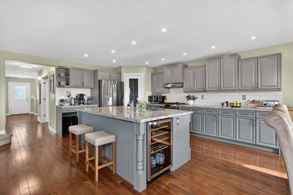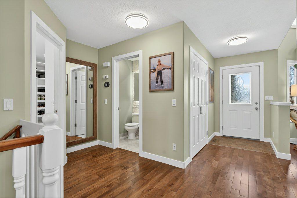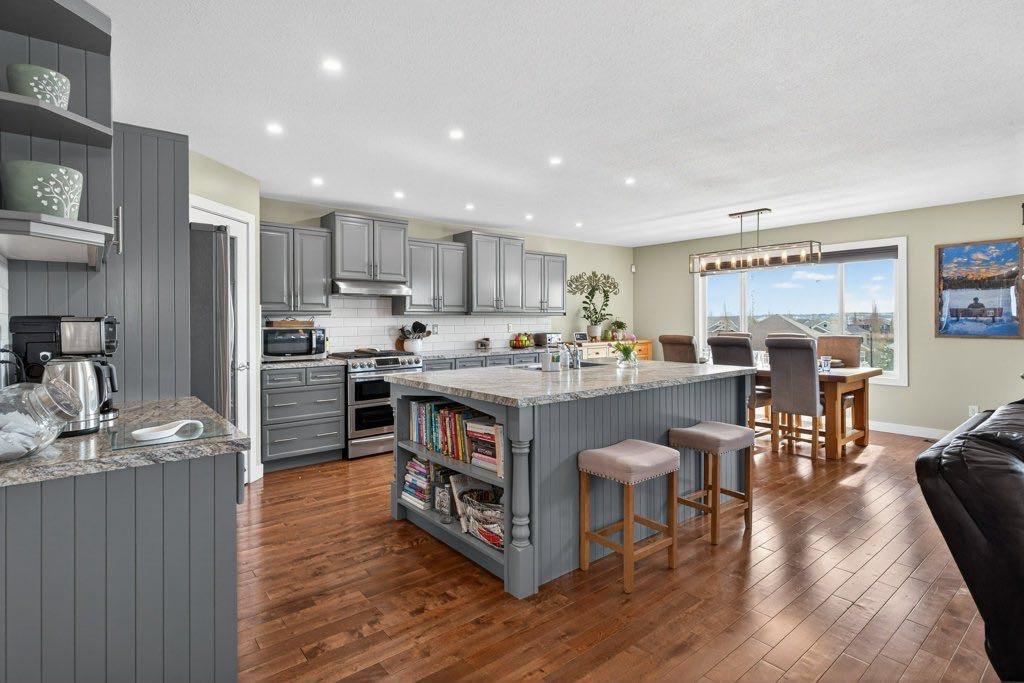 WOW! Check this place out: lake privileges, walking distance to four schools, and stunning mountain views. Located in Crystal Shores, this substantially renovated two-storey offers over 3000 square feet of finished living space with a thoughtful layout and updated finishes throughout. Hardwood floors run through the main level, adding warmth and continuity to the open design. As you enter, the living room immediately stands out with its open-to-above ceiling and two storeys of windows that bring in natural light and offers a sunny spot to enjoy the company of friends. The kitchen is designed for both daily living and entertaining, featuring a large island, a corner pantry, and ample cabinetry. The stainless steel appliances feature a French-door fridge with ice and water, LG dishwasher and a dual-fuel, dual-oven gas range. Connected seamlessly to a generous dining area that comfortably accommodates large gatherings while maintaining a sense of openness to the family room. The deck on this level has gas hook-up for four-season barbecuing. The private office on the main floor offers a quiet place to work or study and the attached garage enters into a seriously impressive mudroom with laundry and more amazing storage. Upstairs, four bedrooms provide flexibility for families or guests. The primary suite is positioned to take advantage of the south-facing exposure and includes access to a private balcony where you can take in the stunning mountain view. The additional bedrooms are well-proportioned and share access to a full bathroom, creating a functional upper level that balances space and privacy. The walkout basement is fully finished and extends the living space with a fifth bedroom, a wet bar, a dedicated TV room and workout area. This level offers versatility, whether used for entertaining, accommodating guests, or as a retreat for everyday living. Outside, the backyard backs directly onto a walking path, creating a natural extension of the indoor space and a sense of openness. The yard has been set up with both usability and enjoyment in mind, featuring a raised garden bed and well-planned landscaping. The setting allows for clear mountain views, adding to the overall appeal without feeling removed from the surrounding community. With its combination of updated interiors, functional layout, and a location that offers both views and access to pathways, this home presents a well-rounded opportunity in one of Okotoks’ established neighbourhoods. All of this with gorgeous views and lake access.