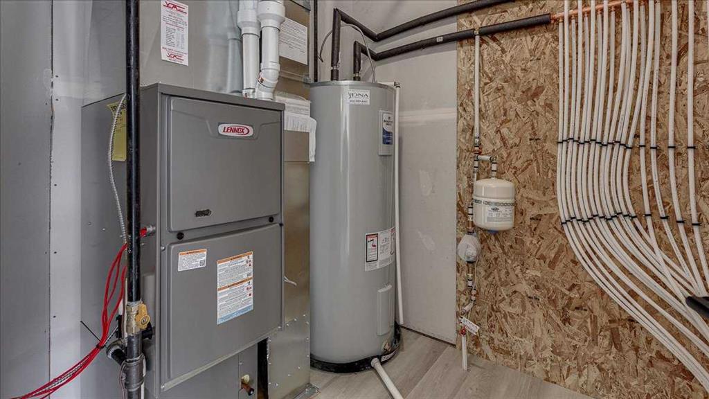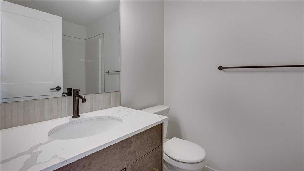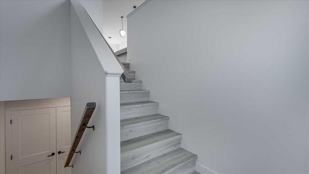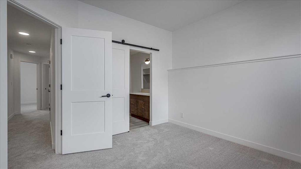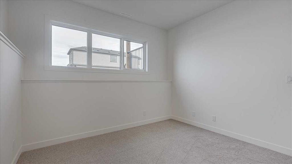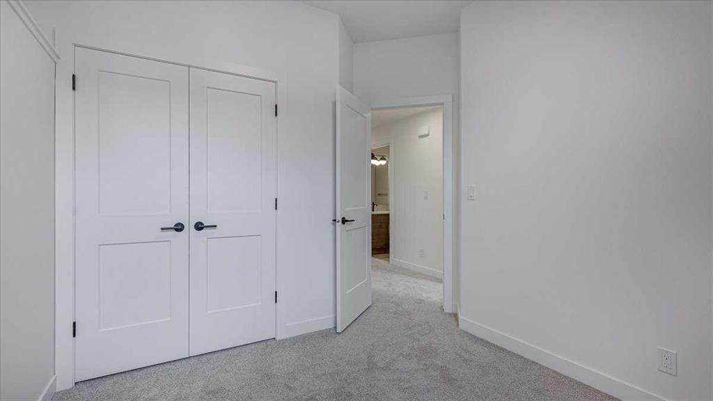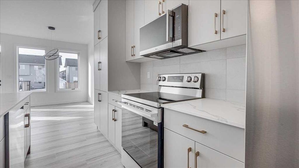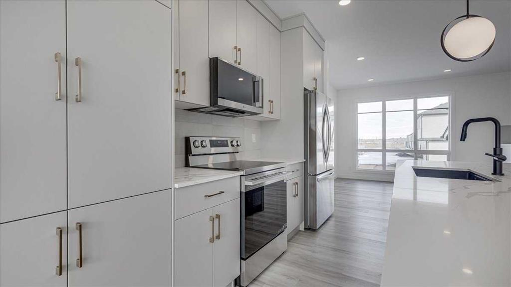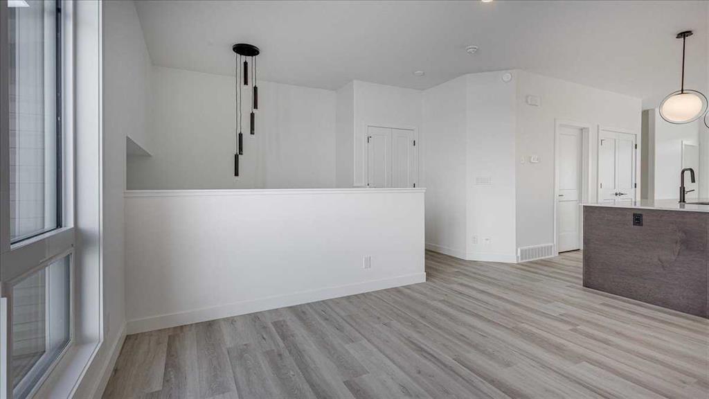 NO CONDO FEES & Great Location! This Brand new, stylish bi-level townhouse has 3 bdrms, 2.5 baths, with 4 appliances, conveniently located in Liberty Landing, close to Costco, restaurants + Highway 2 access. With lovely curb appeal, step into this bright home w/triple pane windows, up the stairs to this open floor plan that features a bright living room & dining room, with a chef's dream kitchen in the middle, with quartz countertops, stainless appliances & double door pantry. This huge island will become the centerpiece for family gatherings, favorite meals & deep conversations. Check out this mud room coming from your south facing backyard, that hides all your shoes & coats from your main area. There is also a convenient flex space outside this 1/2 bath area, perfect for a desk for working @ home, or dog crates or freezer...just imagine what you could use it for! On the lower level, you will find the primary bedroom master with a huge window w/barn door leading to your ensuite & walk in closet. 2 more good sized bdrms, full bath & laundry area fit also neatly on this level. There is also a spacious storage area under the stairs. Front yard will have sod, back yard will have top soil to grade + dividing fence done on the east & west property lines towards the parking area will be completed for you. This south facing backyard is where you will spend your summer evenings & 2 car off street parking off Paved back lane. This unique floor plan will impress with all the natural light & affordable price without being too small! GST included with rebate to builder. Interior pictures are of another unit with the exact floor plan and colors. Proposed possession is April 30/26
