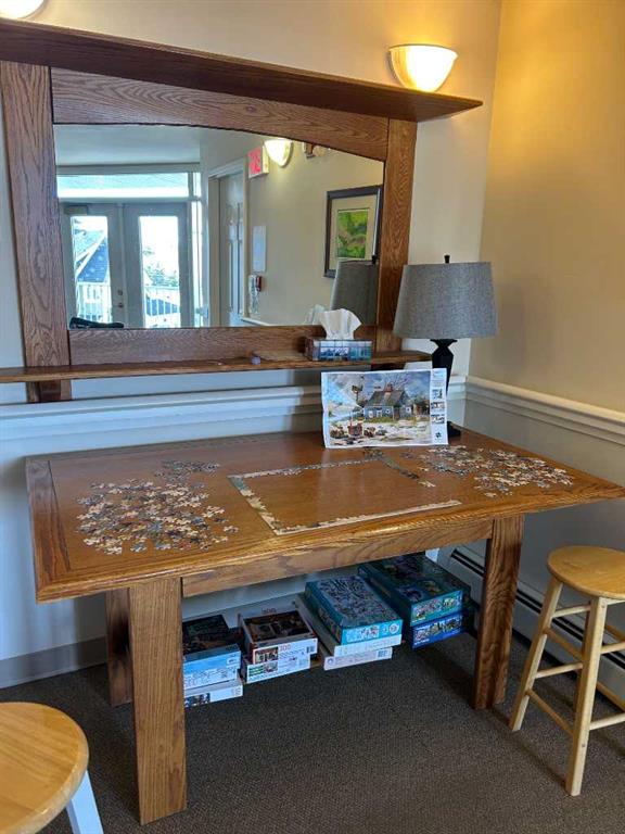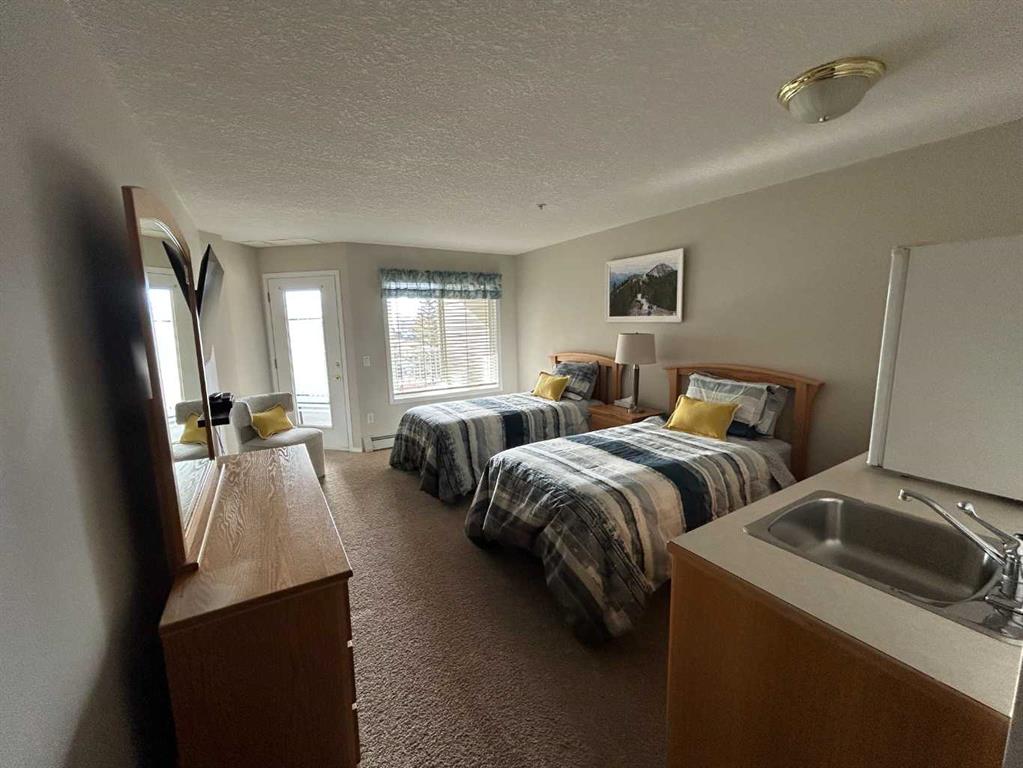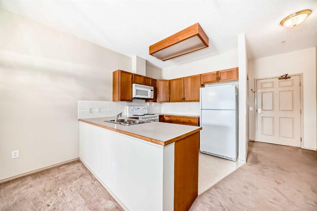 Welcome to a vibrant and welcoming 60+ community where comfort, connection, and lifestyle come together beautifully. This charming one-bedroom, one-bathroom apartment offers a cozy, low-maintenance living space perfect for reducing your responsibilities, but not your next chapter! An open floorplan tastefully and seamlessly combine the kitchen, dining, and living room, making it easy to cook, clean and relax! Next, step outside to your private south facing patio where community flower beds and a courtyard welcome you! You can spend your evenings relaxing here with your espresso, or go walking nearby on some of Airdrie's finest paths that lead you through nature to all your shopping essentials! This unit also comes with a titled single detached garage that doubles as additional storage for those seasonal items. What truly sets this residence apart is the incredible sense of community. Residents here are known for being friendly, inclusive, and genuinely supportive—creating an environment where neighbors quickly become friends. Whether you’re social by nature or not, you'll enjoy being surrounded by positive energy, and you’ll feel right at home. The building boasts an impressive array of amenities designed to enrich your daily life. Enjoy creative time in the fully equipped craft room, tackle projects in the wood shop, or stay active in the fitness room. For leisure, there’s billiards and shuffleboard, a library and puzzle stations. There are comfortable common areas to relax and connect or even book a gathering in the party room to unite the family or your old crew! Your in-room laundry is supplemented with additional larger free laundry facilities to tackle the bedding and towels, and the $50/night second floor guest suites make hosting family and friends effortless, and convenient! The condo corporation goes above and beyond to foster community spirit, hosting a variety of engaging events including group dinners, shuffleboard and crib nights, live "mini" concerts, and even birthday celebrations. There’s always something to look forward to! Book a showing today to see what all the fuss is about!