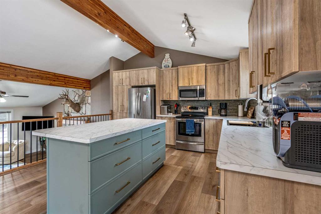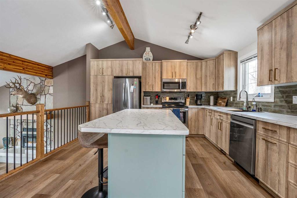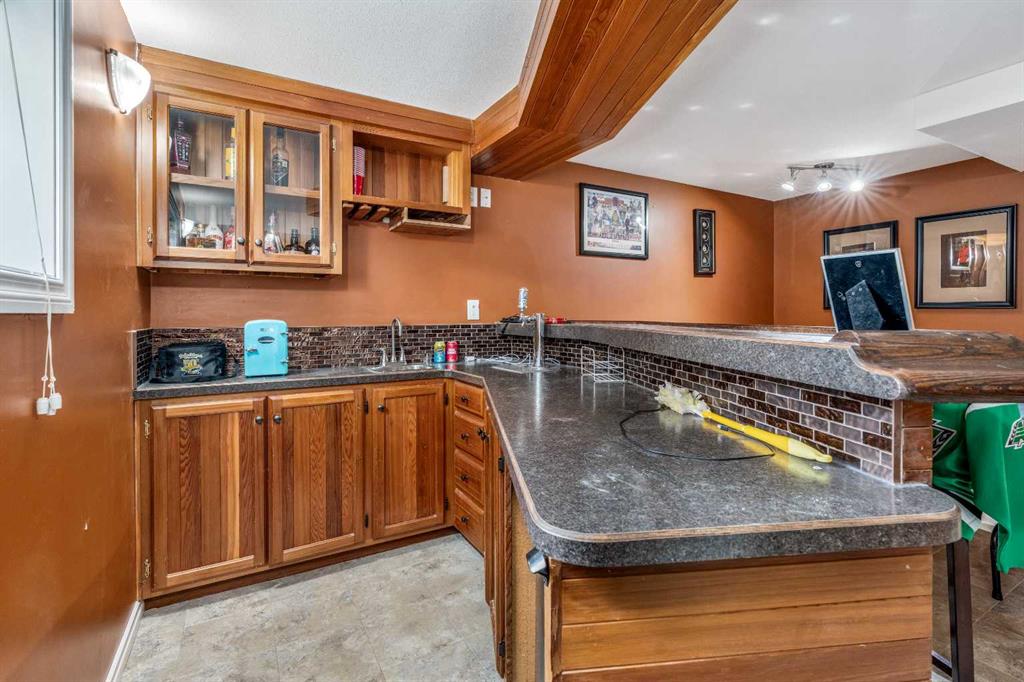 If you’ve been waiting for a home with space, personality, and zero backyard neighbors — this is it. Tucked onto a quiet street in Taber, backing onto a large green space, this 1,567 sq ft 4-level split delivers something rare: room to host, room to grow, and room to breathe. Let’s start where the memories are made. The lower level is an entertainer’s dream. A dedicated poker room complete with a full wet bar, keg fridge, and beer tap sets the stage for game nights and playoff runs. There’s space for friends, space for stories, and space to actually enjoy your home. And if priorities change? This easily converts back into a fifth bedroom. Flexibility lives here. Head downstairs and you’ll find the ultimate movie-and-gaming retreat — a cozy theatre-style space with a second gas fireplace and no windows to interrupt the vibe. Whether it’s late-night gaming, movie marathons, or a kids’ hangout zone, this level keeps the noise down and the fun contained. Now let’s talk first impressions. Walk in and you’re immediately greeted by soaring vaulted ceilings with exposed laminated beams and a stunning floor-to-ceiling natural stone gas fireplace. It feels grand. It feels open. It feels like home. Brand new vinyl plank flooring throughout the main floor and upper level (installed this fall) gives the space a fresh, modern feel from the moment you step inside. Upstairs is where family life comes together. The kitchen is completely redone and built for gathering — featuring a massive island with breakfast seating and a dining area that actually fits everyone. No squeezing past chairs. No cramped holiday dinners. Just space. From here, step out onto the huge patio — perfect for BBQs, summer evenings, and quiet morning coffee. This level also includes a full 4-piece bathroom, two generously sized bedrooms, and a spacious primary suite with a large closet and its own private ensuite. Four true bedrooms in total — the kind of sizes homes of this era are known and loved for. Functionality? Covered. The third level offers garage access with room to comfortably fit two half-ton trucks without worrying about door dings. There’s another bedroom, another full bathroom, laundry, and walkout access to the backyard. And the backyard… this is where it gets even better. Fully fenced, backing onto green space (so no rear neighbors — ever), alley access, a large shed, concrete patio, and a natural wind break created by the home’s positioning. Even on windy Taber days, this yard stays calm and usable. Major updates are already done: • Roof shingles (2021) • Hot water on demand (2019) • Patio and front door (2020) • Kitchen Reno (2025/26) • Flooring (2025/26) Located close to schools, the off-leash dog park, trout pond, downtown amenities, and quick highway access — everything you need is minutes away. This isn’t just a house. It’s a place to host. A place to unwind. A place to grow into. And homes with this much personality — backing onto green space — don’t come along often.