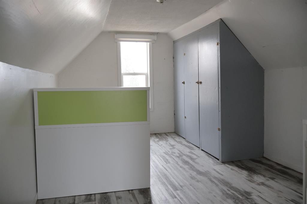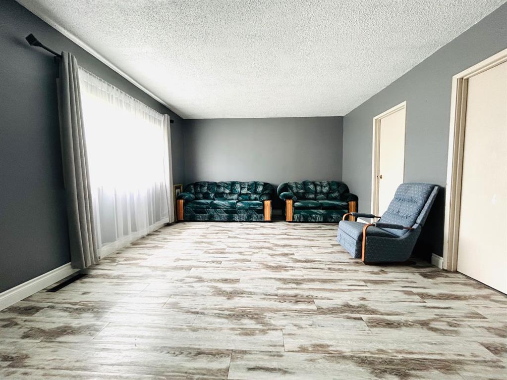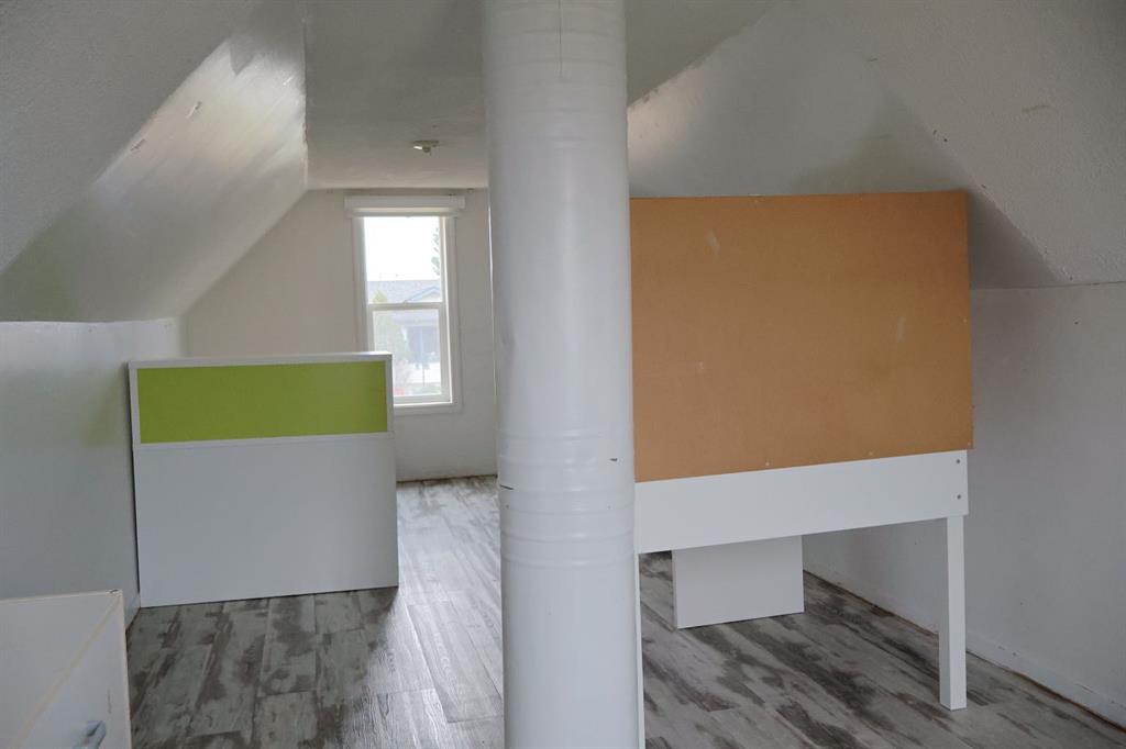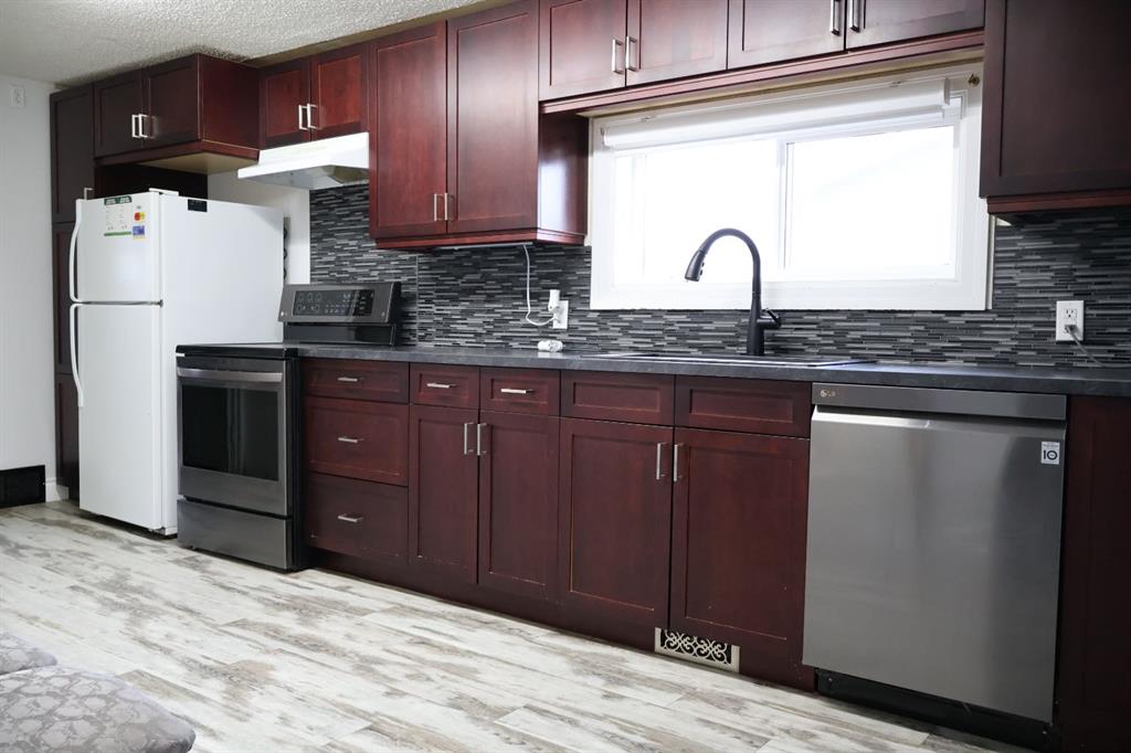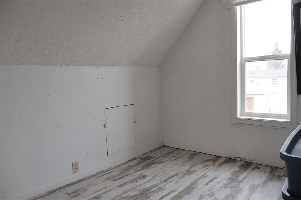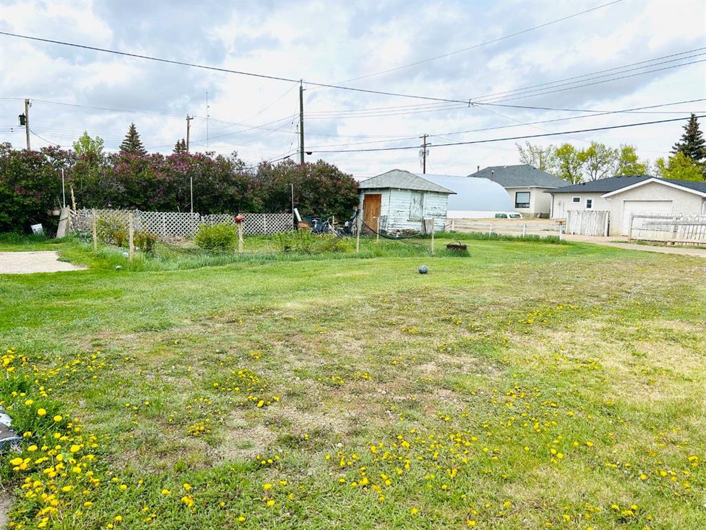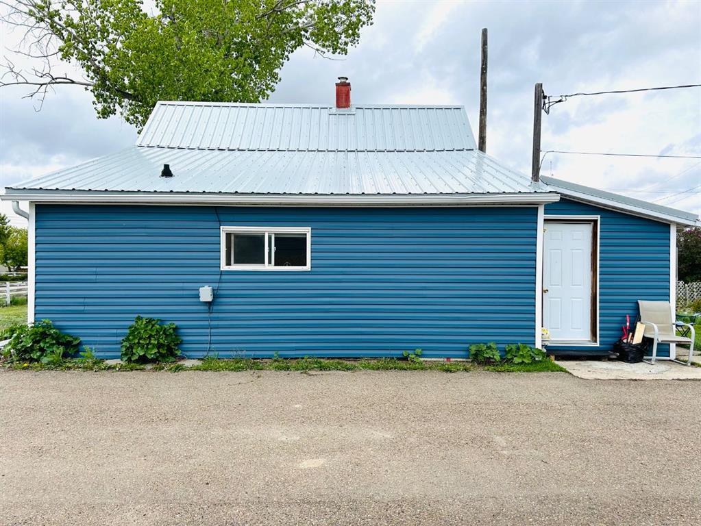 Welcome to this beautifully maintained, as is, 1.5-storey character home, offering the right space for a great starter home, income property or downsizing option. Built in 1938 and situated on one and a half lots, this 980 sq ft detached residence features a double driveway and a spacious backyard ideal for gardening or outdoor enjoyment. The home’s exterior has been updated with new vinyl siding, a durable metal roof, and modern vinyl windows. Inside, you will find updated vinyl plank flooring throughout, along with a refreshed kitchen featuring new cabinets and countertops. The main level offers a bright and welcoming living room with a large south-facing window, two comfortable bedrooms, and a four-piece bathroom. A convenient rear porch includes laundry facilities and provides access to the backyard. The upper loft area offers flexible living space that can serve as an additional bedroom, guest area, or cozy living space. The poured concrete foundation provides a solid base, while the unfinished basement houses the utility hookups. Recent mechanical upgrades include a new hot water tank (2022), new furnace, updated 100-amp electrical service (updated by previous owner), central air conditioning, sump pump, and forced air heating. Sewer line has just been fully replaced. Ideally located within walking distance to downtown amenities, schools, playgrounds, and recreational facilities. With its extensive updates, spacious lot, and inviting layout, this home presents an excellent opportunity for those seeking comfort, character, and value in the heart of Oyen. Contact your local Realtor today to book a showing!