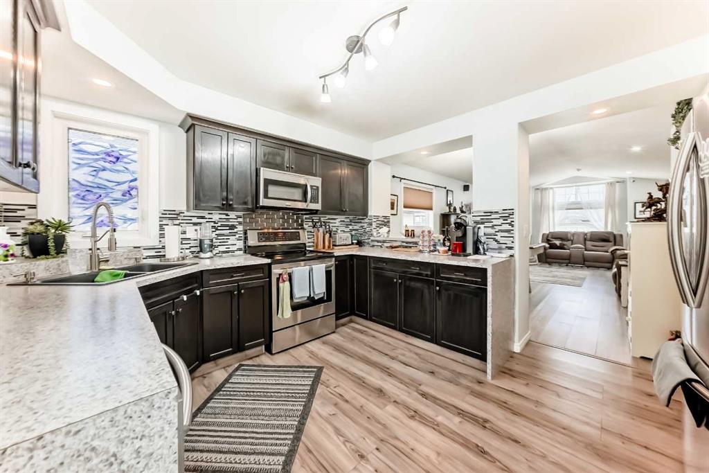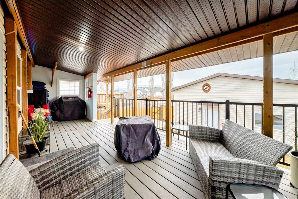 Welcome to this charming, well maintained home, perfect for families or anyone seeking a comfortable, move in ready property. Featuring 3 spacious bedrooms and 2 full bathrooms, this home offers a functional layout ideal for everyday living and entertaining. The bright, inviting living room creates a warm space to relax, while the well appointed kitchen provides ample cabinetry and workspace, with direct access to the deck perfect for seamless indoor/ outdoor living. The fully finished basement adds valuable living space, ideal for a recreation room, home office, or guest accommodations. Recent updates include a new hot water tank (2025) and a recently serviced furnace, offering added peace of mind. Outside, enjoy a heated double detached garage with a workbench and built-in shelving perfect for hobbyists or extra storage as well as a convenient RV parking pad. The beautifully landscaped, fully fenced yard offers a private outdoor retreat, ideal for families, pets, and entertaining. Located in a desirable neighborhood close to the hospital, parks, soccer fields, schools, and amenities, this home combines comfort, functionality, and an excellent location. The perfect starting point for your next adventure!