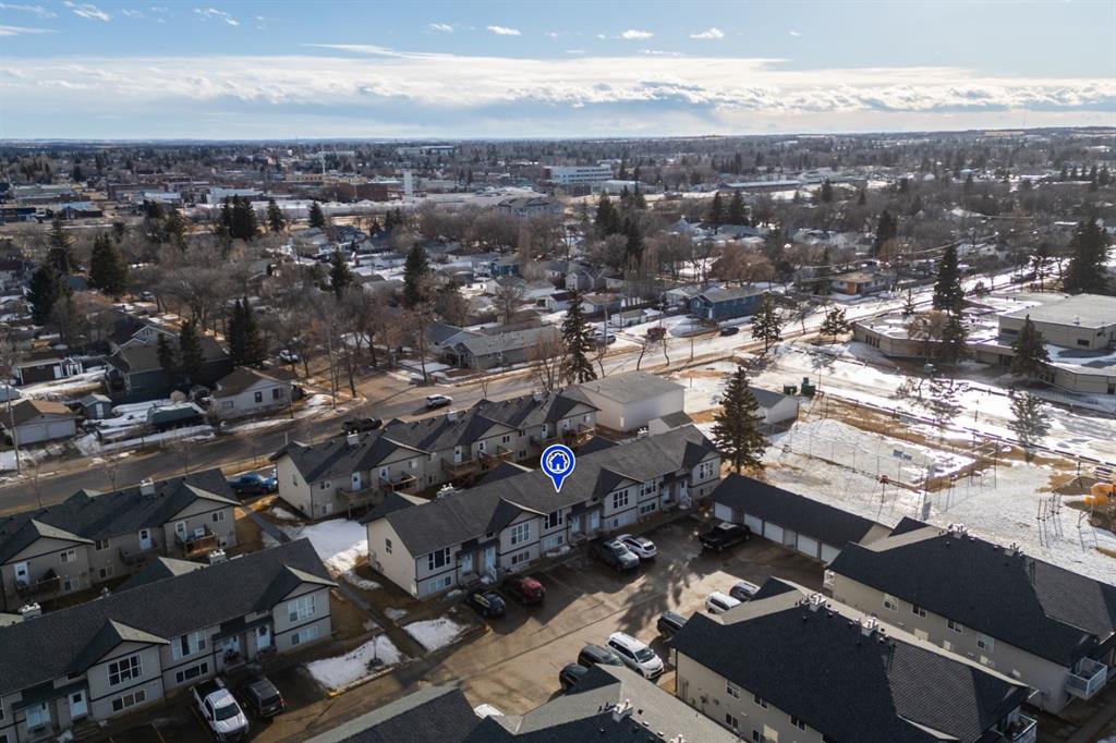 Looking for a smart start or easy investment? This charming bi-level townhouse condo offers the perfect blend of comfort and convenience, just minutes from schools, parks, shopping, and downtown Camrose. Step inside to a bright, airy main floor with vaulted ceilings and large windows that create a welcoming, light-filled space. The eat-in kitchen is designed for everyday living with generous cabinet and counter space, a centre island, pantry, and room to gather. Enjoy the added perks of a 2-piece bath, in-suite laundry, and your own private deck for morning coffee or evening unwinding. The lower level features three well-sized bedrooms, a full bath, and extra storage. Low-maintenance living, a well cared for home in an unbeatable location, this is one you won’t want to miss!