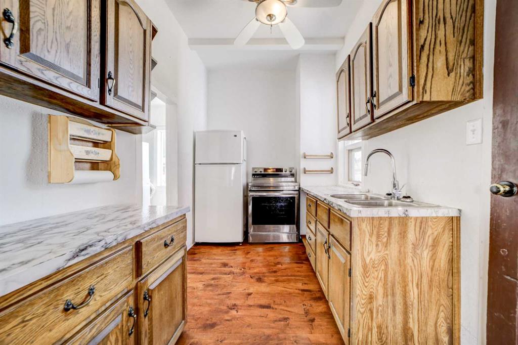 Built in 1930, this character home feels warm the moment you step inside. The home is modest in size, with two cozy bedrooms, a single bathroom, and a large living room that welcomes you with tall baseboards and high ceilings. Tons of natural light bathes the entire main floor from every angle. The kitchen comes with lots of counter space for cooking, plus a small dining nook for quiet mornings. This home has many unique touches, with an extra space off the kitchen (not heated) to use as a workshop, art studio, etc. This property is the perfect option for first time buyers at an affordable price, or those looking to try their hand at "restoring" a vintage property. With off-street parking, a fully fenced yard, and large back patio, the potential is endless at 1052 Bev McLachlin Drive. Book your visit today to have a look and let your imagination walk you through the property.