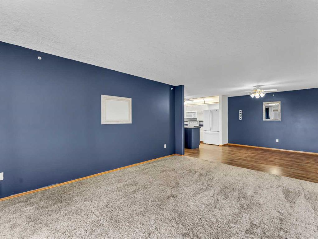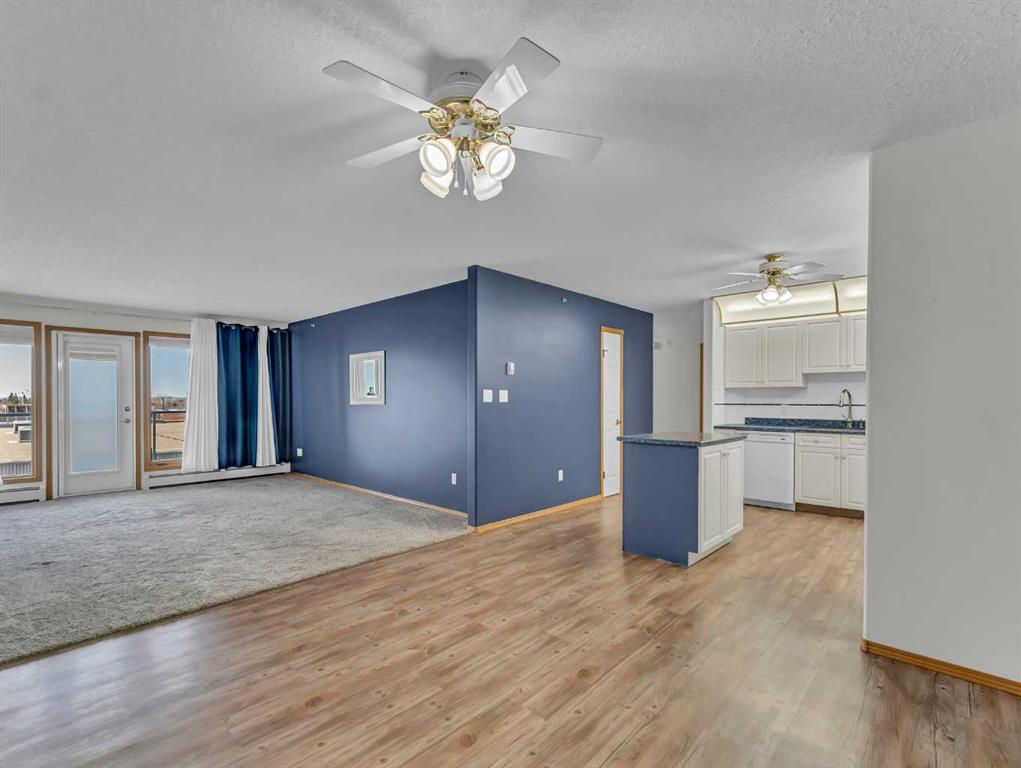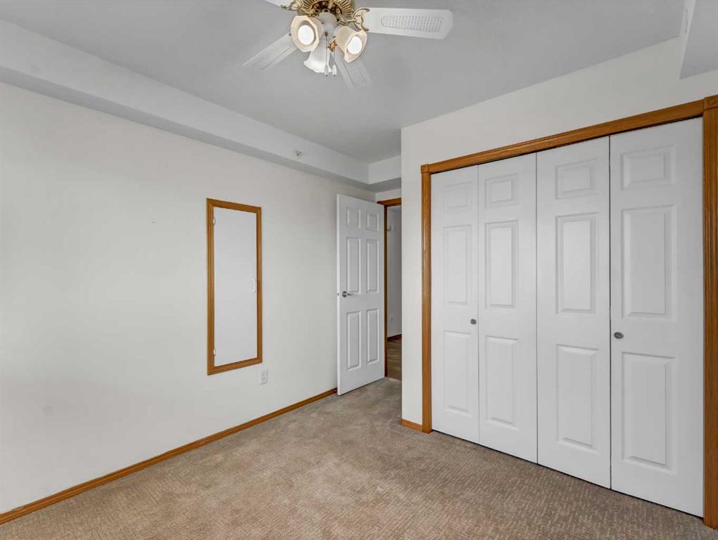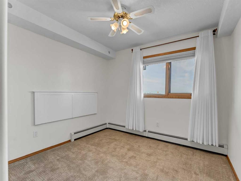 Welcome to Grandview Village—one of Medicine Hat’s most sought-after 55+ communities. This immaculate 4th-floor, 2-bedroom, 2-bathroom condo offers the perfect blend of comfort, style, and easy living. Gently lived in and thoughtfully updated, it’s an ideal downsizing opportunity without sacrificing space or convenience. The bright, open-concept layout showcases a spacious kitchen with crisp white cabinetry, generous counter space, an updated fridge, and a versatile moveable island. The dining and living areas flow seamlessly to a large, private deck, where sweeping fourth-floor views stretch to the city’s edge—perfect for morning coffee or evening sunsets. Recent upgrades include fresh paint, vinyl plank flooring, new carpet in the living room, blackout blinds throughout, and a new washer and dryer. Two air conditioning units ensure exceptional comfort all summer long. Located just steps from the elevator, with quick access to your underground parking stall and storage, everyday living couldn’t be more convenient. Grandview Village is renowned for its exceptional amenities and welcoming atmosphere. Enjoy an indoor pool and hot tub, fitness room, billiards room, social spaces, guest suites, and a beautifully maintained outdoor patio. The underground parkade even features a car wash and woodworking shop. With multiple entrances, two elevators, and a prime location close to shopping and dining, this well-managed building offers both accessibility and peace of mind. Warm, friendly, and community-focused, Grandview Village offers more than just a home—it offers a lifestyle.