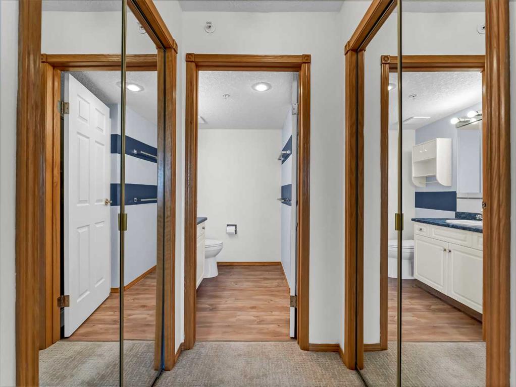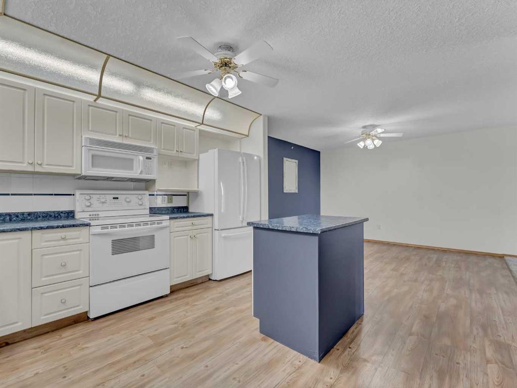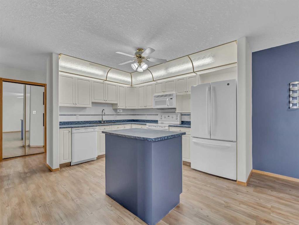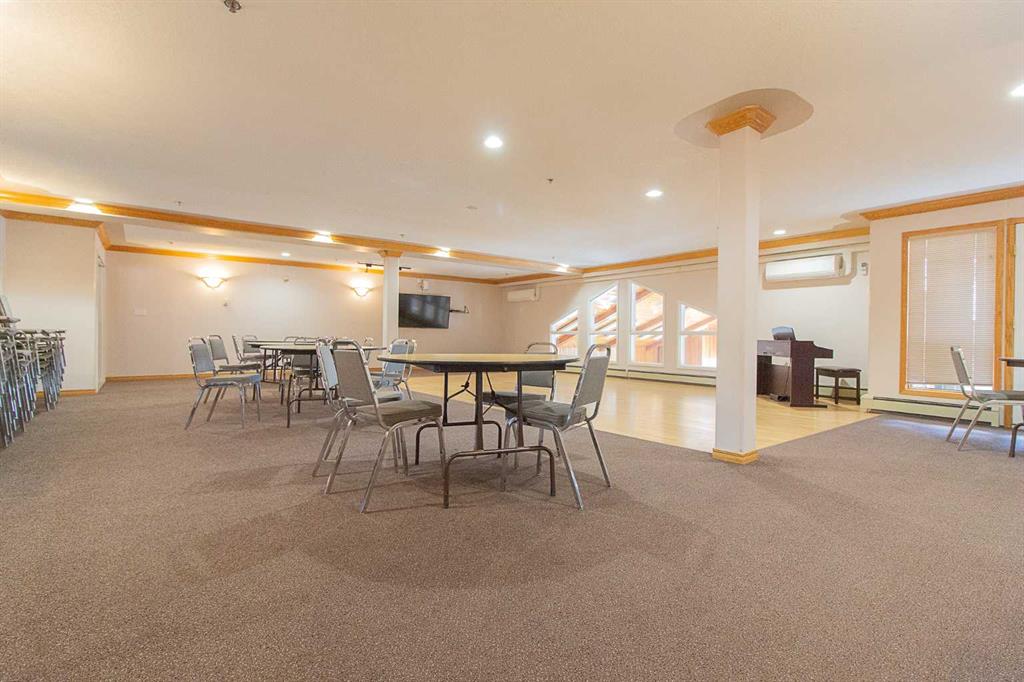 Welcome to Grandview Village—one of Medicine Hat’s most sought-after 55+ communities. This immaculate 4th-floor, 2-bedroom, 2-bathroom condo offers the perfect blend of comfort, style, and easy living. Gently lived in and thoughtfully updated, it’s an ideal downsizing opportunity without sacrificing space or convenience. The bright, open-concept layout showcases a spacious kitchen with crisp white cabinetry, generous counter space, an updated fridge, and a versatile moveable island. The dining and living areas flow seamlessly to a large, private deck, where sweeping fourth-floor views stretch to the city’s edge—perfect for morning coffee or evening sunsets. Recent upgrades include fresh paint, vinyl plank flooring, new carpet in the living room, blackout blinds throughout, and a new washer and dryer. Two air conditioning units ensure exceptional comfort all summer long. Located just steps from the elevator, with quick access to your underground parking stall and storage, everyday living couldn’t be more convenient. Grandview Village is renowned for its exceptional amenities and welcoming atmosphere. Enjoy an indoor pool and hot tub, fitness room, billiards room, social spaces, guest suites, and a beautifully maintained outdoor patio. The underground parkade even features a car wash and woodworking shop. With multiple entrances, two elevators, and a prime location close to shopping and dining, this well-managed building offers both accessibility and peace of mind. Warm, friendly, and community-focused, Grandview Village offers more than just a home—it offers a lifestyle.