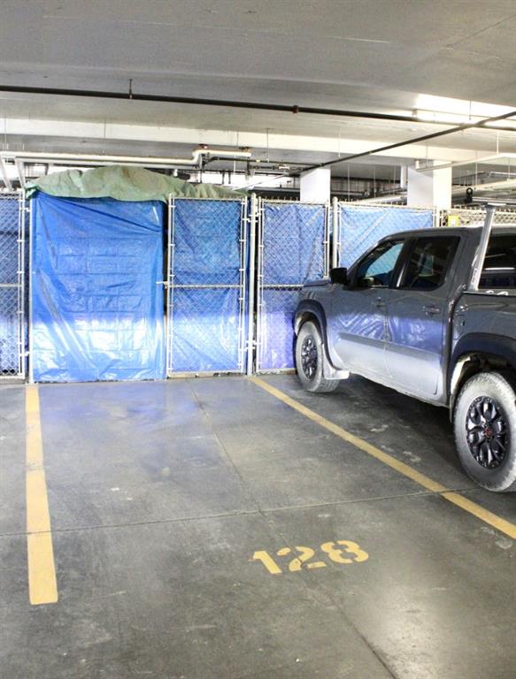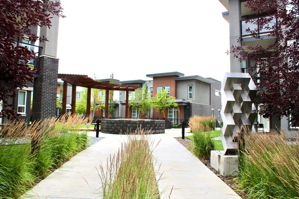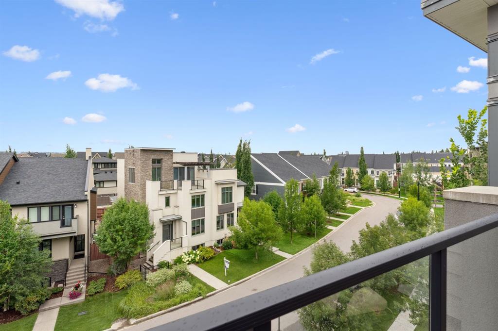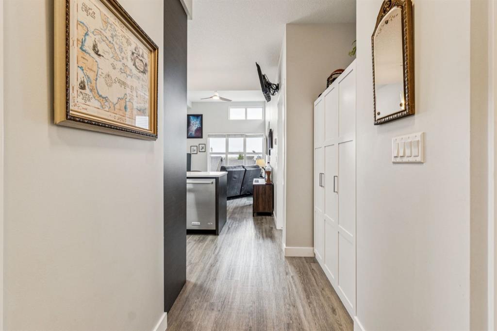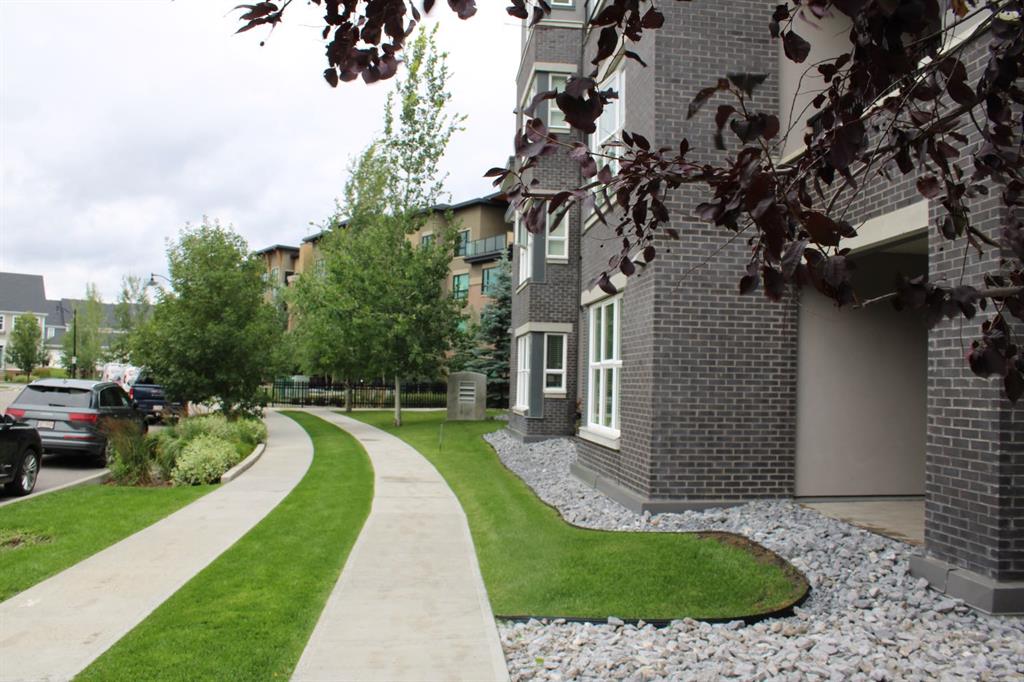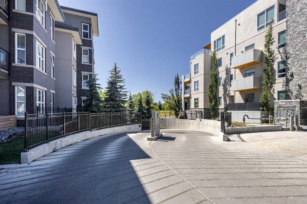 PREMIUM Top-Floor Living with 12FT Ceilings in the Urban Sanctuary of Currie Barracks! Nestled amongst Million-Dollar Homes these 4th Floor Condo’s are designed for the distinguished buyer. This Top Floor ONE Bedroom+ DEN (FLEX RM) -1 Bath Configuration are RARELY offered. Generous West Natural Light that stands out for this condo while Neutral & Modern toned Luxury Vinyl Plank floors combined with BEAUTIFUL European-Inspired Kitchen, the throughout are TOP NOTCH & Well maintained with Gorgeous Quartz Countertops, two-toned cabinetry, new LED lighting & HEX backsplash all tastefully combine for a Luxurious feel. Sleek Appliance package includes Fisher-Paykel fridge with Gas Stove too! Pull up to the eating bar or room enough for a small table, as desired. Main Living area enjoys the Exclusive 12 FT Ceilings only found on the top-floor! Large nearly 12 x 12 living room with New FAN/remote with ample space enough for relaxation. Enjoy watching Calgarys always-changing WESTERLY weather systems from your BRIGHT OPEN Balcony/deck. Luxe Carpeted Master Bedroom with Walk-thru closet to cheater 4pce Ensuite. Stackable in-suite Laundry and extra storage as well. 2nd Bedroom/Flex/Den with new LED lighting fixture, nearly 9 x 9FT to be used as desired. Extra Pantry storage recently added off-kitchen. Fantastic & Well-maintained Common Areas interior/exterior. throughout the grounds for the furry friends in this pet-friendly complex. Recently painted COMMON AREAS, Regular Bldg maintenance includes Window cleaning, Plumbing, Parkade Cleaning, Secured Titled Underground heated Parking stall with ample visitor parking (guests can be buzzed in) with lockable storage cage. Bike Room Storage, Car wash for residents and coin-op soap dispenser. Quick access to downtown, MRU, minutes to Amenities of Garrison Woods, neighbourhood restaurants/pubs, Glenmore Trail, Stoney Trail, or great investment for the University Students. Eclectic mix of residents, young professionals, established folks for this Premium condo complex!
