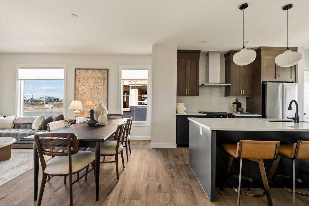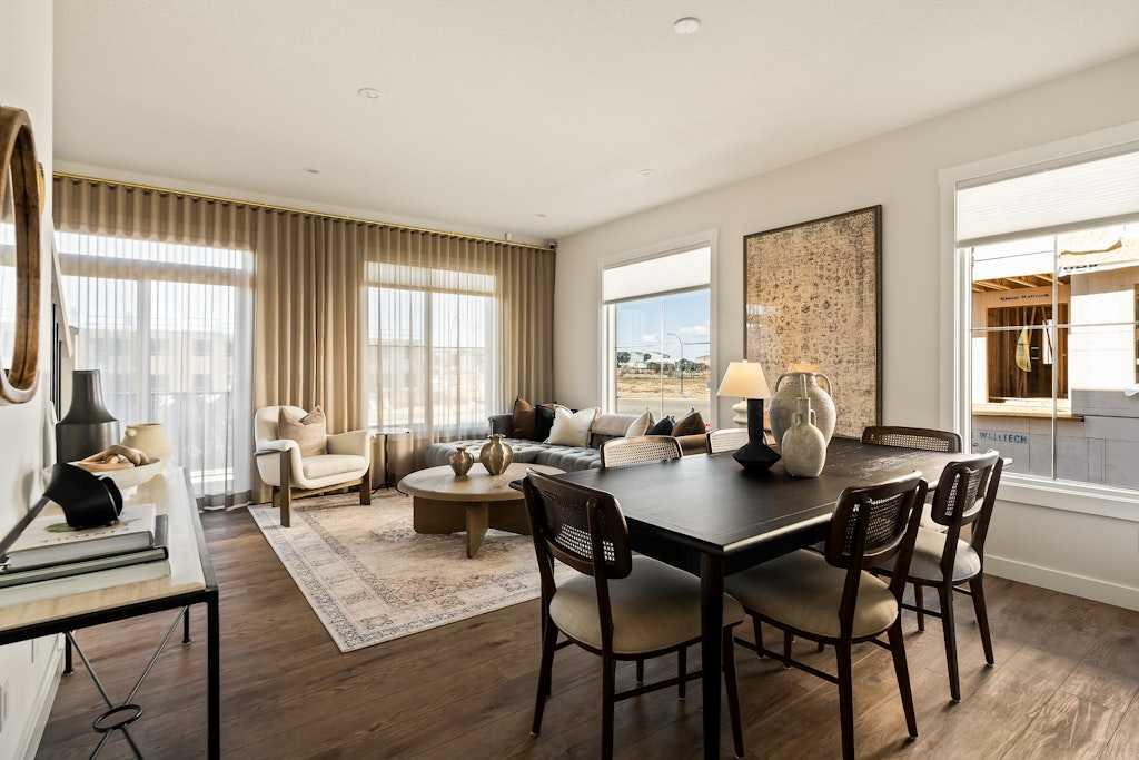 Limited-Time Incentive: Choose 2 of 3 – Complimentary A/C, 2 Years of Condo Fees Paid, or $7,500 in Upgrades! Introducing the brand-new Rhythm townhomes at Taza Park by Brookfield Residential, designed for effortless, low-maintenance living. Whether you’re a first-time buyer, downsizing, or looking for a lock-and-leave lifestyle, this community offers exceptional value in a highly desirable location. This stylish and functional ‘Harebell’ model features an open-concept layout with 3 bedrooms, 2.5 bathrooms, a main-floor den/flex space, and a double attached garage, offering nearly 1,500 sq. ft. of thoughtfully designed living space. The main level is bright and inviting, with large windows and a seamless layout ideal for both everyday living and entertaining. The kitchen is beautifully appointed with full-height cabinetry, stainless steel appliances (including a range hood and built-in microwave), a French-door refrigerator, a large with seating, and a pantry. The kitchen flows effortlessly into the central dining area and front living room, where patio doors lead to a private balcony. A 2-piece powder room and full laundry room complete this level. Upstairs, you’ll find three well-sized bedrooms. The primary suite is positioned at the front of the home and features a spacious walk-in closet and private 3-piece ensuite. Two additional bedrooms, each with their own closet and a full 4-piece bathroom complete the level. On the entry level, a versatile den/flex room provides the perfect space for a home office, media room, or play area. The double attached garage offers secure parking and additional storage, adding to the home’s everyday convenience. Additional highlights include upgraded spindle railings, a natural gas BBQ line, and a 3-year extended workmanship warranty for added peace of mind. Legal fees are included, and a complimentary Virtuo move-in concierge service ensures a smooth transition into your new home. Located just minutes from Weaselhead Park, the Glenmore Reservoir, and major commuter routes, Rhythm at Taza Park offers the perfect balance of natural surroundings and urban accessibility. This is a fantastic opportunity to own a brand-new contemporary townhome in a sought-after location, book your showing today. **Please note: Photos are from a show home and finishes may vary.