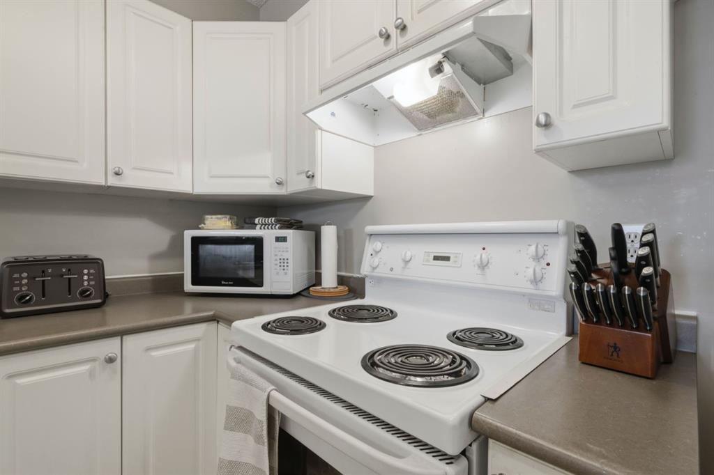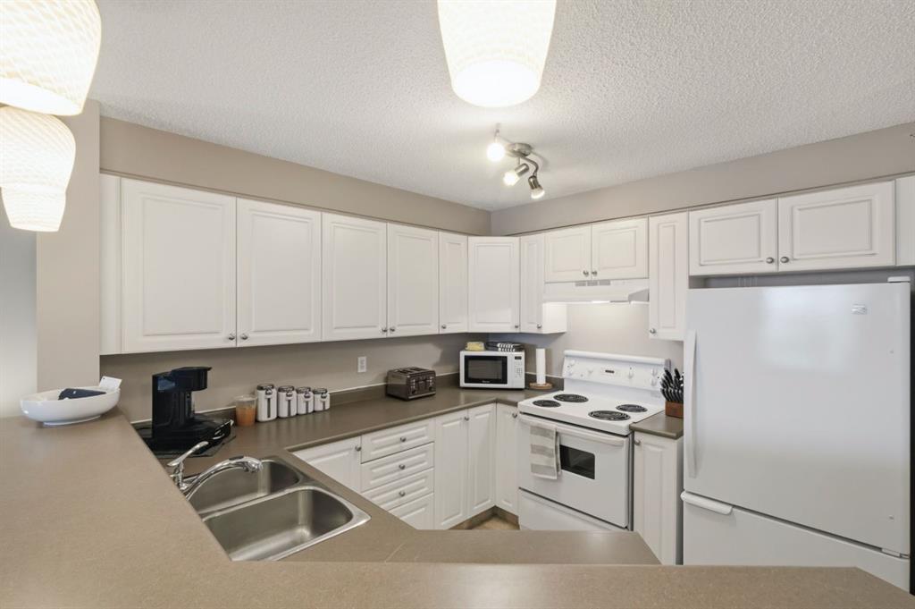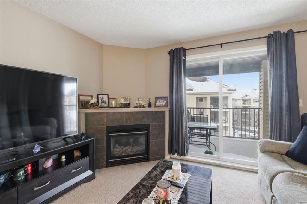 Top floor living with TWO parking stalls! This well-maintained 2-bedroom, 2-bathroom top floor unit offers comfort, privacy, and exceptional convenience. The bright, functional kitchen features plenty of cabinetry and a convenient eating bar, perfect for casual dining or entertaining. The cozy gas fireplace adds warmth and character to the living area, while large windows bring in natural light. Step outside to the sunny private balcony complete with a natural gas hookup, ideal for summer BBQs and outdoor relaxation. The unit also includes a spacious laundry and storage room with stacking washer and dryer, adding to the practical layout. A rare bonus: TWO PARKING STALLS, one titled underground and one surface stall, offering flexibility for owners and guests. Enjoy low maintenance living with condo fees that include all utilities, and a location just steps from shops, restaurants, and everyday amenities.