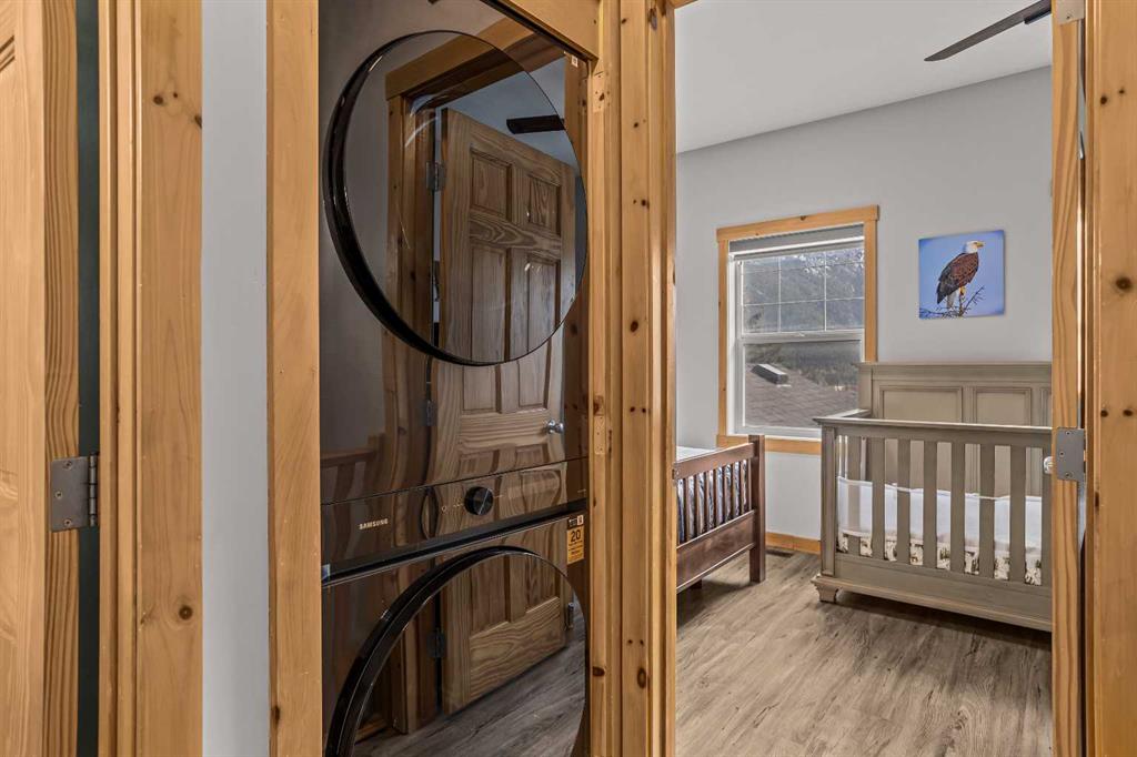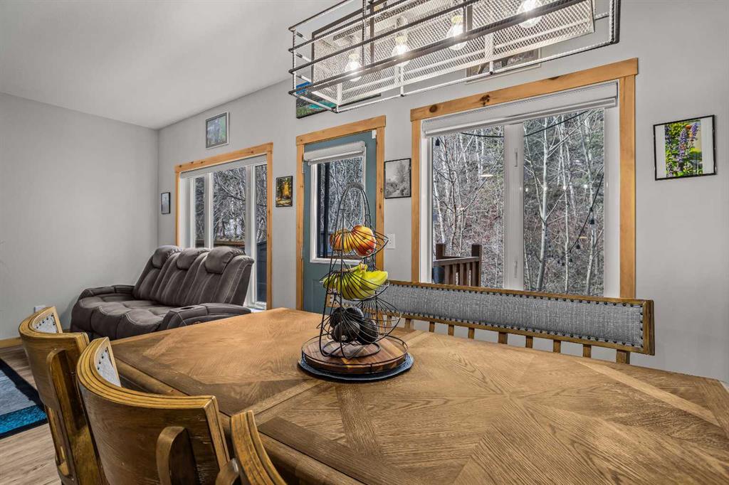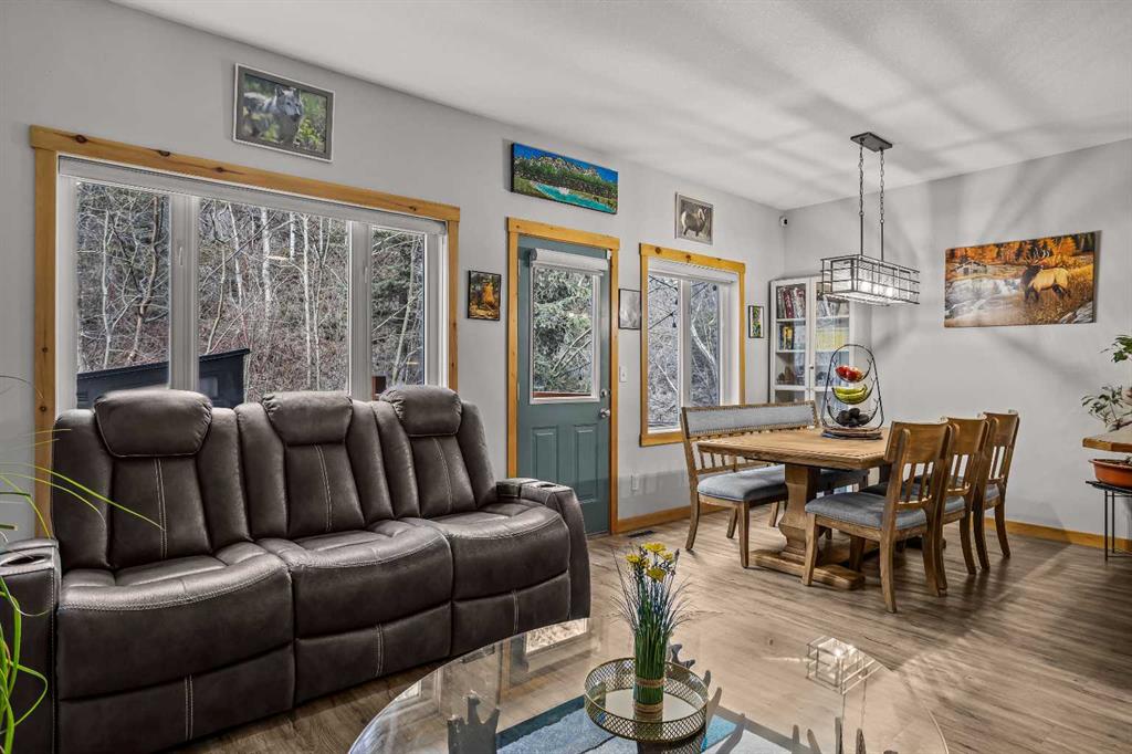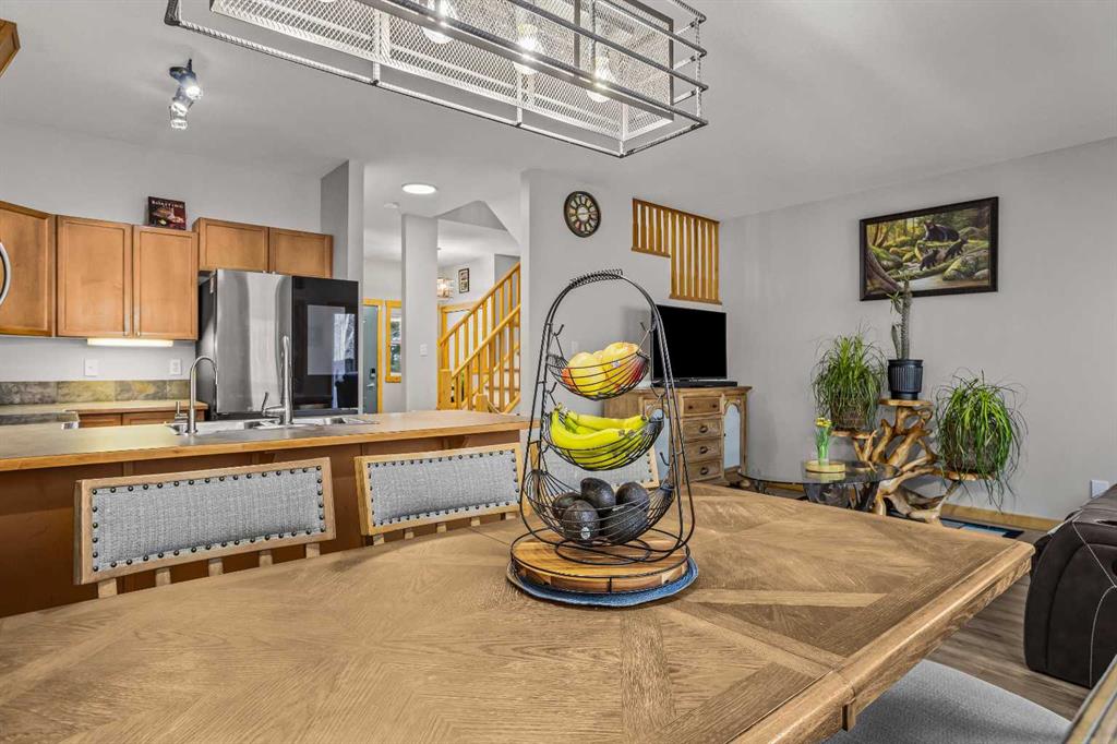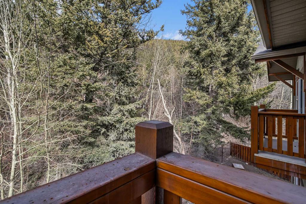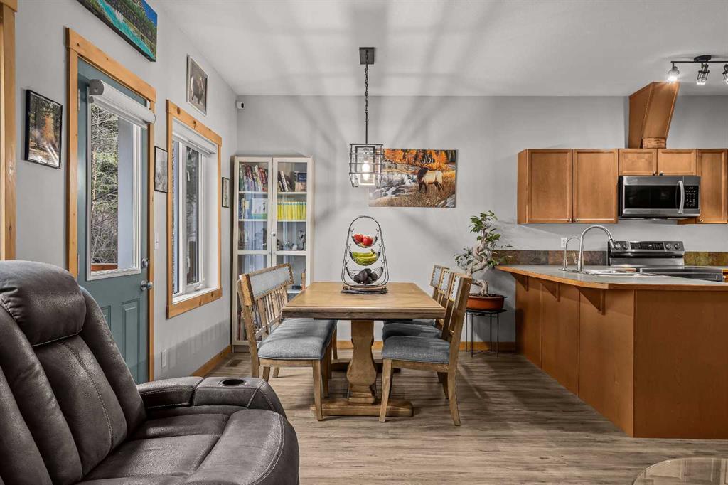 Welcome to mountain living in the charming hamlet of Exshaw, just 10 minutes from Canmore and surrounded by endless hiking, biking, and outdoor adventure. Offering over 1,800 SF, this well-appointed 3 bed, 3 bath townhome blends comfort, functionality, and lifestyle with an attached garage, convenient driveway parking, and a charming front porch—an ideal spot to enjoy your morning coffee while taking in the mountain views. Step inside to a spacious foyer that opens into a bright, open-concept main floor. The kitchen is beautifully updated with new Samsung Bespoke stainless steel appliances and a large peninsula island, flowing effortlessly into the dining and living areas—great for both everyday living and entertaining. From here, step out to your fully fenced backyard backing onto private greenspace with no rear neighbors, perfect for pets, summer evenings, and unwinding in nature. Retractable screens on exterior doors invite in the fresh mountain air, while brand new A/C keeps things cool on warmer days. Upstairs, a generous guest bedroom with dual closets and mountain views offers flexible space for family or visitors, along with a 4-piece bath and brand new washer/dryer. The primary suite provides a peaceful retreat with a walk-in closet, beautifully updated ensuite with tiled glass shower, and a Juliet balcony. The lower level adds even more versatility with a spacious rec room, third bedroom, full bath, and second laundry—ideal for guests, movie nights, or added flexibility. With low condo fees and a low-maintenance lifestyle, this is an ideal full-time home or mountain escape.