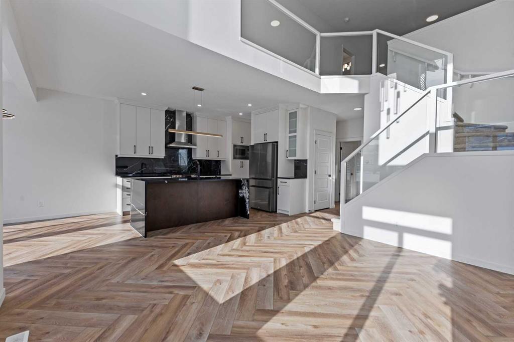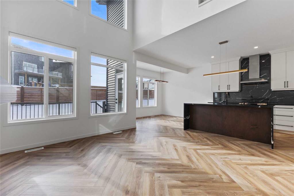 Welcome Home to 229 Calhoun Crescent NE Discover this stunning Morrison-built two-storey home, offering just under 2,000 sq. ft. of beautifully upgraded living space. The bright, open-concept floor plan is flooded with natural light, highlighted by soaring ceilings and a spectacular two-storey living room with expansive windows. The gourmet kitchen is a chef’s dream — equipped with a gas range, striking stainless steel hood fan, double-door refrigerator with water and ice, and a built-in microwave. Custom quartz countertops, ceiling-height cabinetry, and a walk-through pantry with abundant storage complete this elegant space. Upstairs, glass-panel railings and a bright upper hallway continue the home’s airy feel. The primary suite is spacious and luxurious, featuring a soaker tub, dual sinks, walk-in closet with built-in storage, and stylish brass fixtures atop custom quartz counters. The secondary bedrooms are generously sized — perfect for a growing family — and the unspoiled basement with large windows and a 3-piece plumbing rough-in awaits your future development ideas. This exceptional home, located in a sought-after family-friendly community, truly has it all.