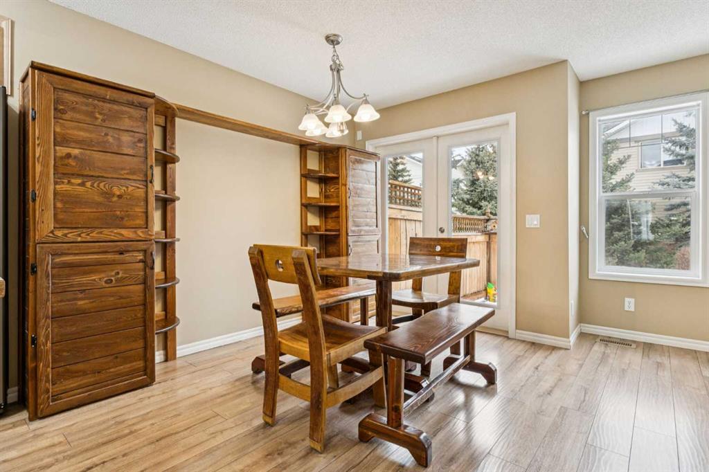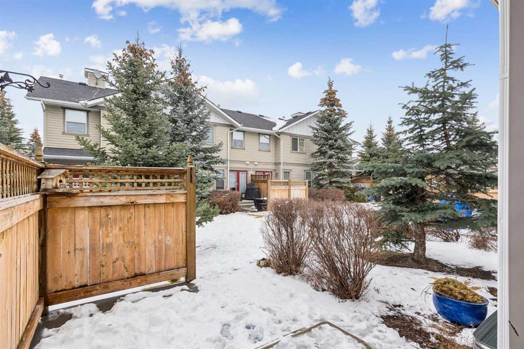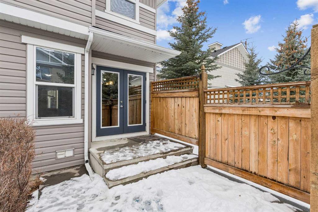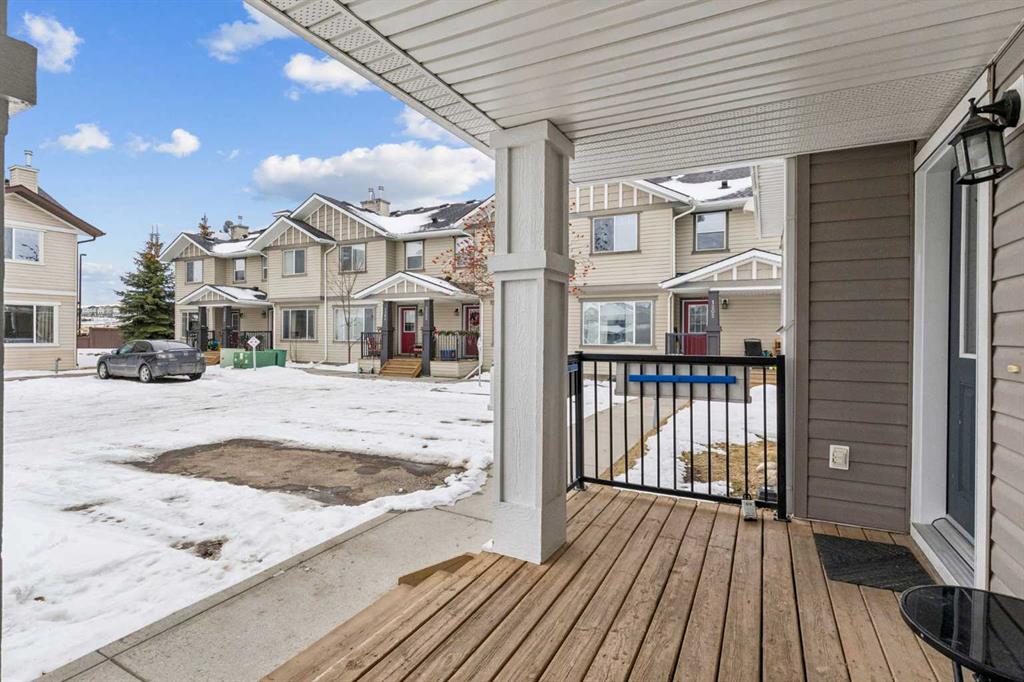 Welcome to the Patios of Sagewood! This lovely corner unit townhome with front porch charm features 3 spacious bedrooms and 2 titled parking stalls. The main floor is bright and open - being an end unit means extra windows with lots of natural light. The kitchen and dining area are open concept with laminate flooring. The kitchen boasts stainless steel appliances, an island and a pantry for extra storage. French doors in the dining area lead to your private backyard patio. There is even a front porch where you can sit and watch the kids play. The primary bedroom upstairs has a full ensuite and walk-in closet. There are 2 additional bedrooms upstairs and a second full bath. The basement is unfinished and perfect for storage. Call today!