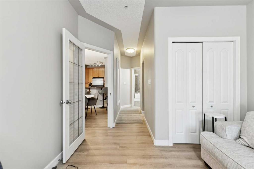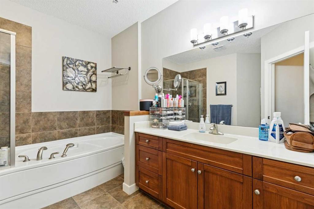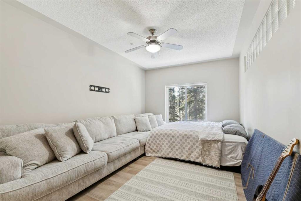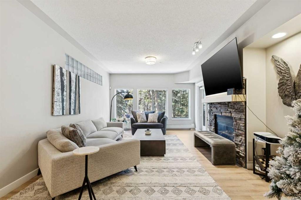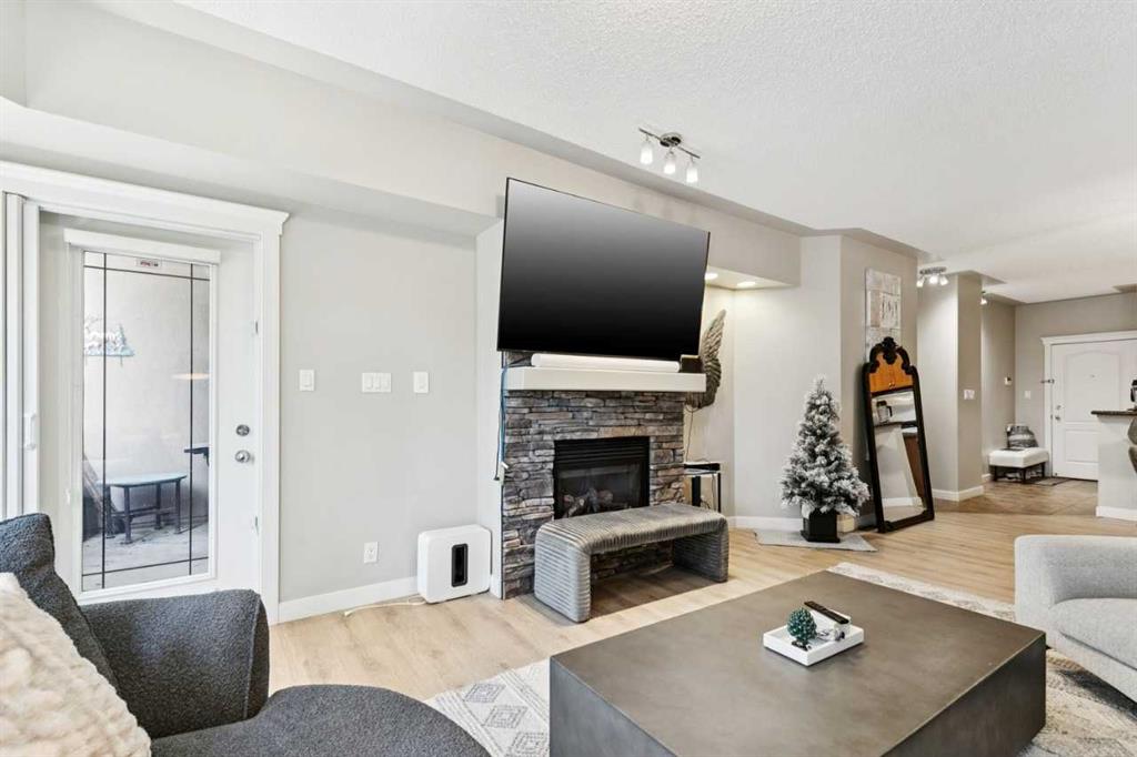 Welcome to this bright and spacious 2-bedroom + den, 2-bath condo in sought-after Discovery Ridge. This well-designed single-level unit offers an open-concept layout with 9-foot ceilings, large windows, and beautiful views of the surrounding greenery. The inviting living room features a stone-surround gas fireplace, while the kitchen offers stainless steel appliances, generous cupboard and counter space, and a raised breakfast bar perfect for casual dining. The large primary bedroom includes a walk-in closet and a well-appointed ensuite with a soaker tub and separate shower. A second bedroom and den provide flexible space for family, guests, or a home office. Additional features include in-suite laundry, balcony, titled heated underground parking, assigned storage, bike storage, and visitor parking. Located in the desirable community of Discovery Ridge, this home offers easy access to parks, pathways, shopping, and the natural beauty of Griffith Woods.