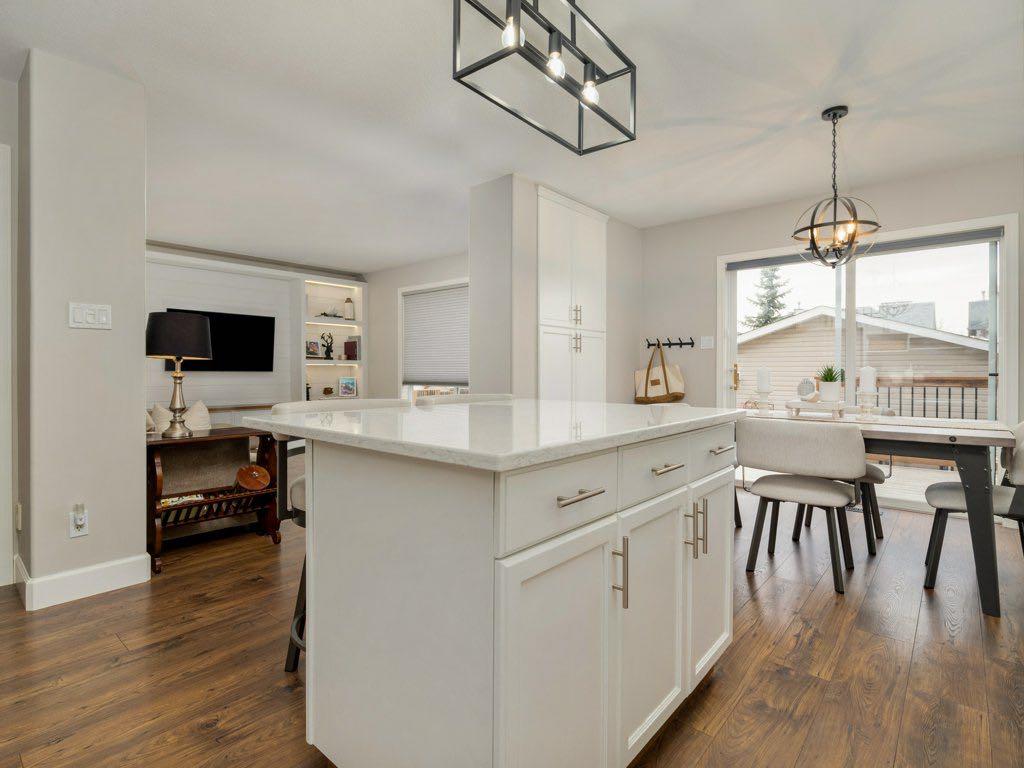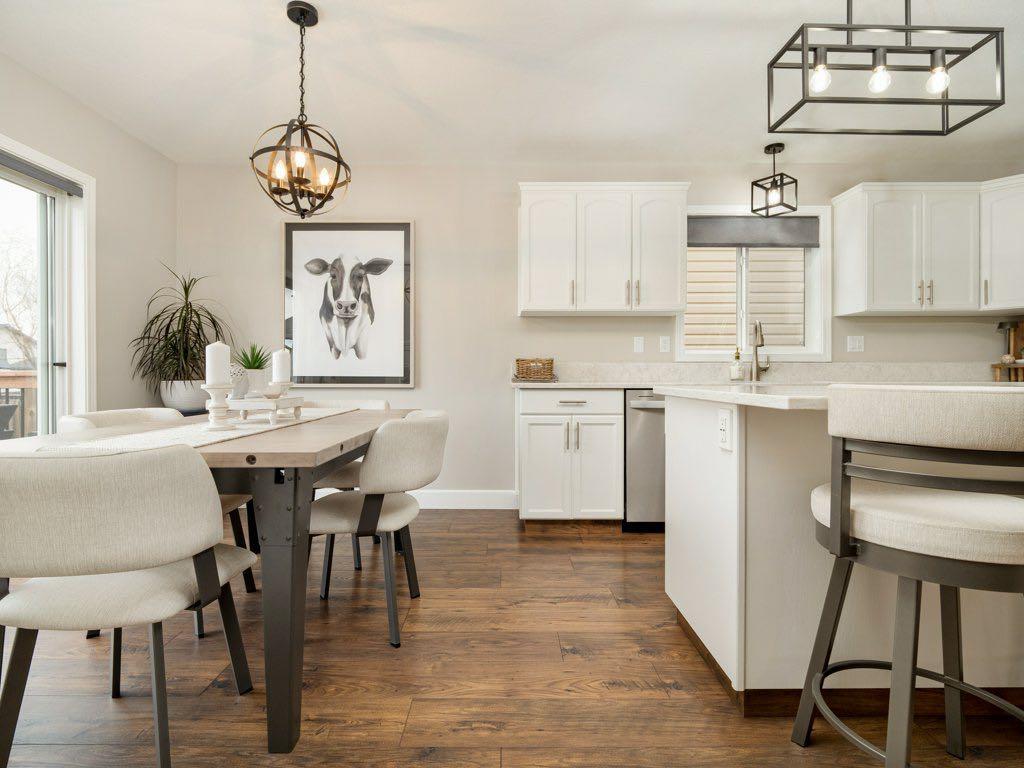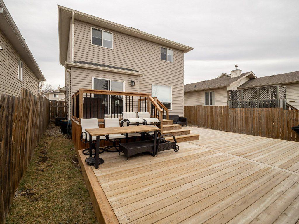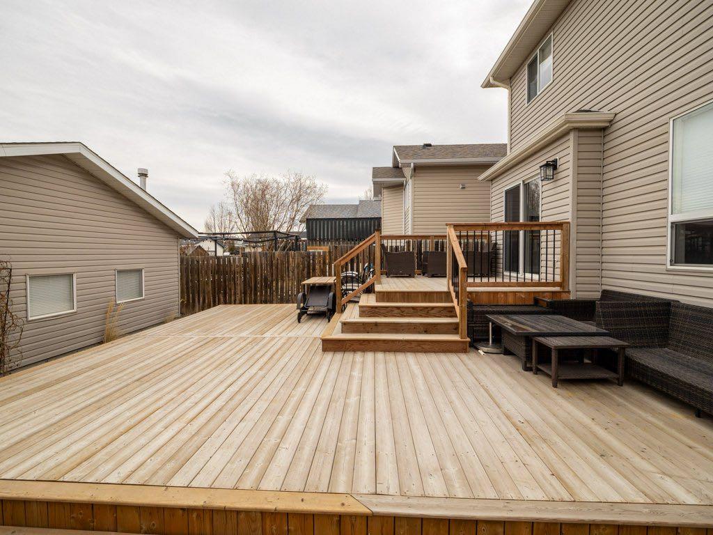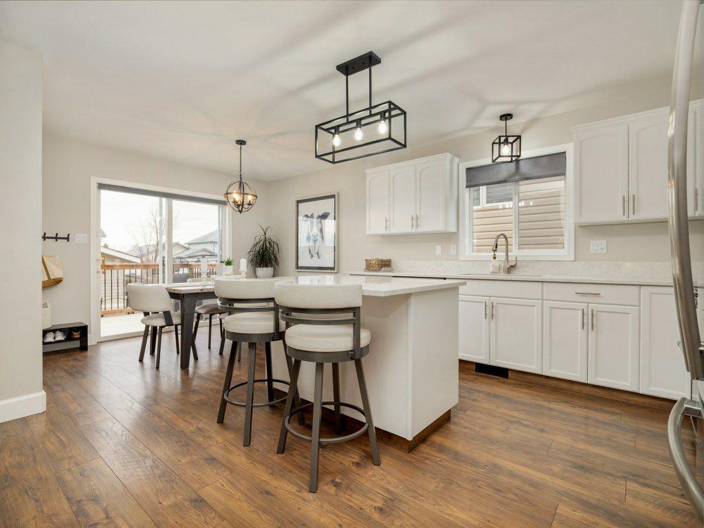 Welcome to this beautifully updated two-storey home in the desirable community of Heritage Heights—offering a “like-new” feel throughout! Freshly painted from top to bottom, this home features new flooring on all levels, new carpet on the stairs, and stylish quartz countertops in both the kitchen and bathrooms, complete with undercount sinks and modern finishes. The contemporary kitchen is a true highlight, showcasing professionally painted cabinetry, a functional island with seating, and an inviting atmosphere perfect for both everyday living and entertaining. The adjoining dining area and bright, comfortable living room—featuring a built-in entertainment centre—add warmth and charm to the main level. Upstairs offers three spacious bedrooms, while the fully finished lower level provides a large rec room, fourth bedroom, bathroom, and additional storage—ideal for growing families or guests. A main-floor office adds flexibility for those working from home. Step outside through large patio doors with a power blind to a beautifully designed two-tier deck—perfect for relaxing or hosting. The home also features new light fixtures, updated blinds, custom railings, and a welcoming front verandah. The heated double garage with lane access adds convenience, while the quiet street location enhances the sense of comfort and privacy. Enjoy being just steps from walking and bicycle pathways, and close to schools and shopping. A truly exceptional home—perfect for families or professionals seeking quality, comfort, and lifestyle in one of Lethbridge’s most desirable neighbourhoods.