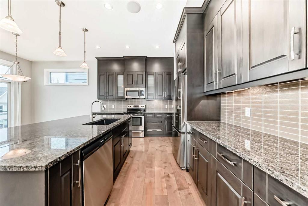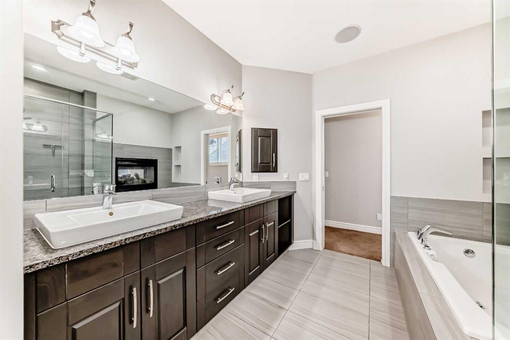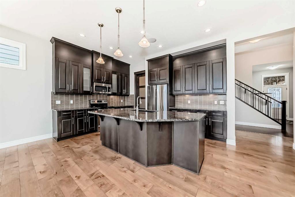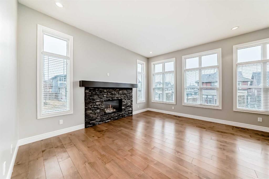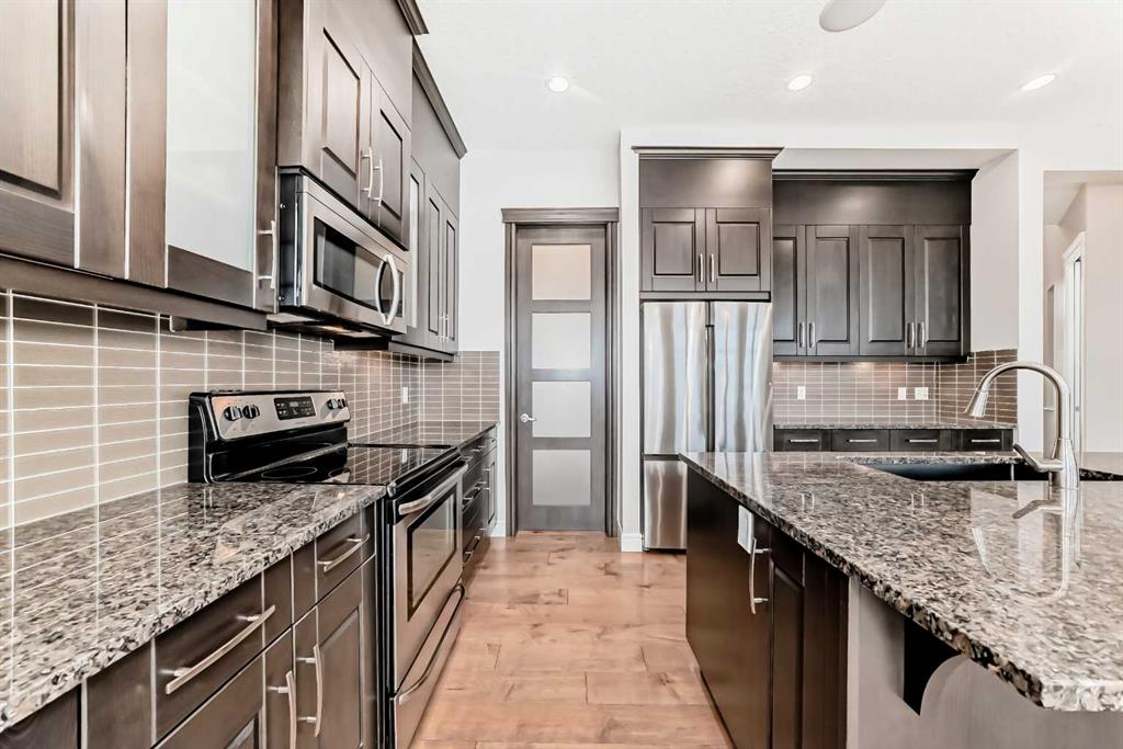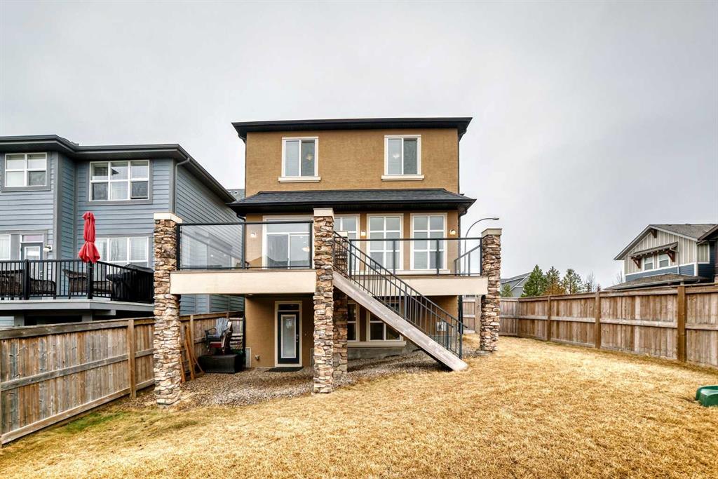 Welcome to this stunning luxury residence on a large corner lot just steps from the Mahogany Beach Club in Calgary’s premier lake community. This executive home makes a grand first impression with 10-foot ceilings, 8-foot doors, and a refined mix of ceramic tile and hardwood flooring. The main level offers a dedicated home office and an open-concept living space where floor-to-ceiling cabinetry and granite countertops meet a cozy gas fireplace. The second floor features 9-foot ceilings and a massive bonus room. The primary suite boasts a luxurious five-piece ensuite, while two additional generous bedrooms share a convenient four-piece bathroom. Outdoor living is elevated by a maintenance-free deck with glass railings, perfect for relaxing in style. The fully finished walkout basement provides exceptional versatility with a second family room, a fourth bedroom, and another four-piece bathroom, plus a wet bar.
