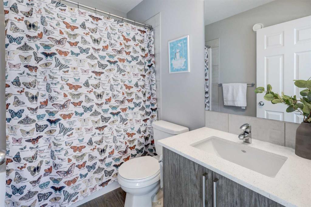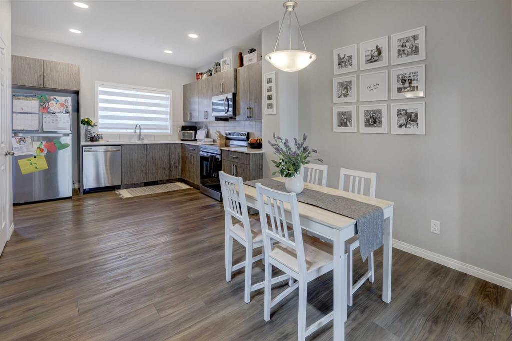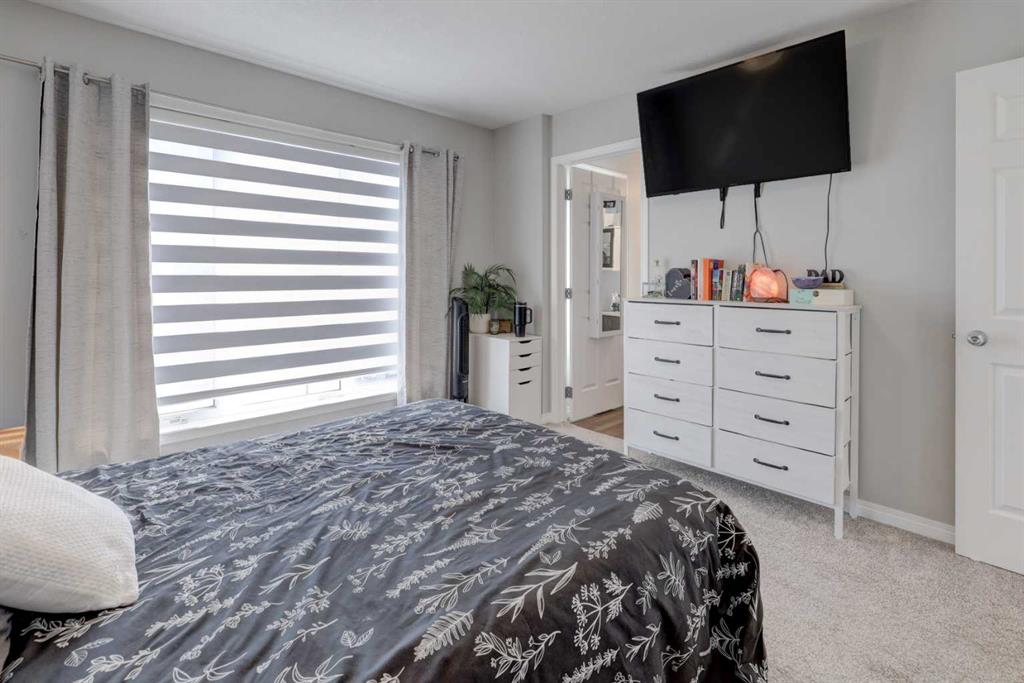 Welcome home to this beautiful and peaceful 3-bedroom family half-duplex, ideally located facing a large park and just steps away from incredible community amenities. Enjoy easy access to a splash park, skate park, and ball diamonds—perfect for active families and outdoor living. This move-in ready home offers a bright open-concept main floor, designed with both comfort and functionality in mind. The stylish kitchen features elegant quartz countertops, a spacious dining area, and sleek stainless steel appliances, including an electric stove, built-in microwave, and dishwasher—perfect for everyday living and entertaining. Upstairs, the generous primary bedroom includes a private ensuite and a full walk-in closet. You’ll also love the convenience of upper-level laundry, making busy family life that much easier. Two additional bedrooms are thoughtfully set apart from the primary suite, offering added privacy for family members or guests. The basement comes with a separate back entrance and is ready for your future plans, complete with plumbing and laundry rough-ins. To top it all off, this home includes a double detached garage, providing ample parking and storage space. This is a fantastic opportunity to own a stylish, functional home in a vibrant, family-friendly location—don’t miss it!