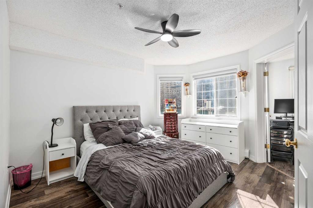 Welcome to elevated downtown living in the heart of Eau Claire!!. This stunning and spacious 2 bed, 2 bath + office condo offers nearly 1,200 sq ft of beautifully updated living space in one of Calgary’s most sought after locations. From the moment you step inside, you will be impressed by the bright, open concept layout featuring brand new vinyl plank flooring, fresh modern paint, and stylish new window coverings that bring a fresh, contemporary feel to the entire home. Thoughtfully designed with excellent bedroom separation, this layout is perfect for professionals, roommates, or anyone looking for both comfort and functionality. The dedicated office or den is a standout feature and is ideal for working from home, a creative space, or even a cozy reading nook. You will also enjoy upgraded touches throughout, including ceiling fans and new toilets, adding both comfort and peace of mind. The spacious primary retreat features a private ensuite, while the second bedroom is generously sized and perfectly positioned next to the second full bathroom, making it ideal for guests or family. Now let’s talk about storage, because this one truly delivers. Enjoy an abundance of in unit storage, which is a rare find in condo living, plus the added bonus of a separate underground storage locker, giving you all the space you need without compromise. Tucked away in an incredibly quiet setting, this home offers a rare sense of calm while still being just steps from everything. Enjoy easy access to the Bow River pathways, Prince’s Island Park, top restaurants, shopping, and transit, all right outside your door. Stylish, spacious, quiet, and move in ready, this is the downtown condo you have been waiting for. Book your showing today before it's too late!