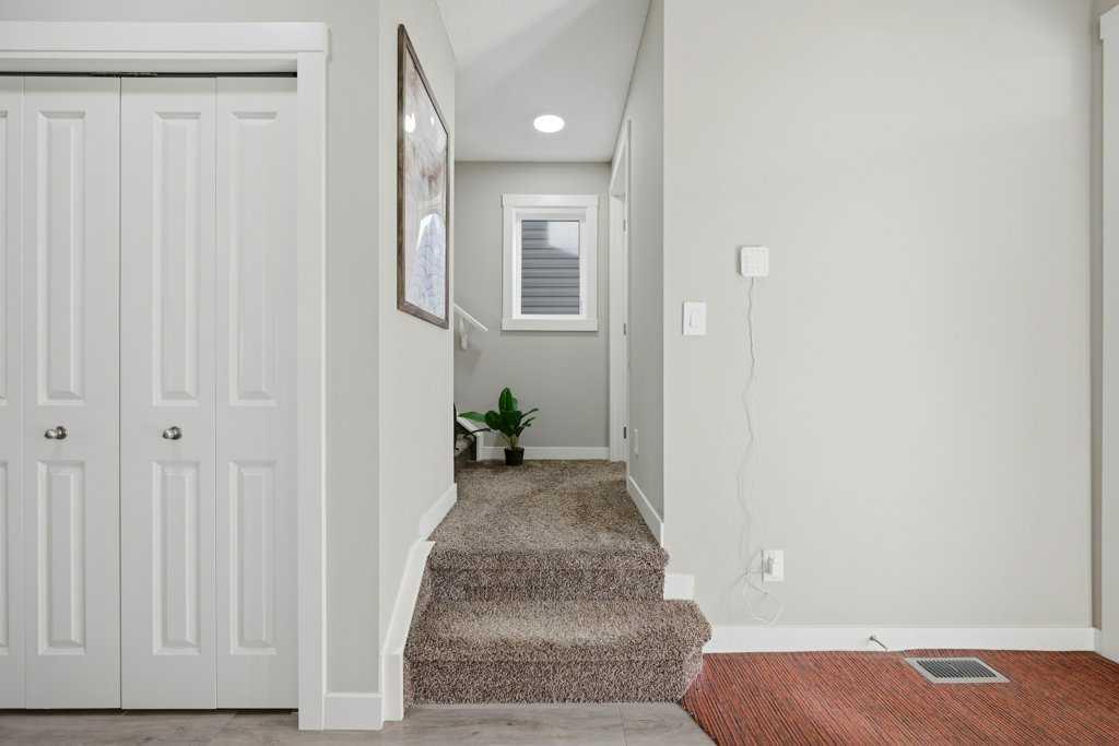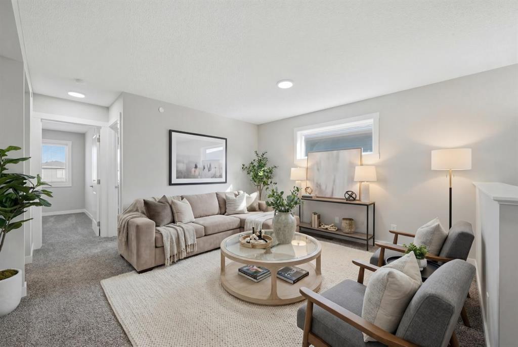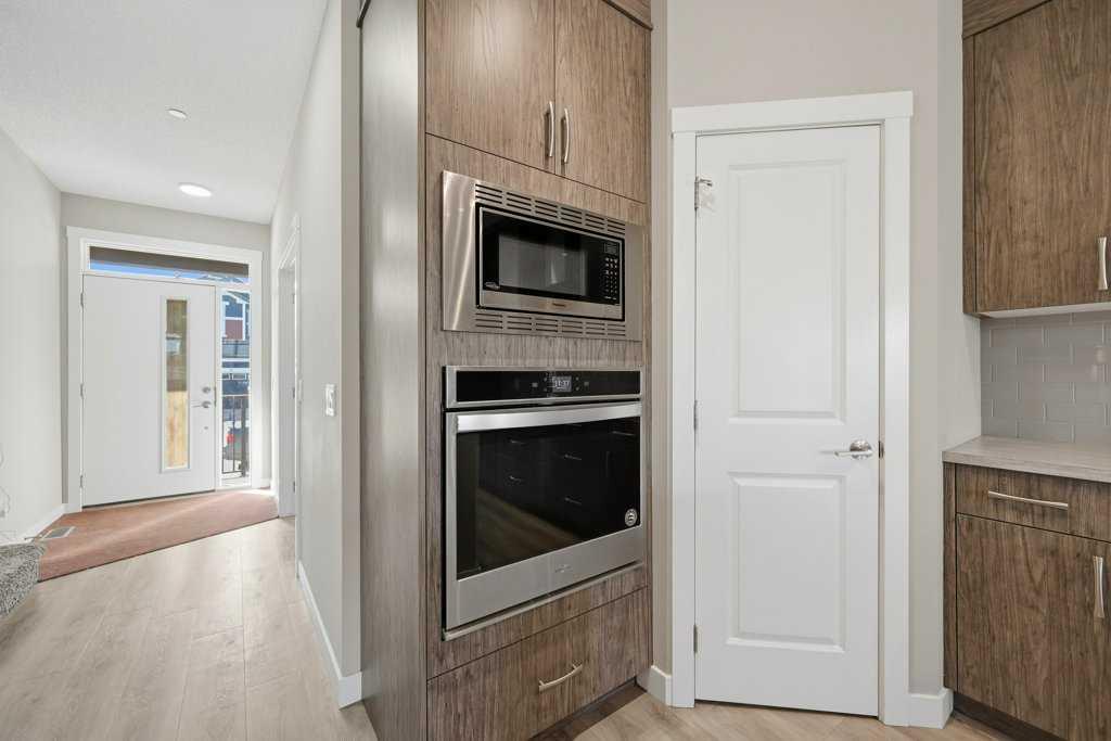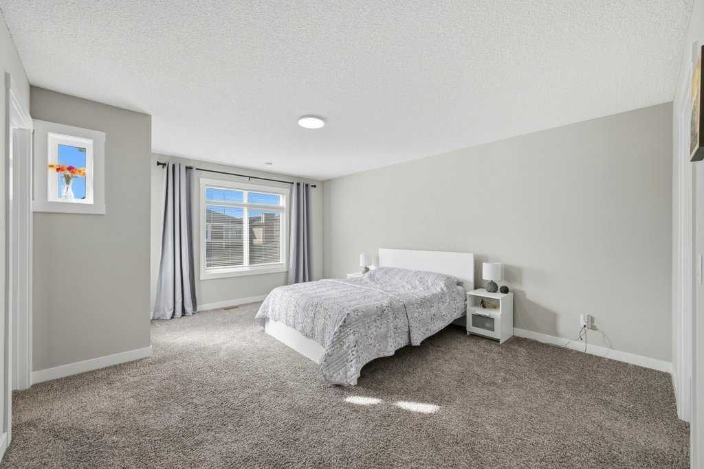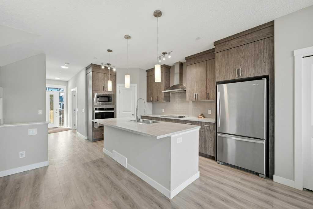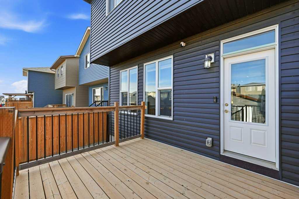 Welcome to this stunning detached home in the vibrant community of Livingston, offering no neighbours behind for added privacy! Situated on a deep 130 ft lot, this property provides an extended backyard, perfect for outdoor enjoyment. This beautifully designed home features a massive front porch and approximately 1,900 sq. ft. of living space above grade, with 9-ft ceilings and luxury vinyl plank flooring throughout the main floor. The spacious foyer includes a large closet and leads to a bright front office with south exposure, filling the space with natural light. The chef-inspired kitchen is truly the heart of the home, showcasing ceiling-height cabinetry in a modern cream tone, an elegant full-height tile backsplash, high-quality countertops, and stainless steel appliances, including an electric cooktop, built-in oven and microwave, and range hood fan. A massive corner pantry adds extra convenience. The adjacent dining area easily accommodates an 8-seat table and flows seamlessly into the cozy living room, highlighted by large windows that flood the space with natural light. At the rear, you’ll find a spacious mudroom leading to a large deck, a low-maintenance backyard, and a double detached garage. Upstairs features a functional and family-friendly layout with plush carpeting throughout, a bonus/family room perfect for entertaining, and convenient upper-floor laundry. The primary bedroom offers space for a king-size bed, a luxurious 5-piece ensuite with double vanity, a walk-in closet, and the rare bonus of private balcony access. Two additional generously sized bedrooms and a 4-piece bathroom complete the upper level. The home is also equipped with a security system throughout. A standout feature is the legal basement suite with a separate side entrance, complete with a full kitchen, spacious bedroom, large windows (larger than standard), and a 4-piece bathroom an excellent opportunity for rental income (previously rented for $1,800/month) or multi-generational living. Located just minutes from Stoney Trail, close to shopping and amenities, and only a 2-minute walk to the bus stop, this home offers the perfect combination of comfort, convenience, and investment potential. Don’t miss your chance to own this exceptional property! * Roof, Gutters and Siding 2024 - 3 Pane Panel Windows *