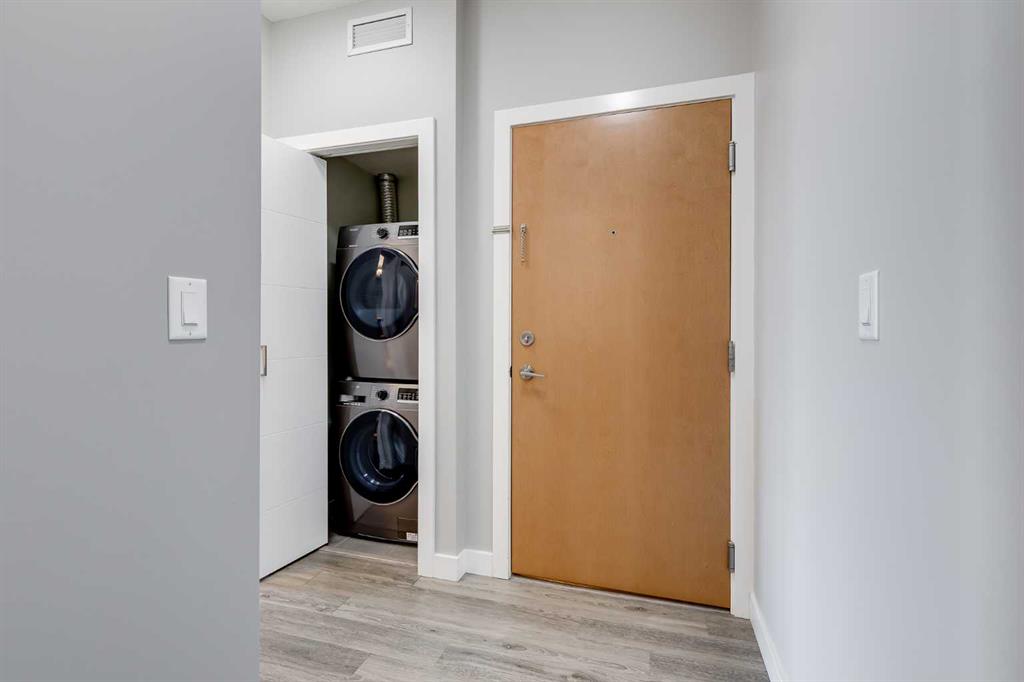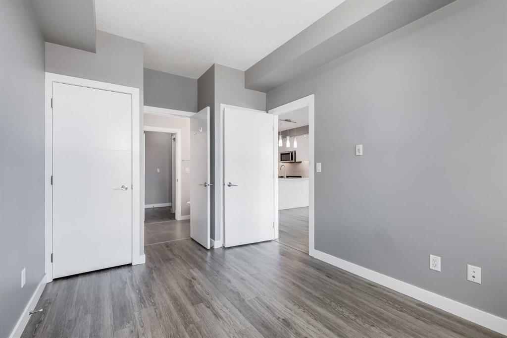Welcome to this beautifully appointed 3rd-floor CORNER UNIT in the sought-after community of Currie Barracks - where larger corner units like this rarely come available! Enjoy the perfect blend of style, comfort, & convenience. Soaked in natural light, this bright and airy home features 950 sq ft with a sunny SOUTH-FACING balcony, 2 SPACIOUS BEDROOMS, 2 FULL BATHROOMS, AIR CONDITIONING, 2 TITLED UNDERGROUND PARKING STALLS, and 2 STORAGE UNITS - it is everything you want and more! The open-concept layout is thoughtfully designed for everyday living & effortless entertaining. You will immediately notice the elevated finishes throughout, including luxury vinyl flooring, 9’ ceilings, neutral paint, and a stunning kitchen complete with quartz countertops, soft-close cabinetry, LED under-cabinet lighting, a stylish backsplash, and stainless steel appliances including a gas stove. The inviting primary retreat offers significant space with additional windows, a large walk-in closet and a luxurious 5-piece ensuite with dual sinks, a separate shower, & a relaxing soaker tub. The second bedroom is generously sized, offers direct access to the well appointed 4-piece bathroom, and is ideally positioned for privacy. Your in-suite laundry and entryway are neatly tucked away, adding to the home’s thoughtful design and comfort. Step outside to your sunny balcony, perfectly positioned to take in the tranquil courtyard, partial mountain views, and complete with a gas line for easy outdoor living. Your two titled parking stalls include two full storage areas adding to your convenience. Further highlights of this incredible building include a car wash bay, bike storage, and ample visitor parking. The moment you enter, you can truly feel how special this building is. Ideally located just steps to Mount Royal University and minutes to parks, pathways, Marda Loop, Glenmore Park & Reservoir, shopping, restaurants, downtown, the mountains and more! This is an exceptional opportunity to own a premiere condo in one of Calgary’s most desirable communities. Call your favourite Realtor and book your private showing today! This home is pristine and move-in ready!