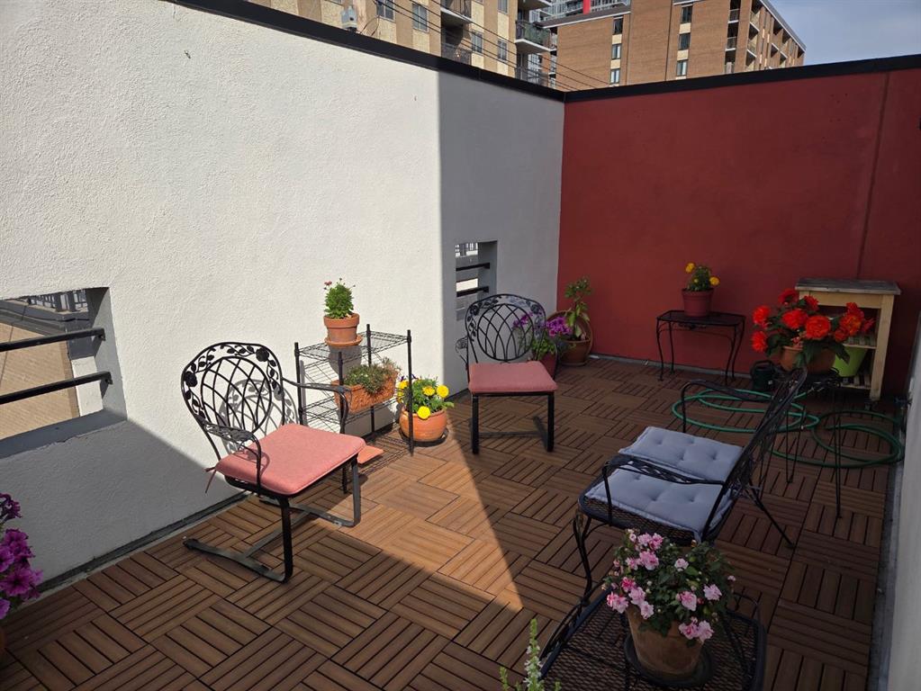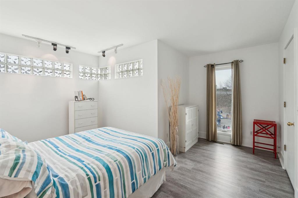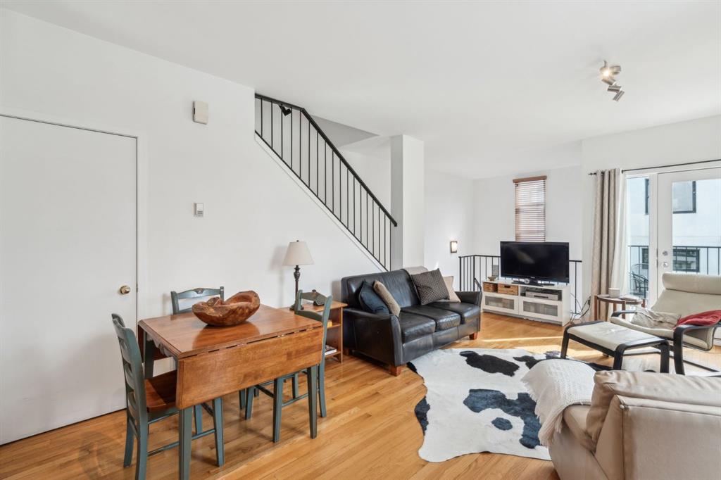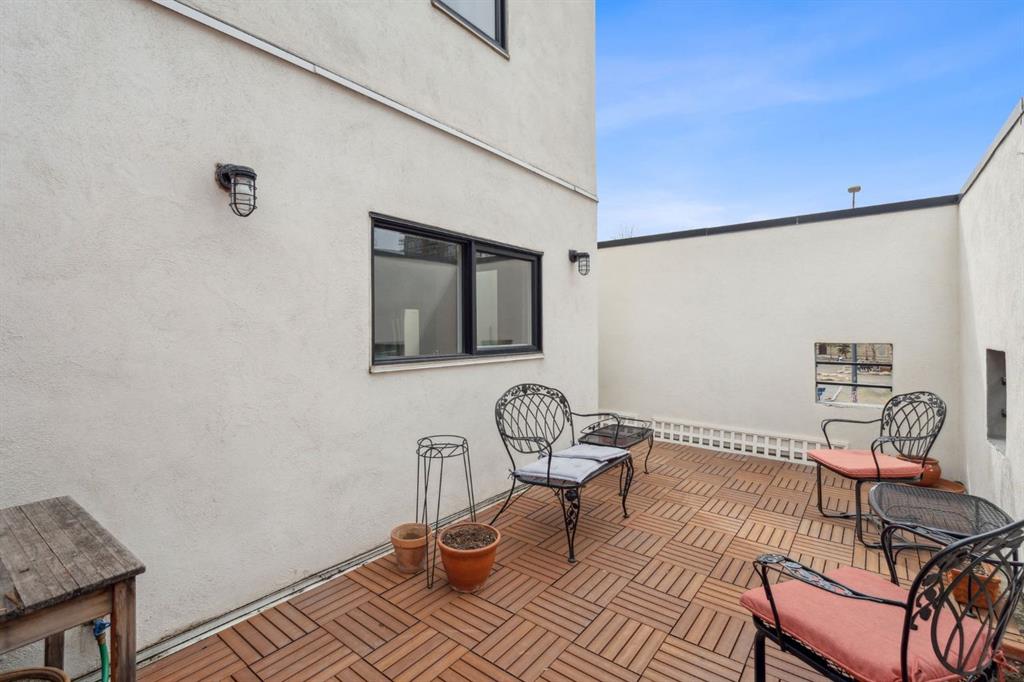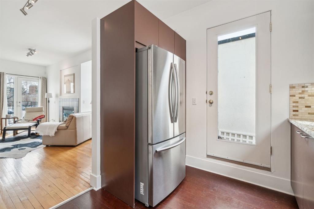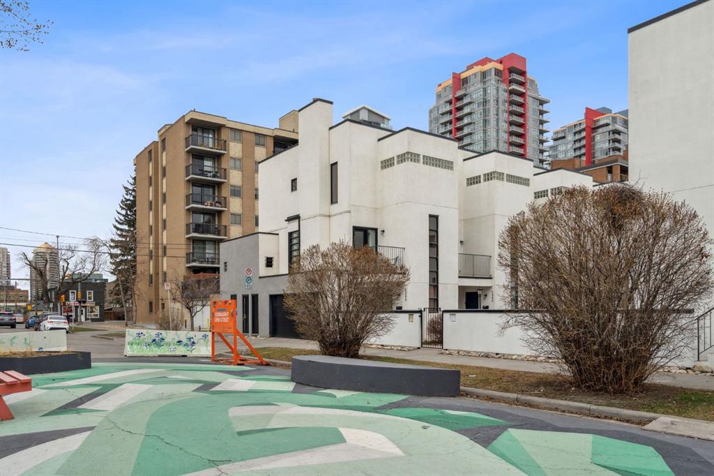 Award-winning design by Sturgess Architecture, this contemporary two-story end-unit townhouse sits on a quiet street in the highly sought Beltline area. The white stucco facade with a flat roof fronts a walled, landscaped open courtyard and adjoins a dedicated street park, enhancing curb appeal and urban serenity. Inside, you’ll find a bright, open floor plan with 9-foot ceilings on the main level and expansive windows that flood the space with natural light. hardwood floors on the main and vinyl plank upstairs complement the modern finishes. The granite kitchen counters, cabinetry, and a tiled gas fireplace add both function and style. Enjoy outdoor living on the front sundeck or the large walled rear terrace, perfect for entertaining or relaxing in privacy. This home features a shared attached drive-under garage for convenient parking and direct access. Ideally located, you’ll be just moments from Beltline amenities, dining, parks, and transit, with everything you need at your doorstep. Highlights: 2-story end unit in a popular Beltline location Award-winning Sturgess Architecture design White stucco exterior, flat roof, front courtyard, and adjacent street park Open floor plan, hardwood floors, large windows, 9-ft ceilings (main) Granite kitchen counters, tiled gas fireplace Front sundeck and large rear walled terrace Shared attached drive-under garage Proximity to shops, dining, parks, and transit