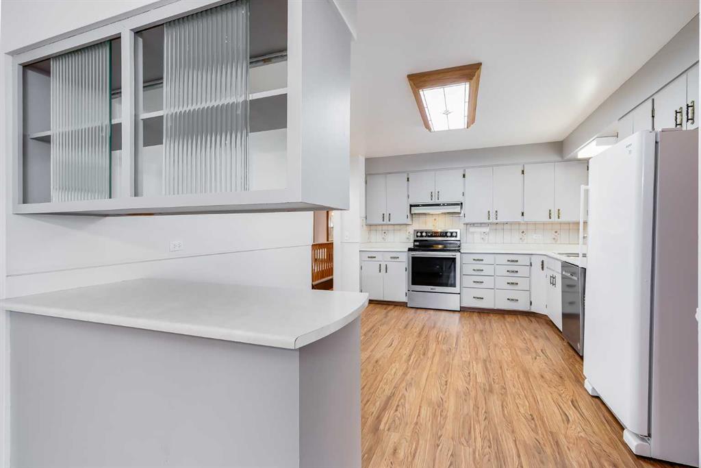 Park-front living and endless character come together in this well-maintained home offering over 2,000 sq ft above grade on a beautifully treed lot. Positioned directly across from green space with tennis courts, a playground and basketball courts, daily life here connects effortlessly to the outdoors. Original design elements introduce mid-century charm throughout, including beautiful curved architectural details and a distinctive front entry, while thoughtful updates support comfortable, move-in ready living. A spacious main level unfolds with upgraded vinyl flooring and an expansive living area where oversized picture windows frame park views and draw in natural light throughout the day. The seamless flow continues into the dining area where updated lighting enhances gatherings and direct access to the backyard encourages an easy indoor-outdoor lifestyle. A well-planned kitchen boasts abundant cabinet and drawer storage along with a functional peninsula featuring display shelving, while a window above the sink ensures clear sightlines to the yard, perfect for keeping an eye on kids or pets. Four very large bedrooms on the main level create a rare and highly functional layout for families, including a primary retreat with a walk-in closet and a private updated 2-piece ensuite, while a full 4-piece bathroom and updated lighting throughout complete the level. Additional living space continues in the basement where a fifth bedroom and two bathrooms, including an updated 4-piece with dual sinks and an oversized shower, add flexibility for guests or extended family, while the remaining areas grant excellent storage and future development potential. The outdoor living is equally inviting with a sunny southwest-facing backyard that encourages relaxation, gardening and play beneath mature trees, complemented by patio space for barbequing and unwinding. An oversized double detached garage with a new roof provides secure parking and additional storage for seasonal needs. This outstanding location places parks, recreation and open green space just steps from your door for a setting where both convenience and lifestyle are naturally elevated. Truly a phenomenal location for this beautiful character home that grows with you and adapts to every stage of life.
