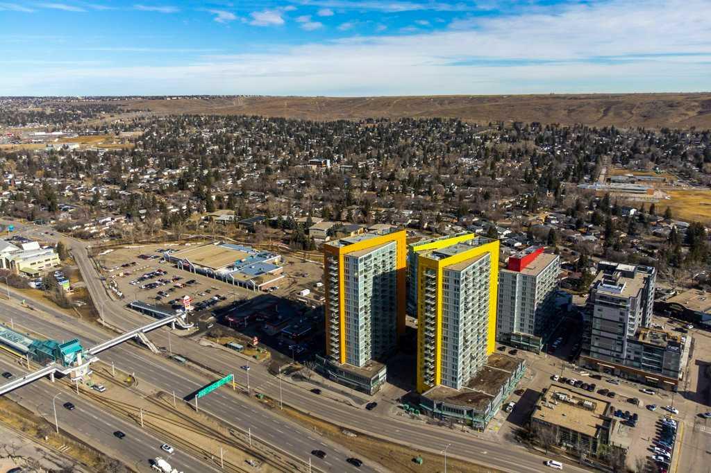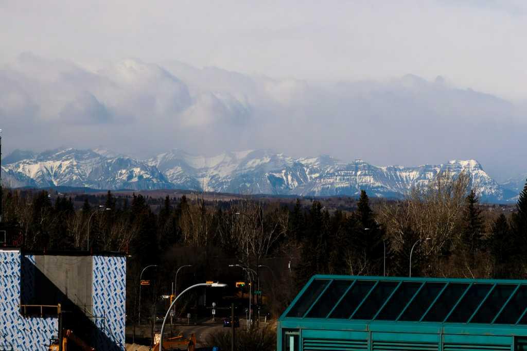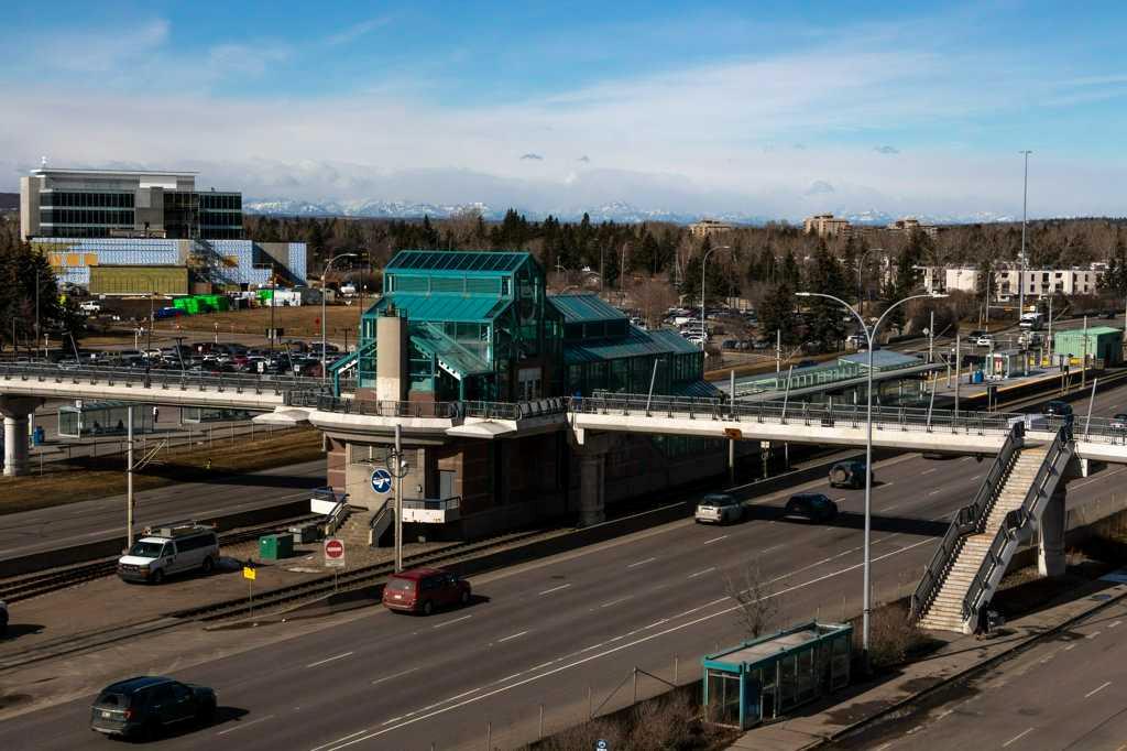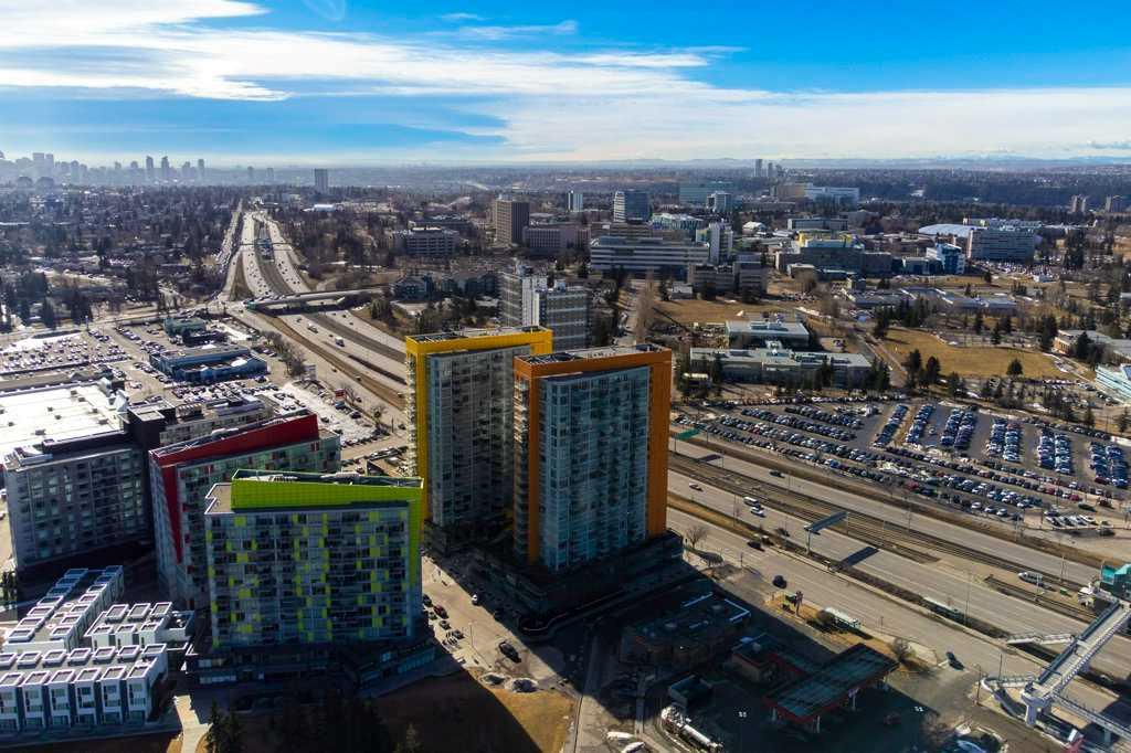 Don't miss a RARE OPPORTUNITY to own this bright and inviting CORNER UNIT - 2 bedroom, 1 bath with sunny south and west exposures! This well-designed home features laminate flooring, granite countertops, A/C and an open layout filled with natural light. Step onto your private deck to enjoy both city lights and Rocky Mountain views on Calgary's many blue-sky days. Both bedrooms feature large windows and the 4 piece bath between them has ample room for extra storage. You'll love the convenience of newer, stacked washer/dryer with smart features. This unit comes with 1 titled parking stall + storage locker located in a secure room keeping your gear safe from garage dust and debris. The building offers additional secure bike storage and ample underground bike racks. All utilities except electricity/internet are included in the affordable condo fee! Outdoor enthusiasts will love being so close to Nose Hill Park, one of Calgary’s best natural escapes. Whether you’re a student, healthcare professional, or downtown commuter, this is a premium location that supports a “lock-and-go” lifestyle. Move in, settle down, and start enjoying everything this vibrant 'University City' community has to offer!