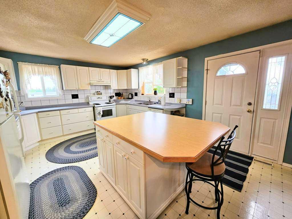 Welcome to this charming bungalow in the heart of town! Situated on a HUGE lot, offering plenty of space for outdoor activities and gardening. The fenced yard provides a safe and private oasis for you and your loved ones. As you enter, you'll be greeted by the warm and inviting atmosphere of this well-maintained home. The main floor features a spacious living area, perfect for hosting gatherings or simply relaxing with the family. The large windows fill the space with natural light, creating a bright and cheerful ambiance. The kitchen is a chef's delight, with ample counter space and a convenient layout that makes meal preparation a breeze. Adjacent to the kitchen, you'll find a lovely dining area where you can enjoy meals with family and friends. One of the highlights of this home is the attached double garage, complete with a lean-to for additional storage. The garage is equipped with hot and cold water bibs, making it easy to tackle any project. For pet owners, the garage also provides access to a dog run, ensuring your furry friends have their own space to roam and play. If you love spending time outdoors, you'll appreciate the beautifully landscaped yard, complete with a garden for growing your favorite plants and vegetables. The motion sensor lights in the front and back yard provide added security and convenience. With four bedrooms, including a huge primary suite with an en-suite bathroom and two walk-in closets, there's plenty of room for the whole family! The updated en-suite bathroom features a spacious walk-in shower. In addition to the primary bedroom, there are three more well-appointed bedrooms, providing flexibility for guests, an office, or a hobby room. The home also features three bathrooms, including a convenient 2-piece bathroom with laundry facilities. Located in close proximity to an elementary school, this home offers the convenience of easy access to education for your children. The neighbourhood is known for its friendly atmosphere and community spirit, making it a great place to call home. Don't miss the opportunity to own this wonderful property! Love where you live.