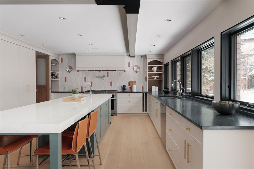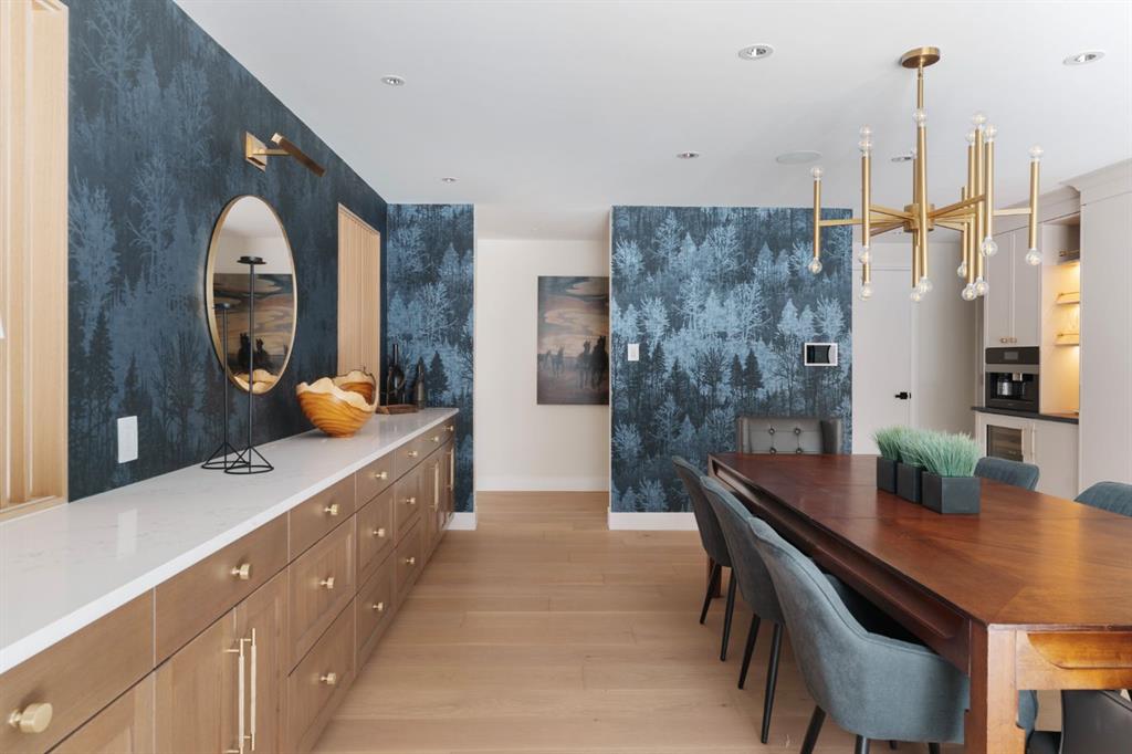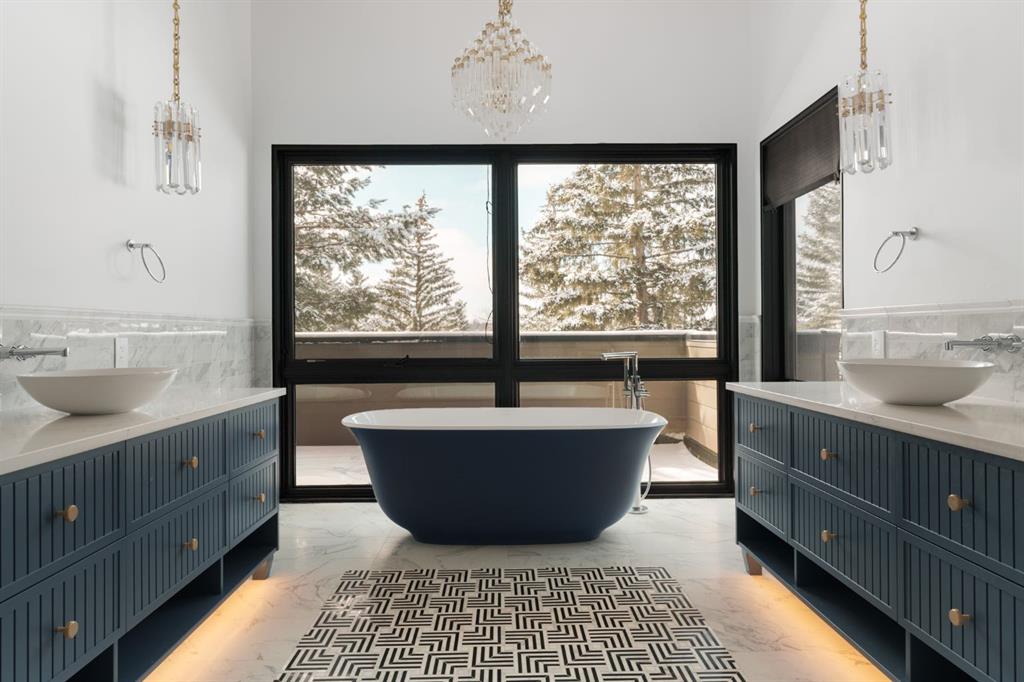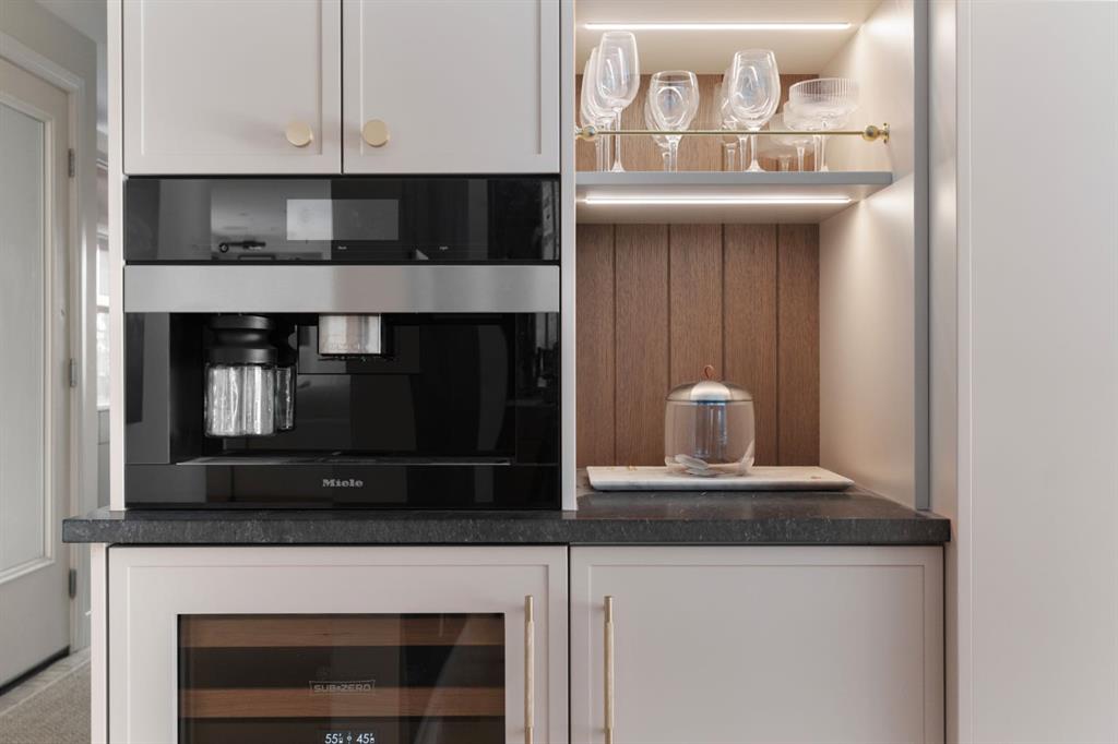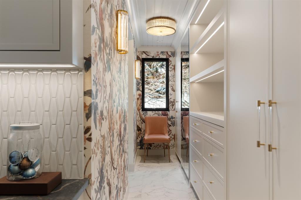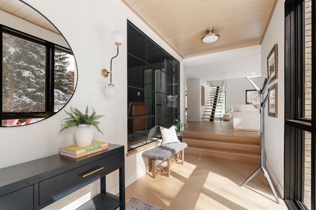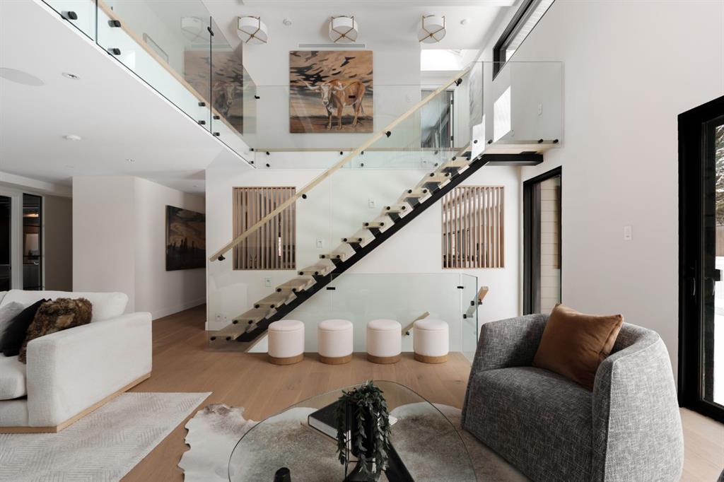 A rare offering in the heart of Pump Hill, this completely reimagined residence blends timeless design with modern luxury on an expansive 0.27-acre lot, tucked away on a private cul-de-sac along a quiet, tree-lined street. Taken down to the studs and meticulously rebuilt, this home offers over 5,000 sq.ft. of refined living space, showcasing a sophisticated West Coast aesthetic with an emphasis on light, flow, and exceptional craftsmanship. The main level is both elegant and highly functional, featuring wide-plank hardwood flooring, curated designer lighting, custom millwork, and thoughtfully selected wall treatments throughout. A stunning living room anchored by a gas fireplace flows seamlessly into the chef-inspired kitchen, complete with top-of-the-line appliances, including a built-in Miele coffee system, bespoke cabinetry, and an oversized island designed for gathering. The adjoining dining area overlooks the expansive backyard, creating the perfect backdrop for both everyday living and elevated entertaining. A standout feature of the main floor is the beautifully designed private office, enveloped in rich, moody tones and custom detailing, an inspiring space that evokes focus, creativity, and quiet sophistication. A well-designed mudroom with a dedicated dog wash station connects effortlessly to the attached heated garage, an ideal blend of luxury and practicality. Upstairs, a dramatic open-to-below family room with a second fireplace offers a warm and inviting retreat. Two generously sized bedrooms each feature their own walk-in closets and beautifully appointed ensuites. The primary suite is a true sanctuary, complete with a private balcony and a spa-inspired ensuite featuring premium finishes and a heated towel warmer. The fully developed lower level is designed for modern living, featuring a professional-grade home gym and a custom-built, sound-insulated room perfectly suited professional-grade Zoom and virtual meetings, offering privacy, clarity, and an elevated at-home experience. A sleek wet bar completes this level, making it ideal for both entertaining and everyday enjoyment. The outdoor space is equally impressive, with landscaping to be completed by the current owners, presenting a rare opportunity to enjoy a fully finished, turnkey property in one of Calgary’s most prestigious communities. An exceptional home where design, comfort, and location converge. (Exterior front image has been virtually staged to reflect one of Calgary’s many seasons)