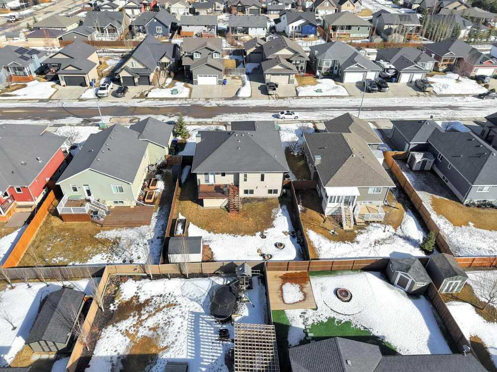 Welcome to this immaculately kept bi-level home offering over 2,600 sq. ft. of finished living space, featuring 5 bedrooms plus a flex/bonus room that could be used as an office, toy room, den or potential 6th bedroom. Ideally situated on a quiet cul de sac in the established community of The Vistas in Olds, this property is just steps from numerous walking trails, parks and the hospital. The bright, open concept main level showcases hardwood flooring throughout the principal living areas and a stunning kitchen complete with stainless steel appliances, granite countertops, a large island and a convenient corner pantry. The dining area provides direct access to a west facing deck with BBQ gas line, overlooking a fully landscaped and fully fenced yard that includes a fire pit, under-deck storage, and an 8’ x 12’ shed. The inviting living room features a natural gas fireplace with slate accents, creating a warm and welcoming focal point. The primary bedroom offers a walk in closet and private 3 pce ensuite, while two additional bedrooms and a full bathroom complete the main level. Brand new carpet has just been installed throughout the home, enhancing its fresh, turn key appeal. The fully developed lower level offers excellent additional living space with a spacious family room, flex room, two more bedrooms, a full bathroom, in floor heating, on demand hot water, and a dedicated separate laundry room. Further highlights include an extra wide driveway, insulated garage, furnace replaced in 2023, updated feature wall, fresh interior paint, and enhanced under deck storage. This well presented property offers an excellent blend of space, thoughtful updates, and a convenient location close to everyday amenities. Sellers are also providing a $9,000 decorating bonus to the buyer upon successful completion. Book your private showing today and discover the value this home has to offer.