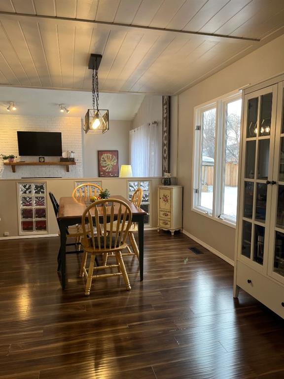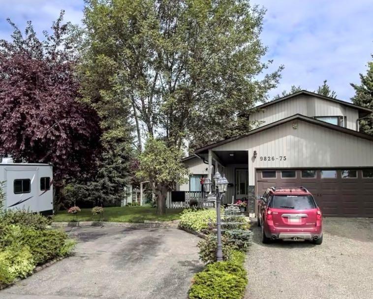 Beautiful 75th Avenue is offering this storey and a half 1632 sq ft home with lots of character and an amazing very large lot! There is the driveway in front of the garage and another circle driveway. Lots of room for an RV or cars for the children to all park off the street. The massive yard is like having a small acreage in town. You could have a large garden & greenhouse with lots of yard for children to have play center and more yard space to play. Inside this beautiful home the main living space is open concept, with sunken living room for relaxing or entertaining. There is the large dining area & kitchen with stainless appliances, just off the kitchen is a inviting sitting room with a door to the back deck for BBQ season, or easy access to the back yard. The main floor also offers a laundry room, access to garage and 2 piece bathroom. The top floor offers primary bedroom with 3 piece ensuite, also main bathroom, 2 other bedrooms. Another amazing feature is the open area that over looks the entry and living area below. The basement is finished also, lots of storage, family room area that could be a large bedroom, there is a window(not egress window) & bathroom with a shower too. There are 2 updated furnaces, one for main floor and basement, the other for top floor and AC for top floor. Also the shingles are newer. Call to have a look!