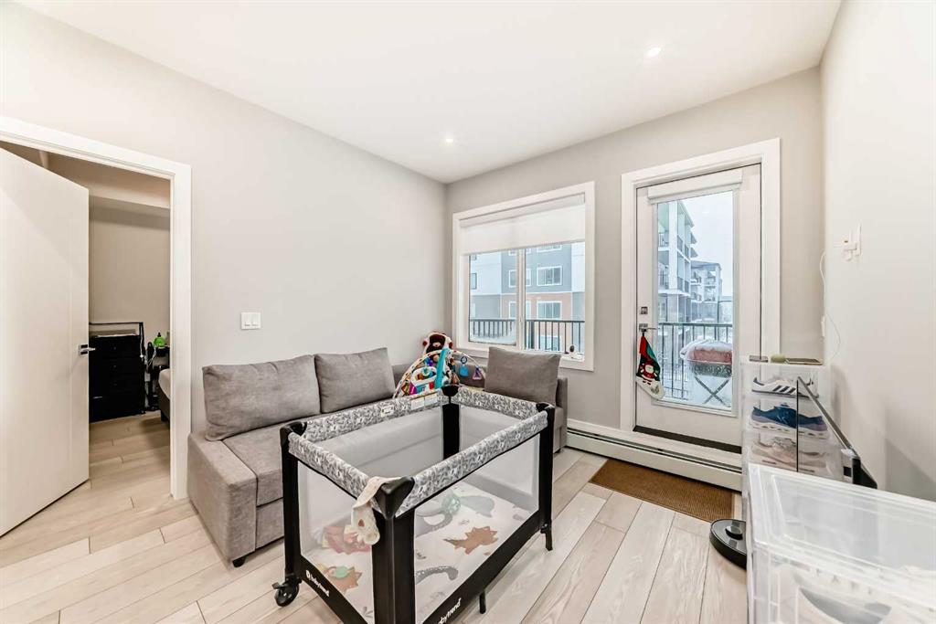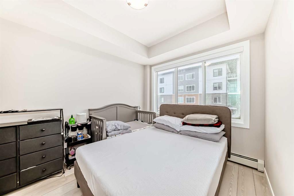 Welcome to Unit 2214 at 6 Merganser Drive West, Chestermere — a bright, beautifully finished 2-bedroom + Den, 2-bathroom condo offering exceptional value, modern comfort, and an unbeatable location. Step inside and instantly feel at home in this stunning open-concept layout designed for both style and functionality. The contemporary kitchen features tall cabinetry, sleek quartz countertops, stainless steel appliances, and a spacious island perfect for cooking, entertaining, or enjoying your morning coffee. A versatile den/office adds even more flexibility for work or extra storage. The living area is filled with natural light thanks to large windows and durable luxury vinyl plank flooring. Convenience is built in with an in-suite laundry equipped with a full-size washer and dryer. The primary bedroom is a true retreat, complete with a walk-through closet and a private ensuite 3-piece bathroom. A second generously sized bedroom and a stylish 4-piece main bathroom make this home ideal for families, roommates, or guests. This well-managed building offers fantastic amenities, including a fitness centre and bike storage, plus the added bonus of underground titled parking—a must-have for year-round comfort. Located just minutes from Chestermere Lake, scenic parks, walking paths, shopping and dining. This condo puts convenience, recreation, and everyday essentials just steps away. Whether you're a first-time home buyer, looking to downsize, or seeking a smart investment property, this affordable yet high-quality unit delivers everything you need and more.
