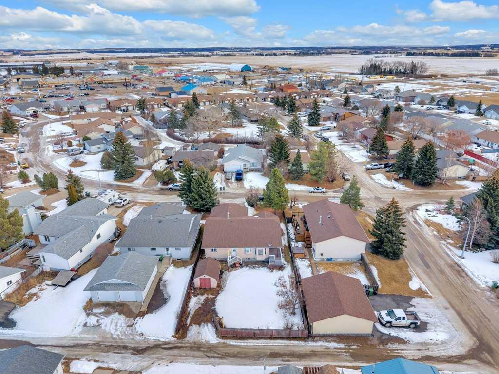 Located on a quiet street in the friendly Central Alberta community of Rimbey, this spacious 4-bedroom, 2½-bathroom home offers comfort, practicality, and a welcoming sense of community. Within easy walking distance of shopping, the post office, parks, playgrounds, ball diamonds, and dog parks, it’s perfectly situated for an active family lifestyle. The bright, open living area invites you in through the front door, creating an immediate sense of warmth and space. A convenient separate entrance from the attached garage makes daily life easier—no more hauling groceries through the cold. The functional kitchen offers a cozy breakfast area, while the adjoining dining room provides plenty of room for family meals and special gatherings. The main floor features a comfortable primary bedroom with a nicely sized ensuite, a second bedroom, a full 4-piece main bath, and a generous rear entry with laundry and access to the backyard. Downstairs, a large family room provides flexible space for movie nights or children’s play, complemented by a dedicated office area for work or study. Two additional bedrooms, another full 4-piece bathroom, and the utility room complete the lower level. Ample storage can be found throughout the home, along with a large outdoor shed for even more space. With its thoughtful layout, convenient location, and friendly neighborhood atmosphere, this property is a wonderful place to call home.