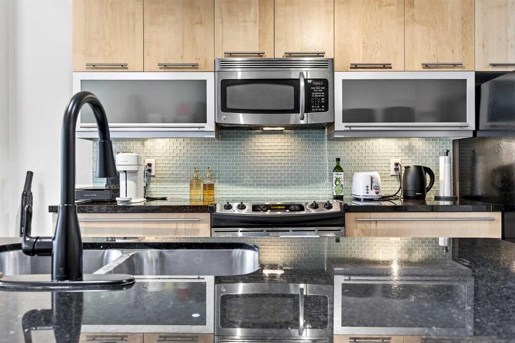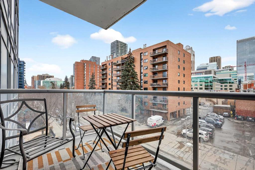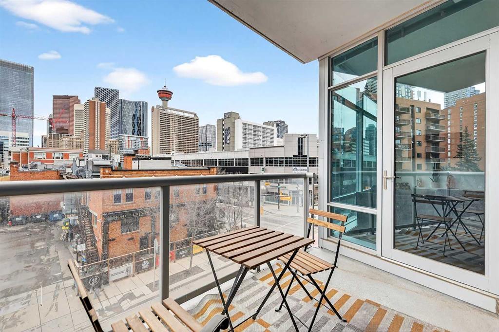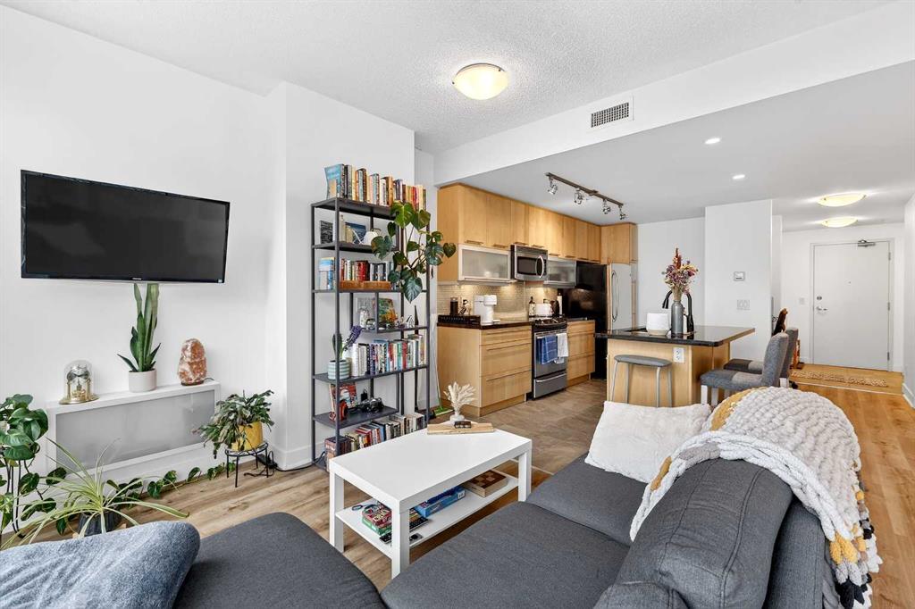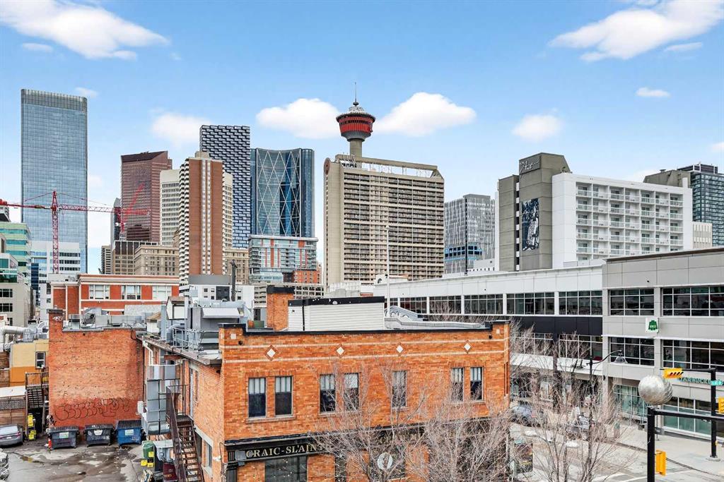 Experience elevated inner-city living in this beautifully appointed 1 bedroom, 1 bathroom residence in Union Square, ideally located in the heart of Calgary’s vibrant entertainment district. Just minutes from the river pathways and surrounded by some of Calgary’s finest restaurants, cafés, and nightlife, this is urban living at its best. Floor-to-ceiling windows flood the home with natural light and showcase stunning panoramic views of the downtown skyline. Thoughtfully finished with warm-toned millwork and durable luxury vinyl plank flooring, the space feels both modern and inviting. The open-concept kitchen is designed for entertaining, featuring a large breakfast bar, granite countertops, glass tile backsplash, and stainless steel appliances. The spacious bedroom includes a generous walk-in closet and connects to a bright 5-piece bathroom, offering both functionality and comfort. A space for your home office is perfectly appointed and completes this unit. A heated underground parking, additional storage, and unbeatable access to trendy shops and dining complete this exceptional offering.